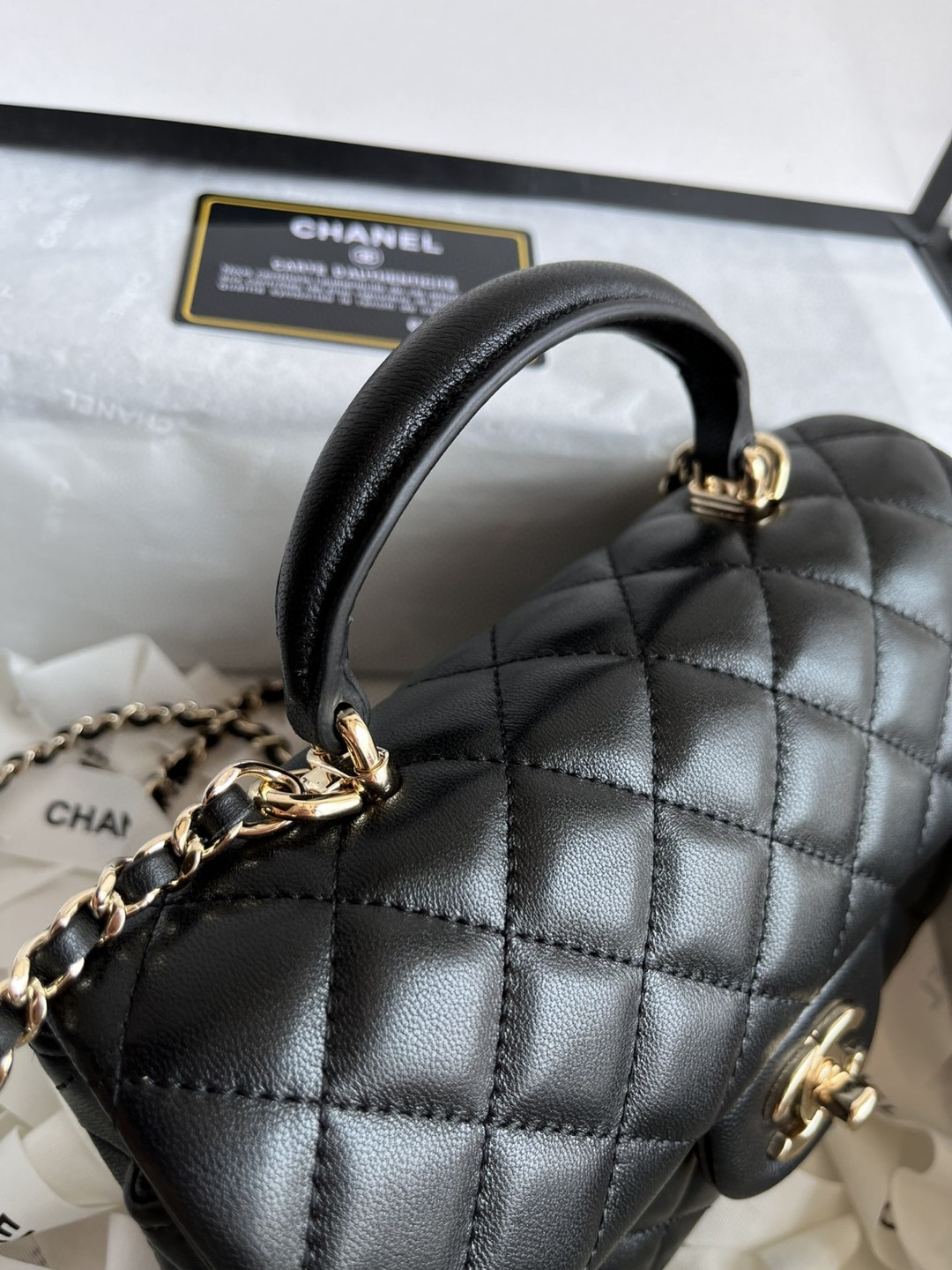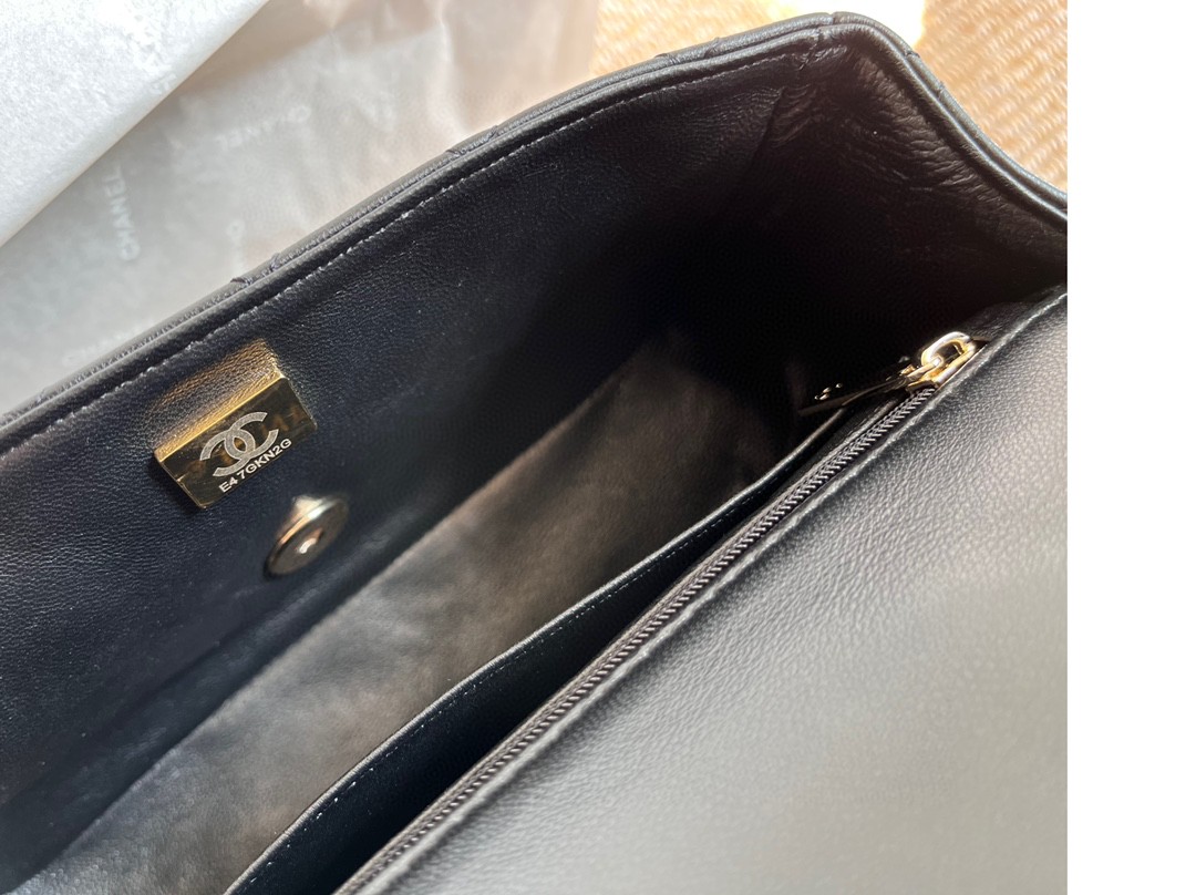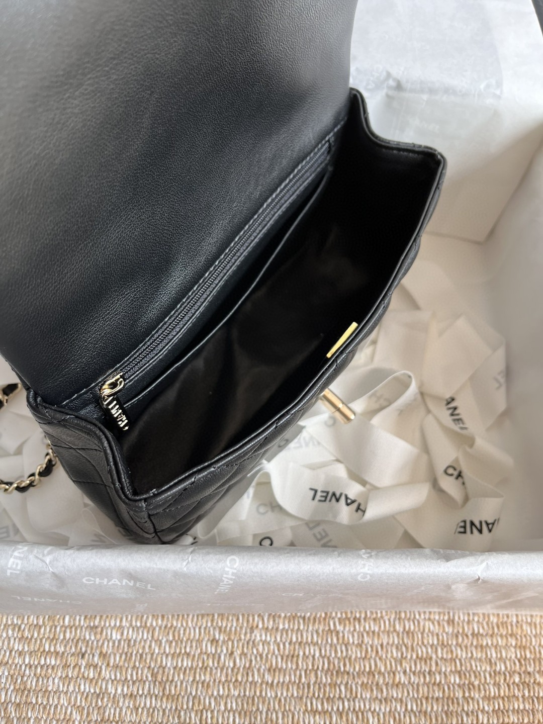 小羊皮的光泽感和质感细腻,淡金扣考究,日常出门大小刚好,有链条+手柄 :斜挎/手拎 ,高级百搭