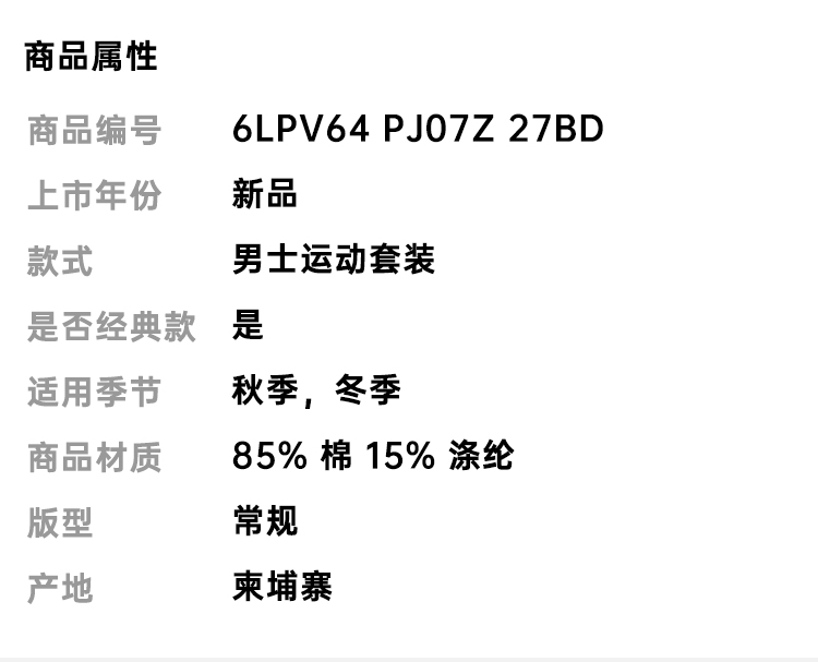 EMPORIO ARMANI EA7 阿玛尼 男士棉质字母徽标印花运动套装 混色 6LPV64 PJ07Z 27BD