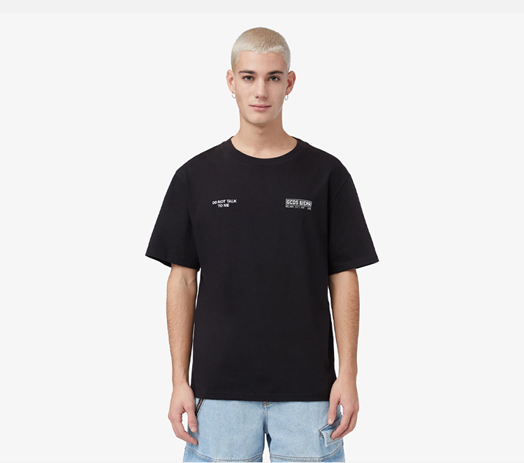 GCDS 男士徽标印花棉质圆领短袖T恤 黑色 A1OM2308JC399