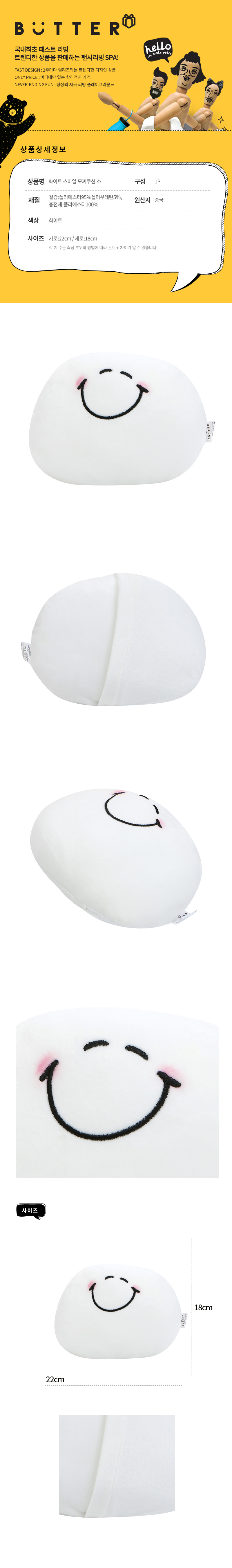 BUTTER White Smile Mochi Cushion Small黄油22x18cm白色小抱枕JPY带授权招加盟代理