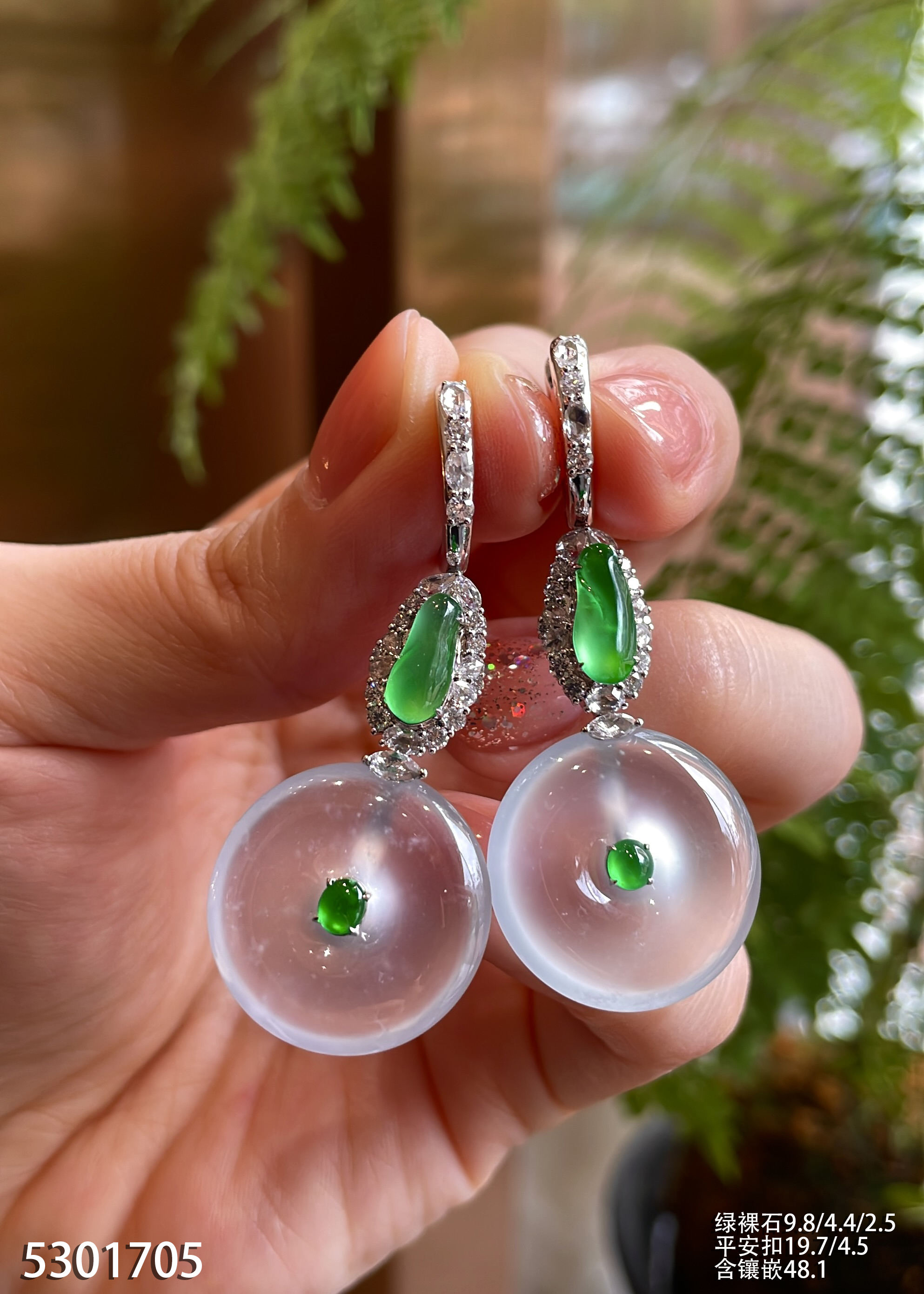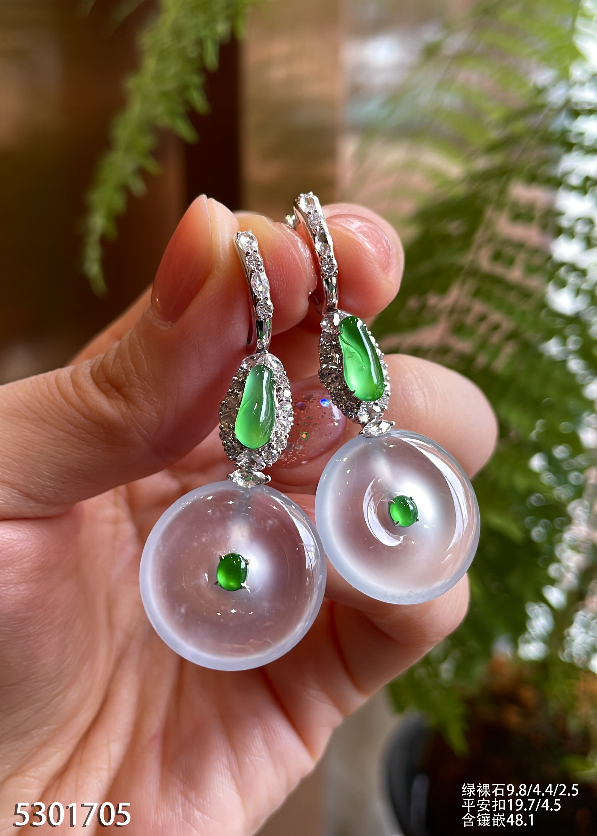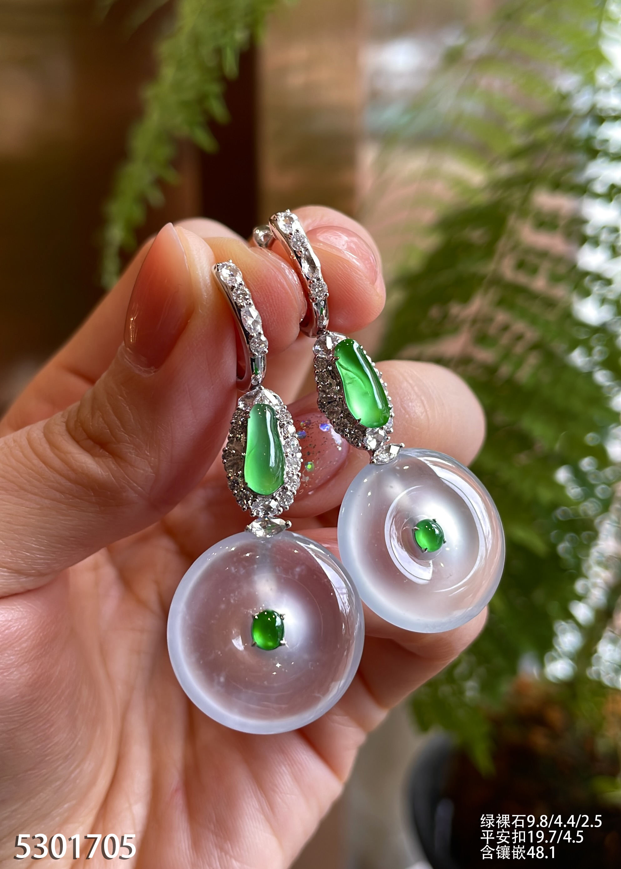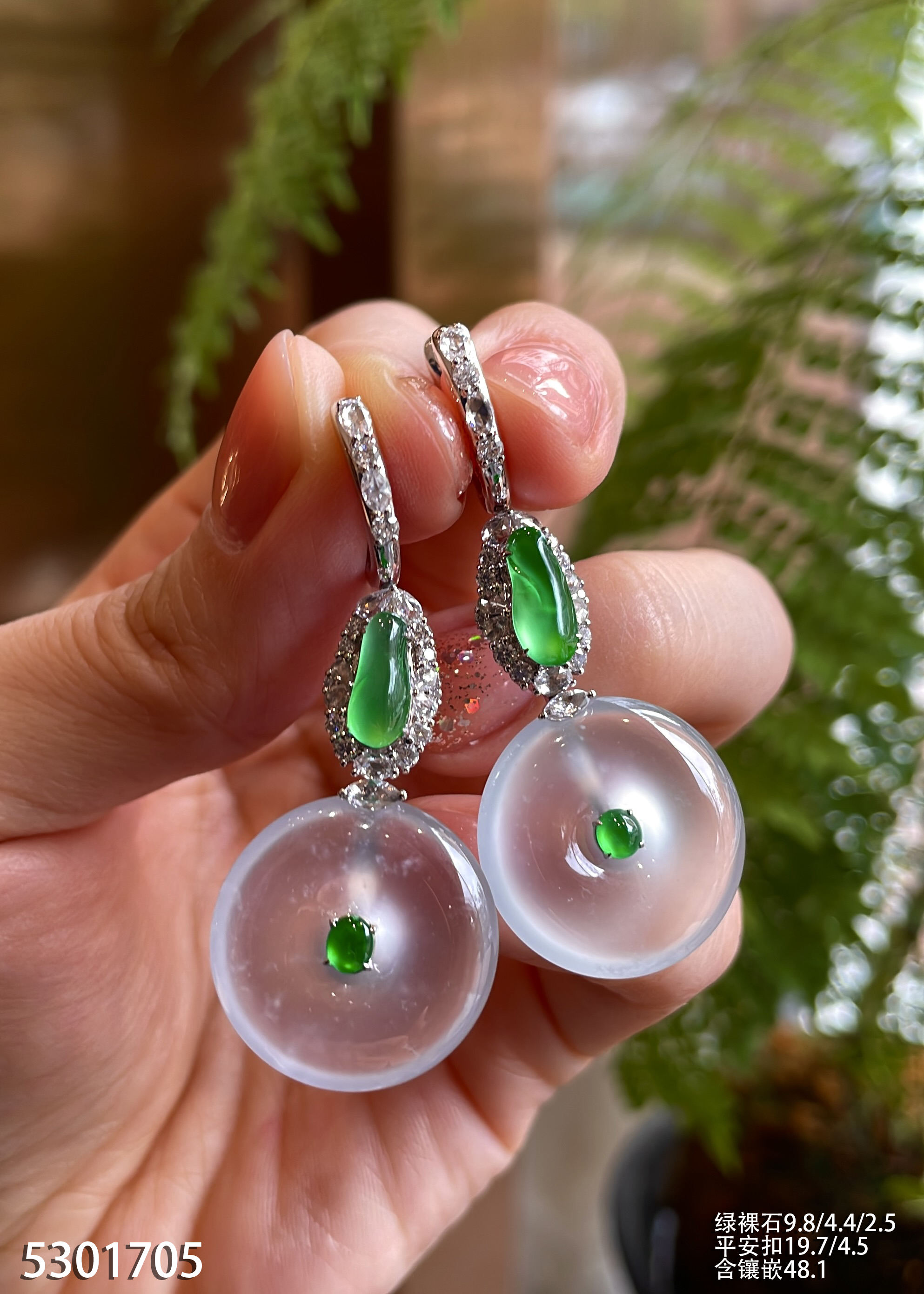 玻璃种平安扣耳坠【5301705】具体价格微信咨询