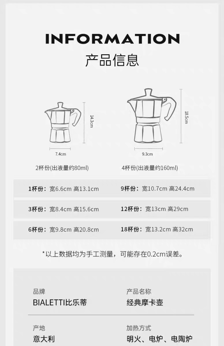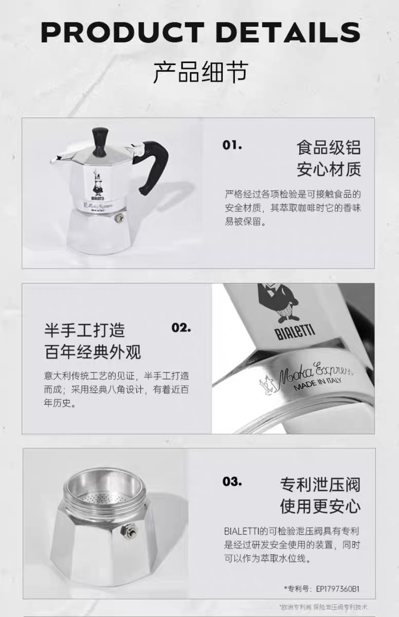 比乐蒂摩卡壶咖啡壶煮意式浓缩家用咖啡机户外