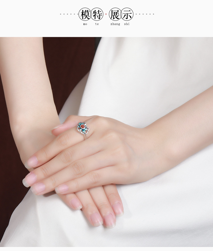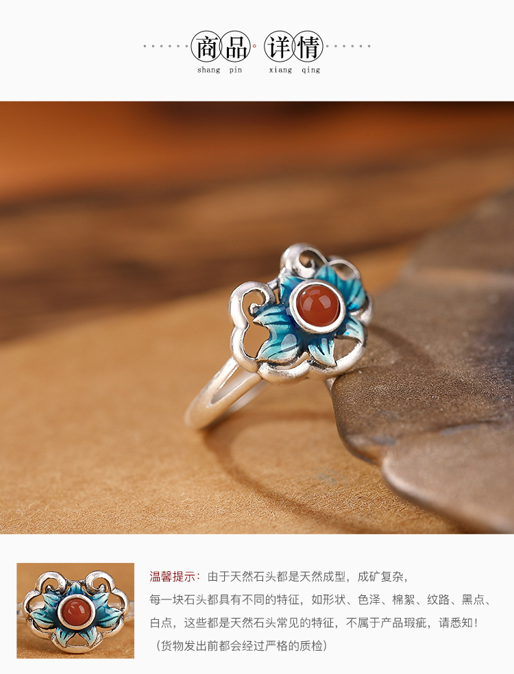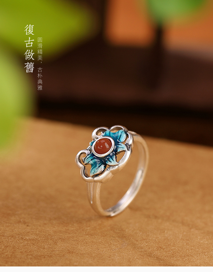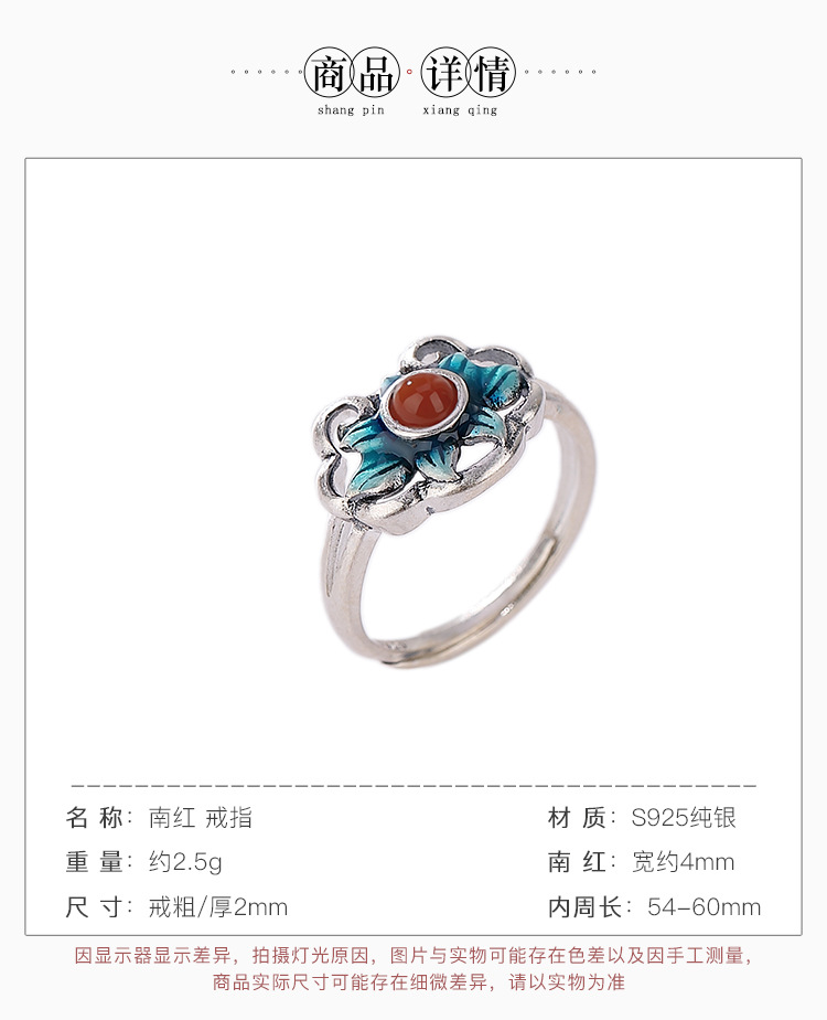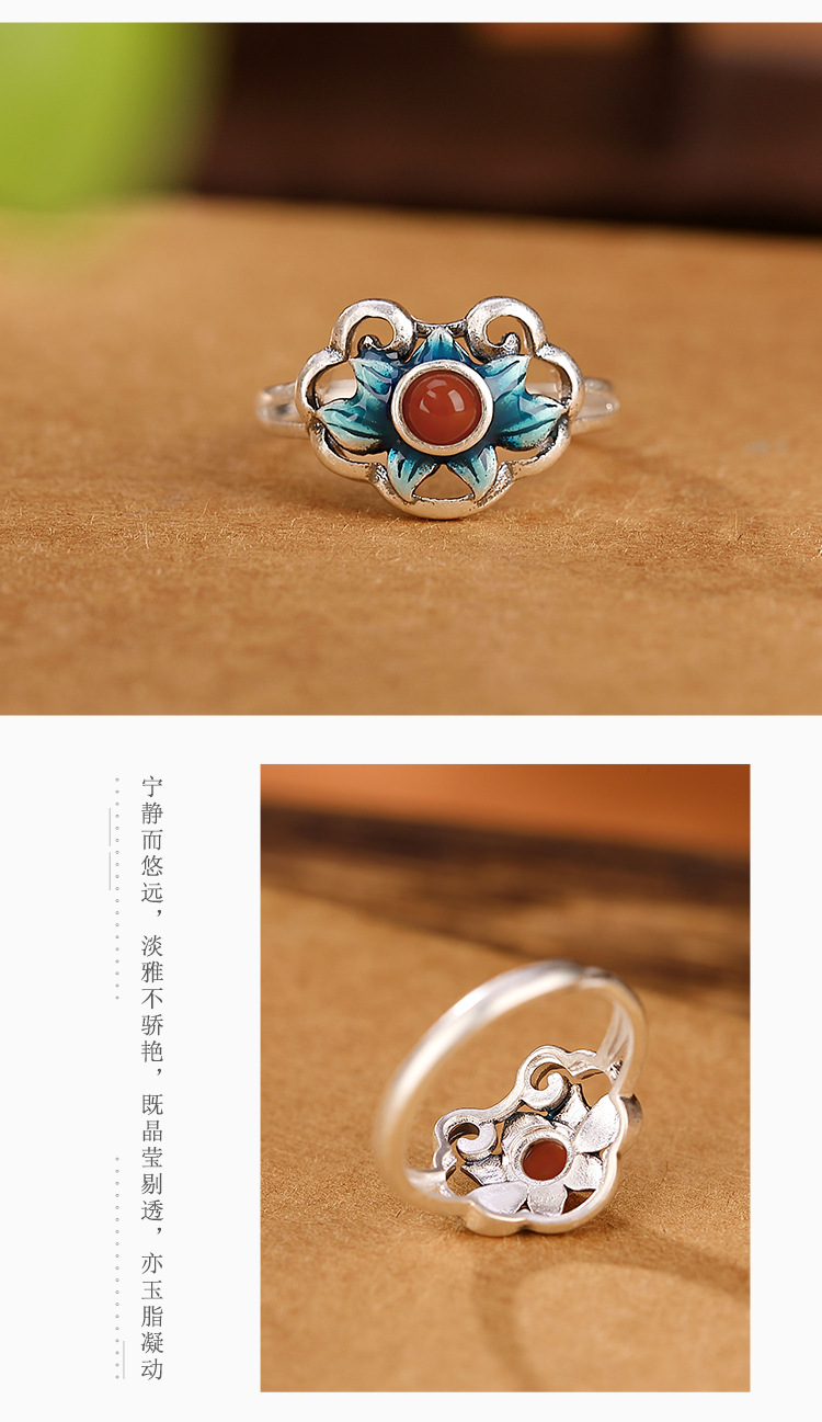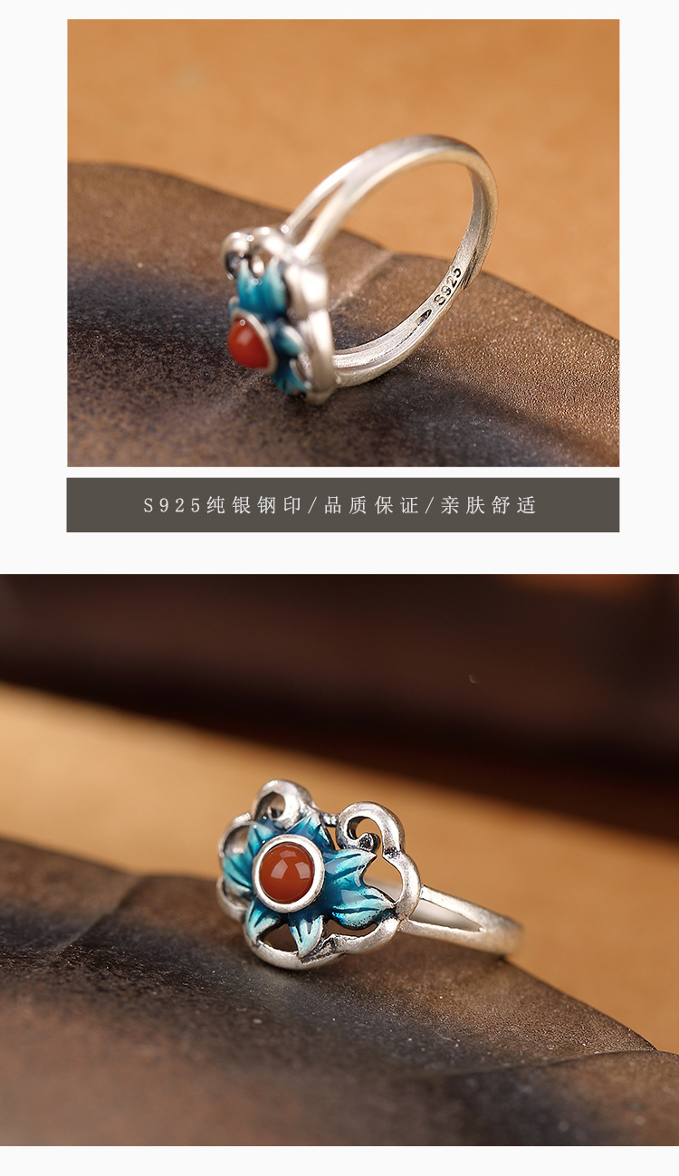 【好运连连】S925银南红复古景泰蓝莲花戒指【CW-406026】