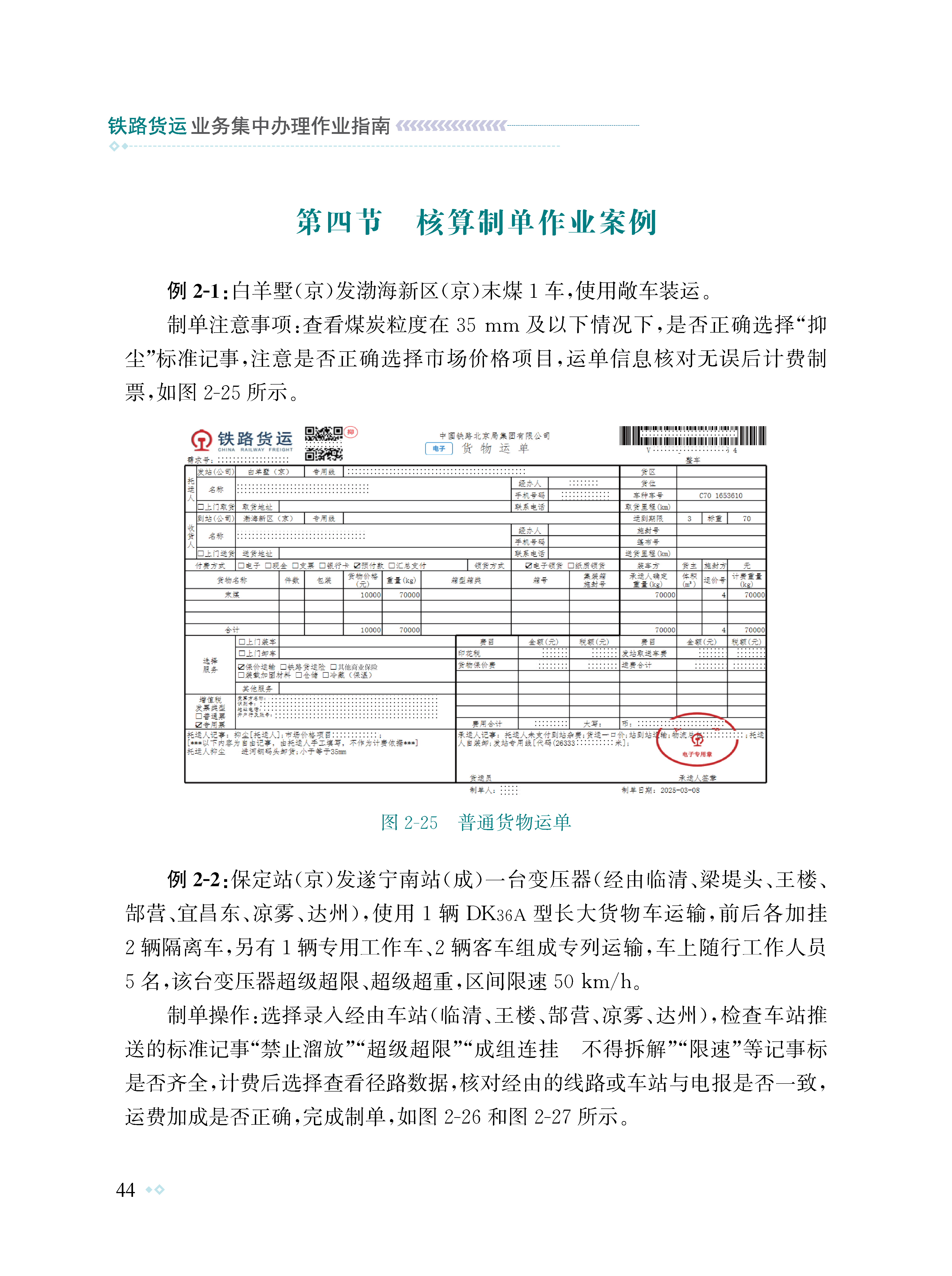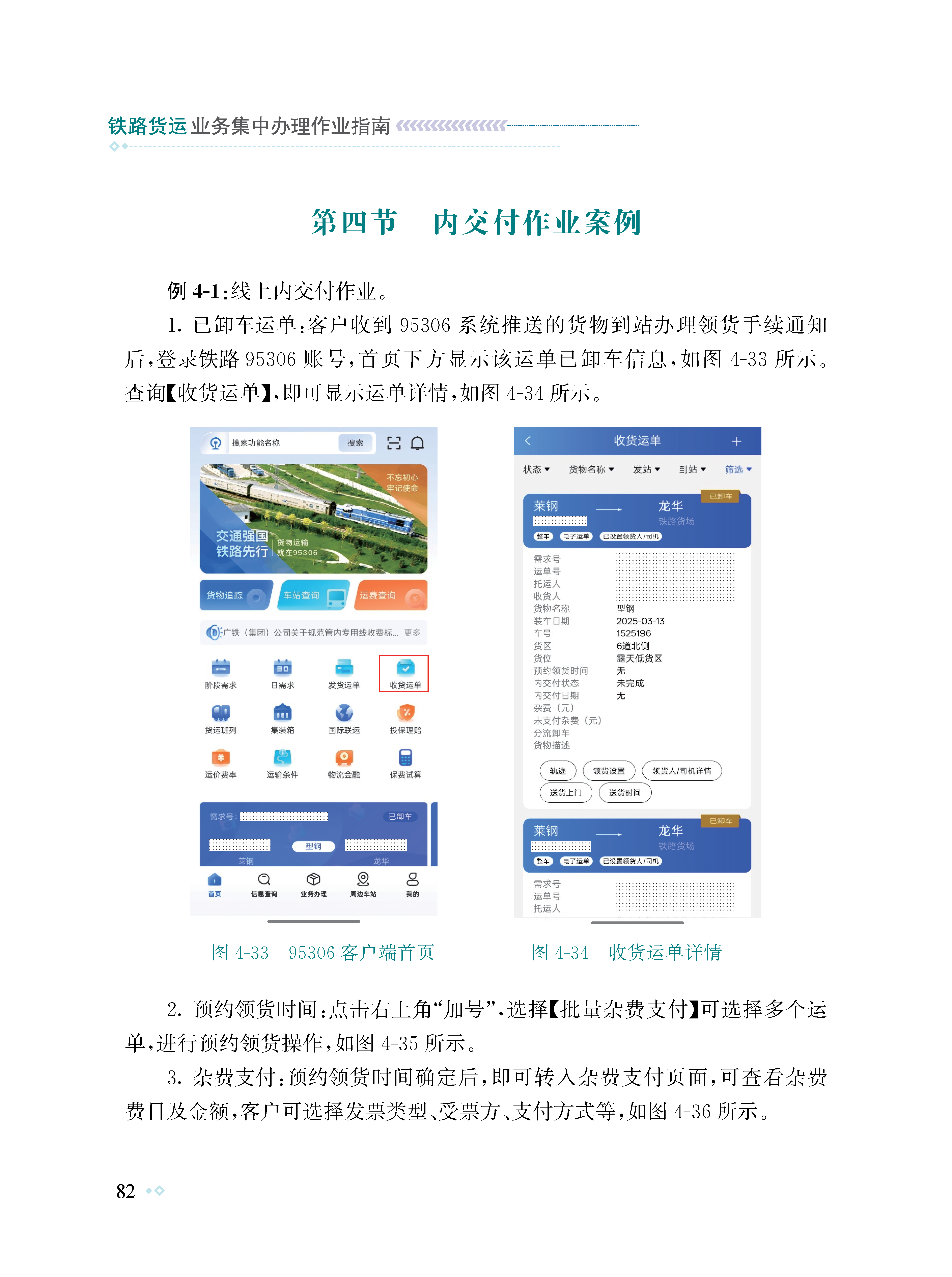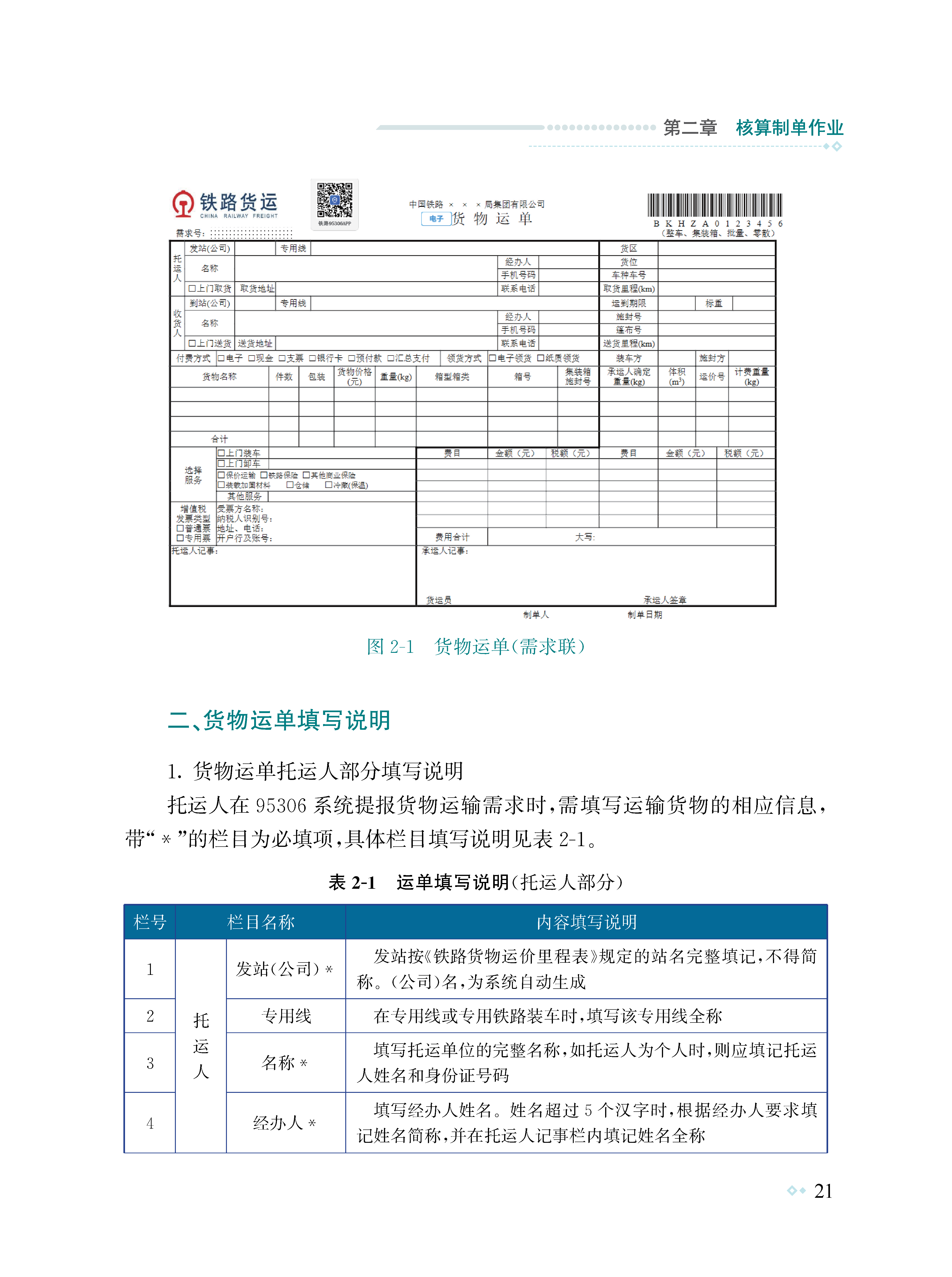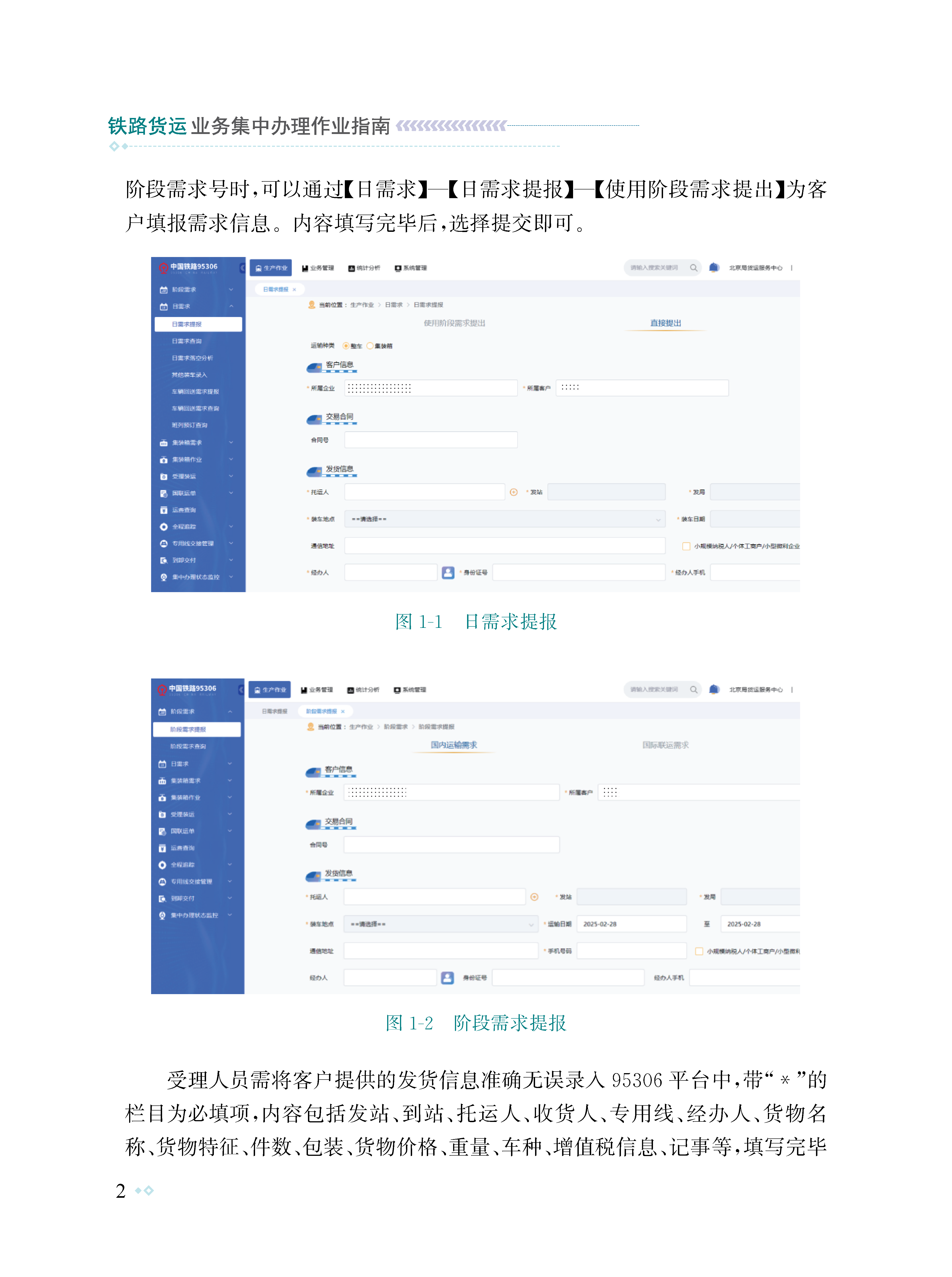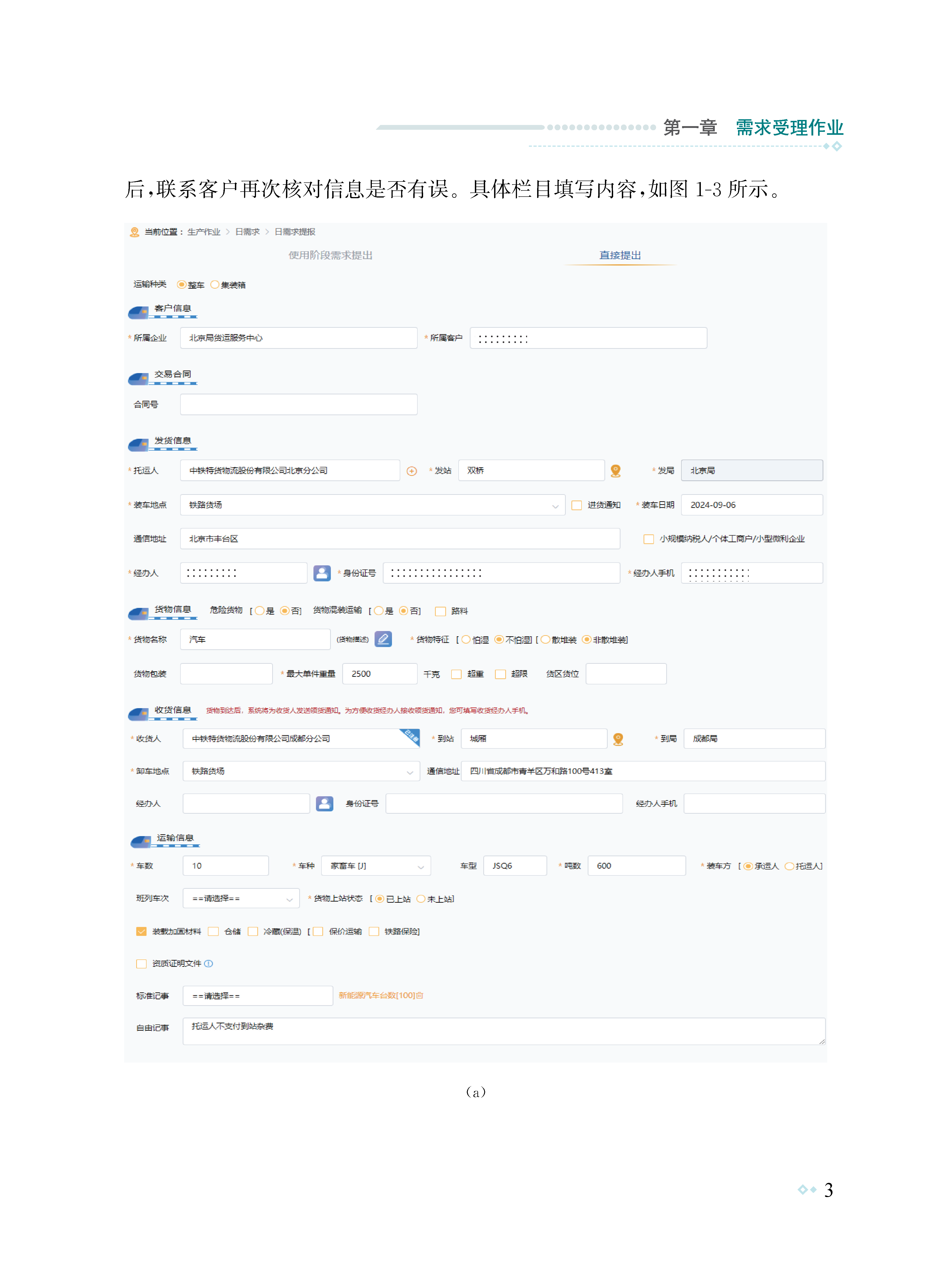 为有效提高铁路货运系统干部职工货运理论知识和实作技能水平,提升货运集中办理作业质效和客户服务水平,北京局集团公司组织编写了本书。本书遵循“实际、实用”原则,依托铁路95306综合智慧服务平台、货票系统3.0程序,以及正在试运行的网页版货票4.0程序,以国铁集团、集团公司等文件制度为指导依据,采用理论规章、案例说明、图表、数据分析、文字说明的方式全方位展示货运集中办理全过程。全书共分为八章,主要讲述了需求受理、计费制单、收入进款、内交付、增值税发票、货损理赔、客户服务、外勤作业以及常见系统问题解决方案等内容。本书既可以作为货运系统干部职工日常适应性培训教材,也可以作为货运集中办理生产作业指南。