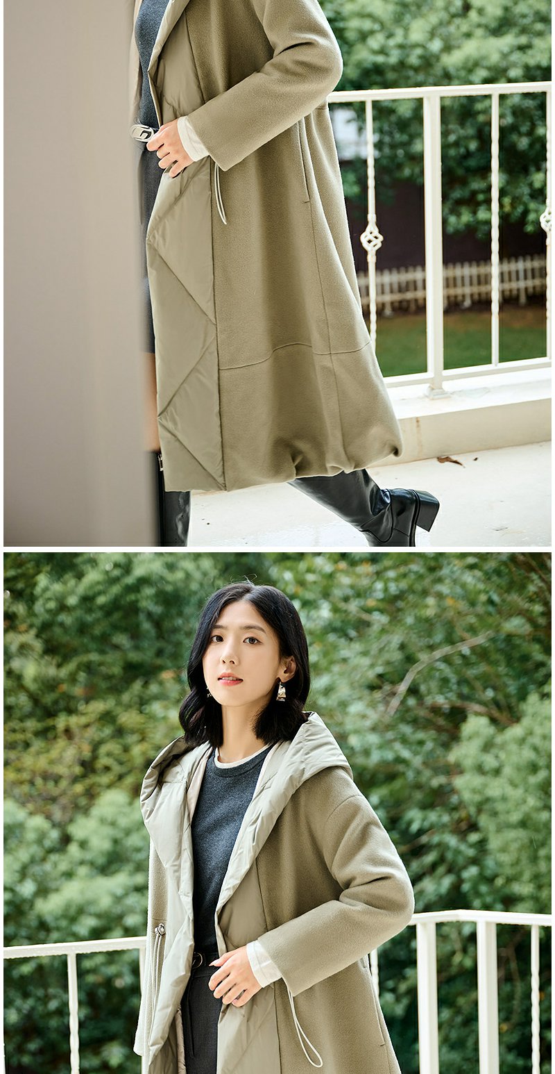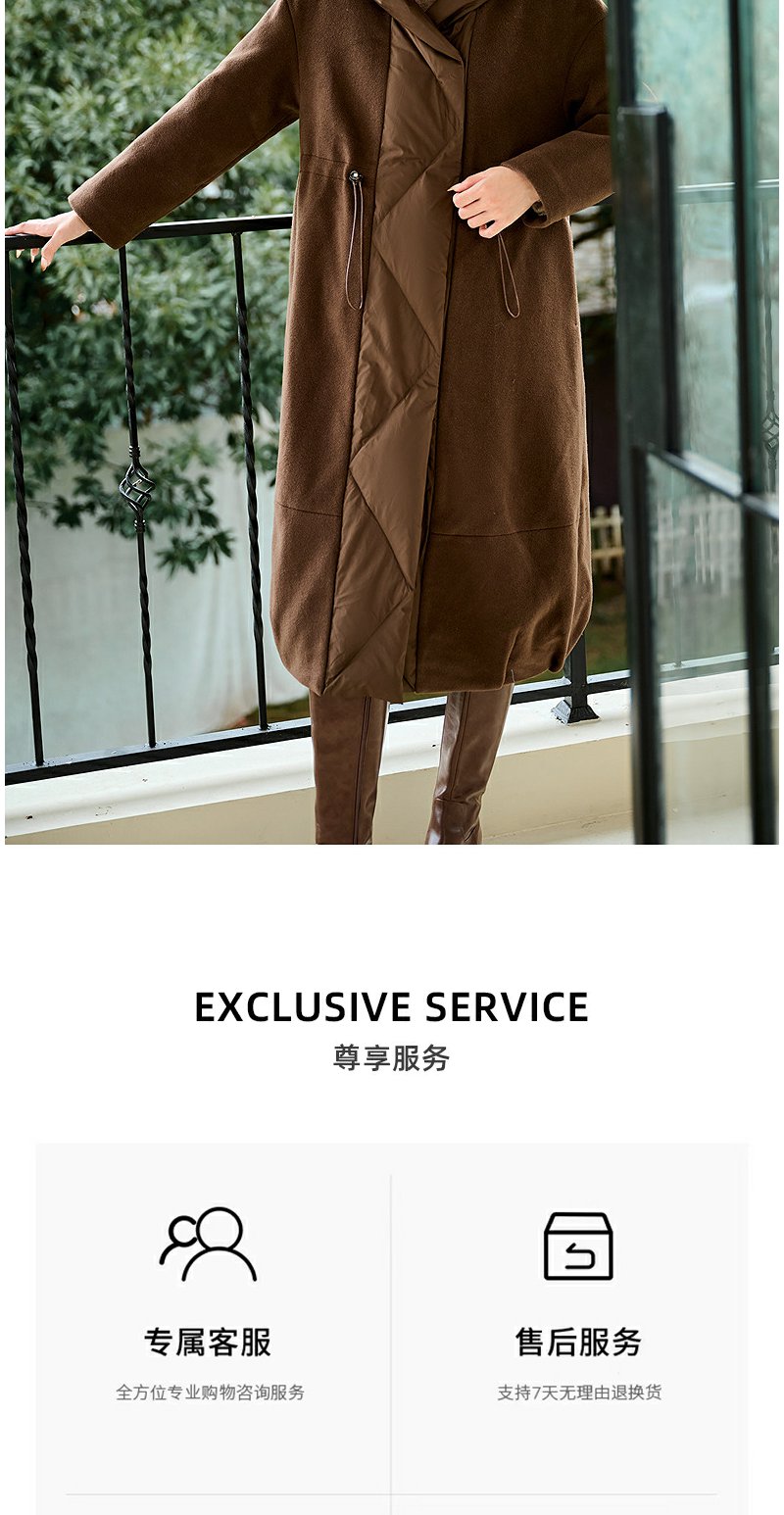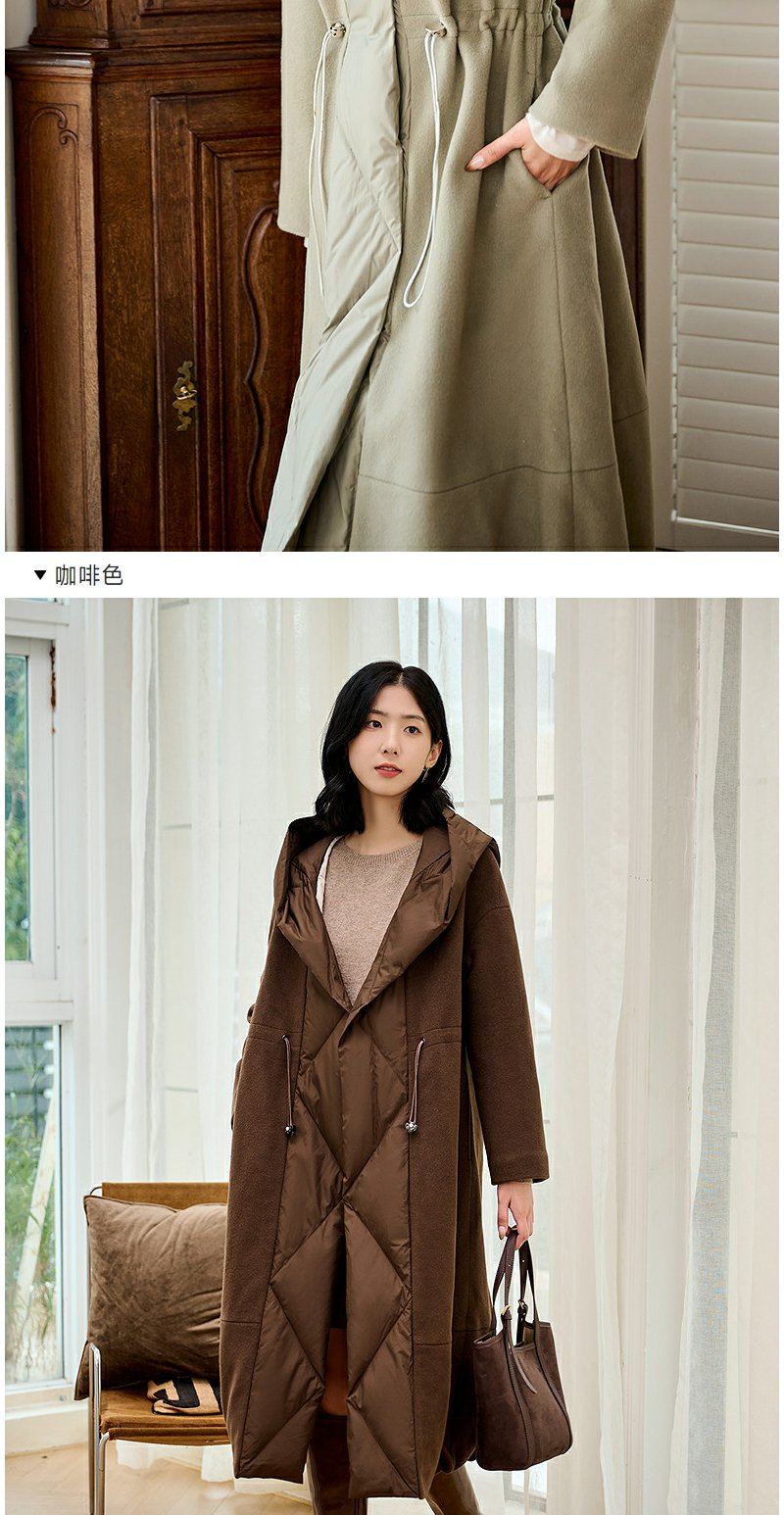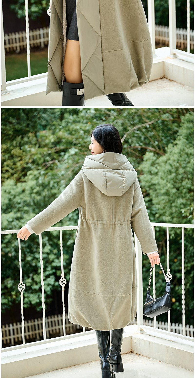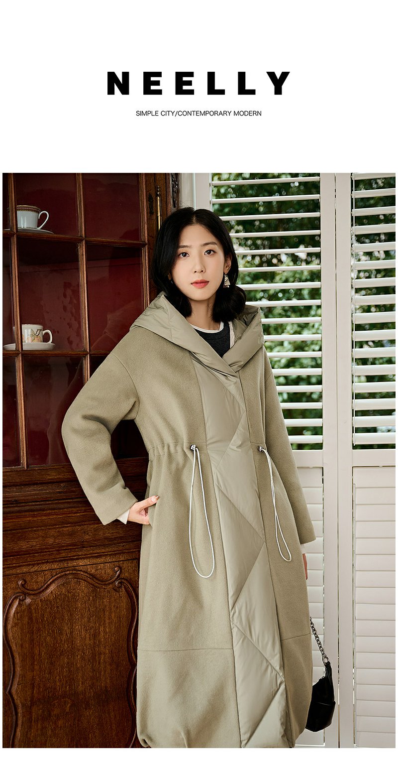 NEELLY纳俪商场同款冬季新款羽绒拼接连帽双面呢大衣女长款外套N24104N07764