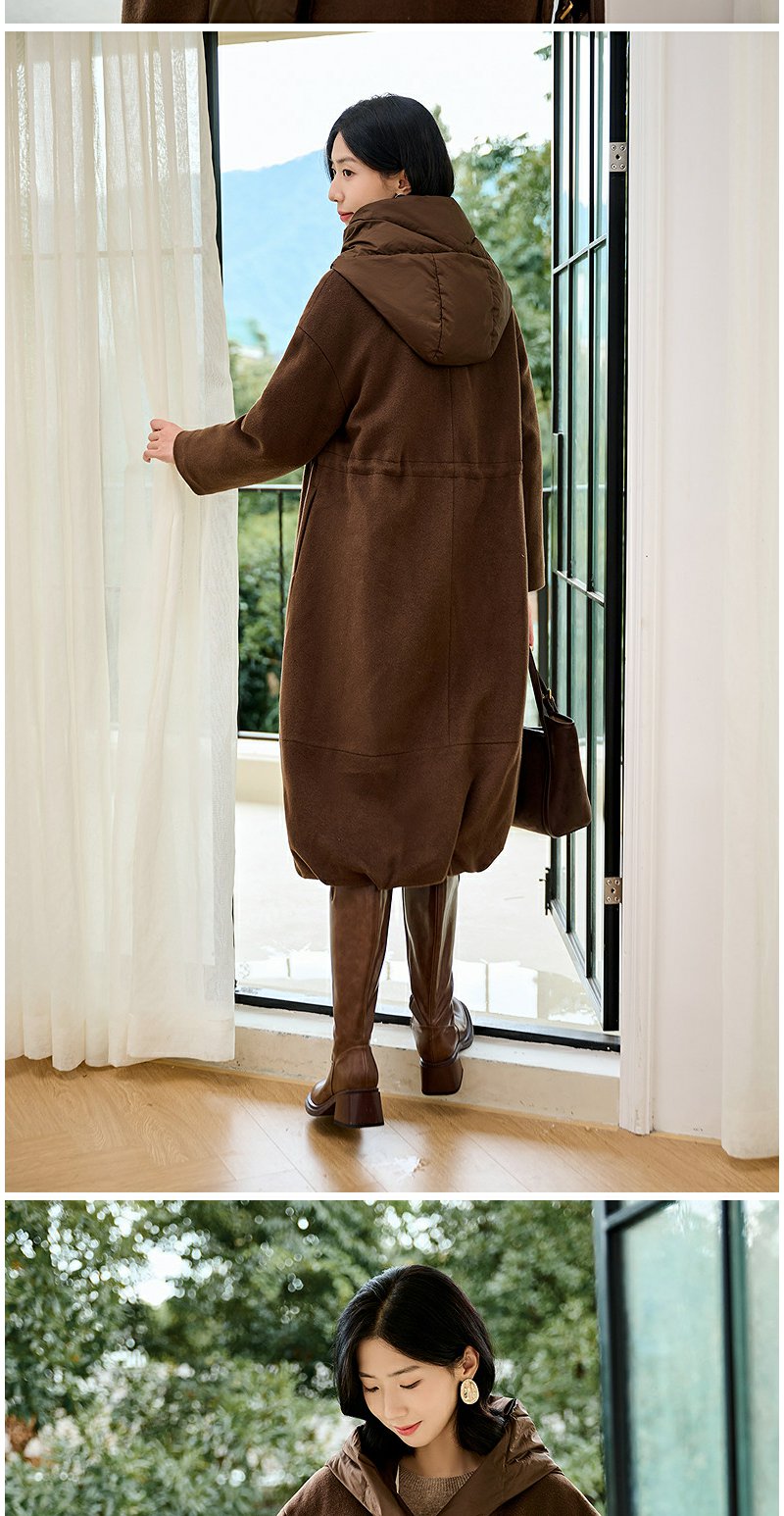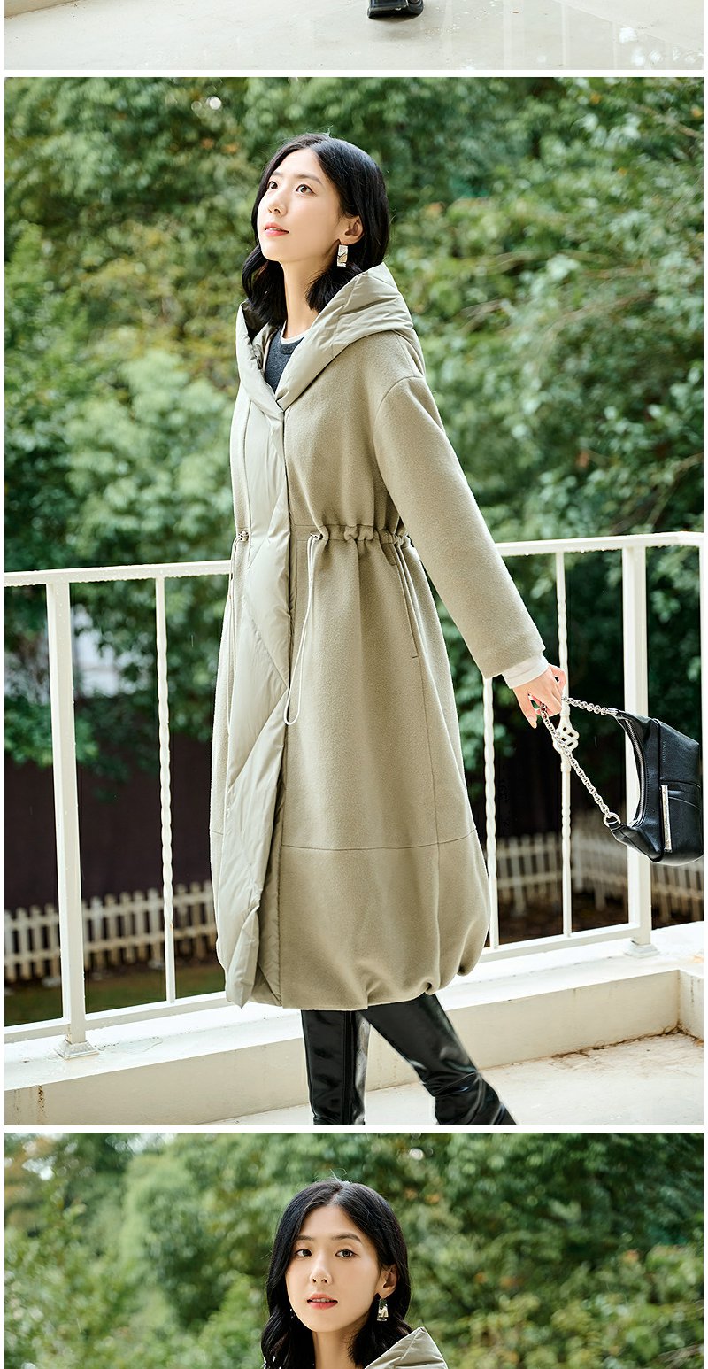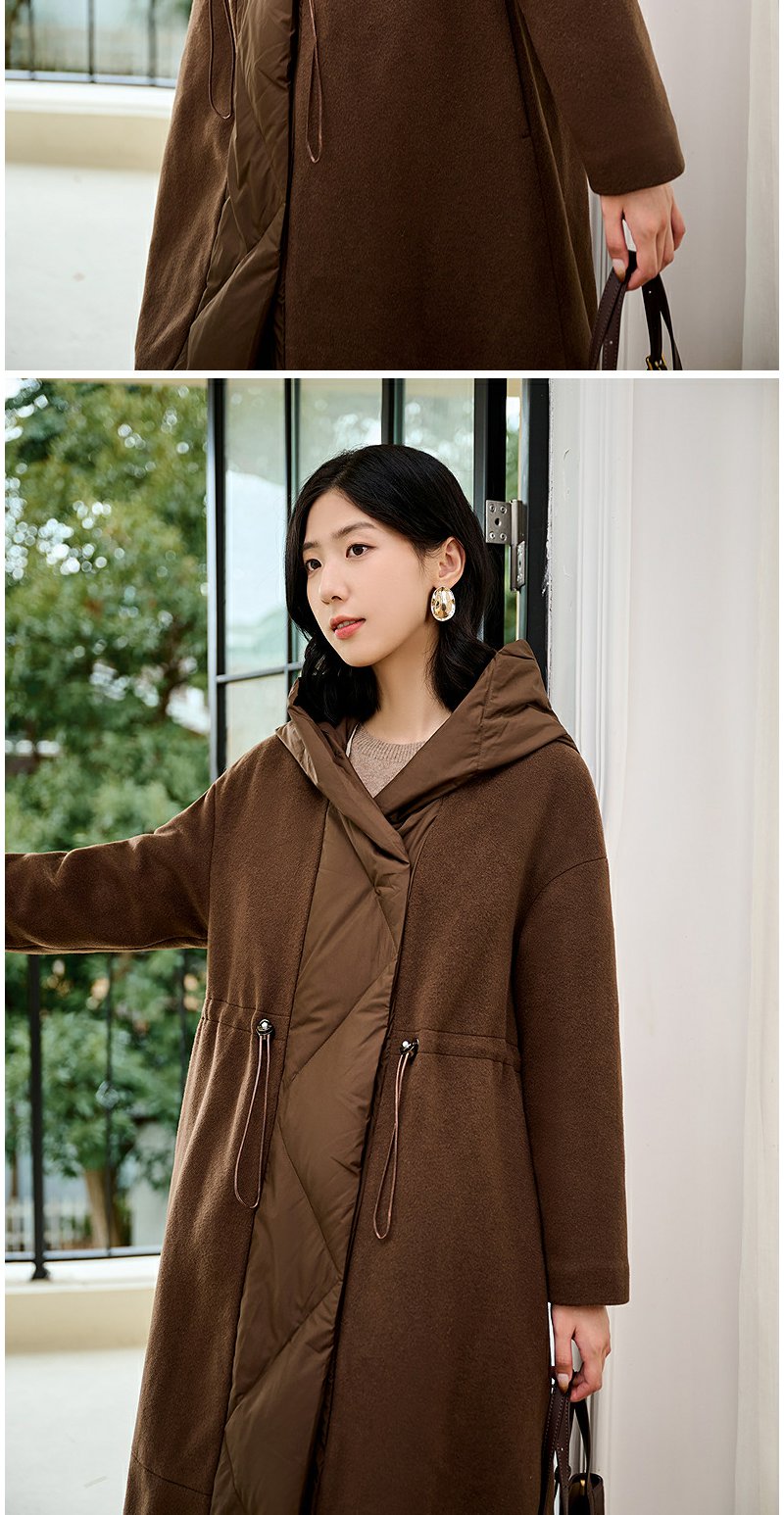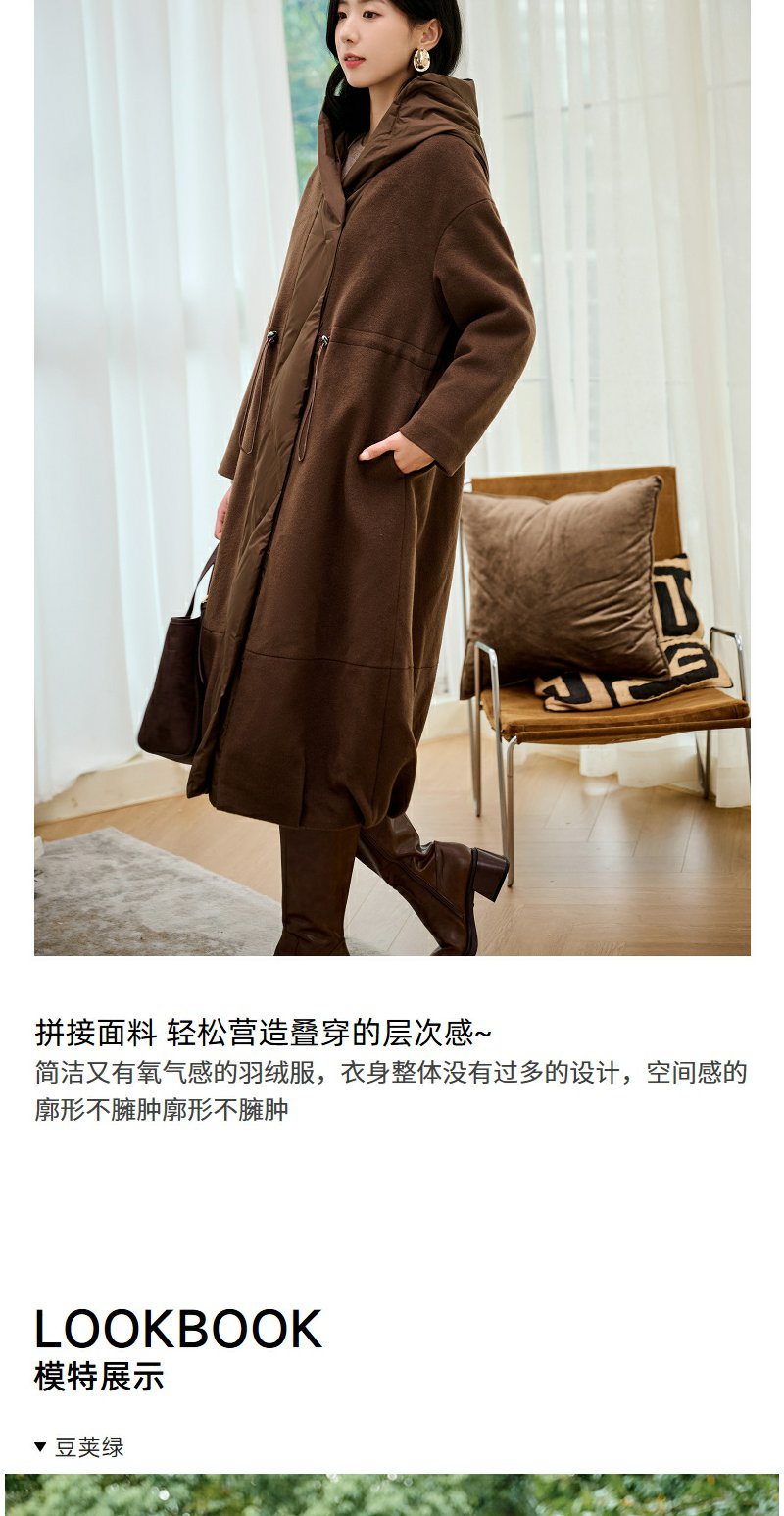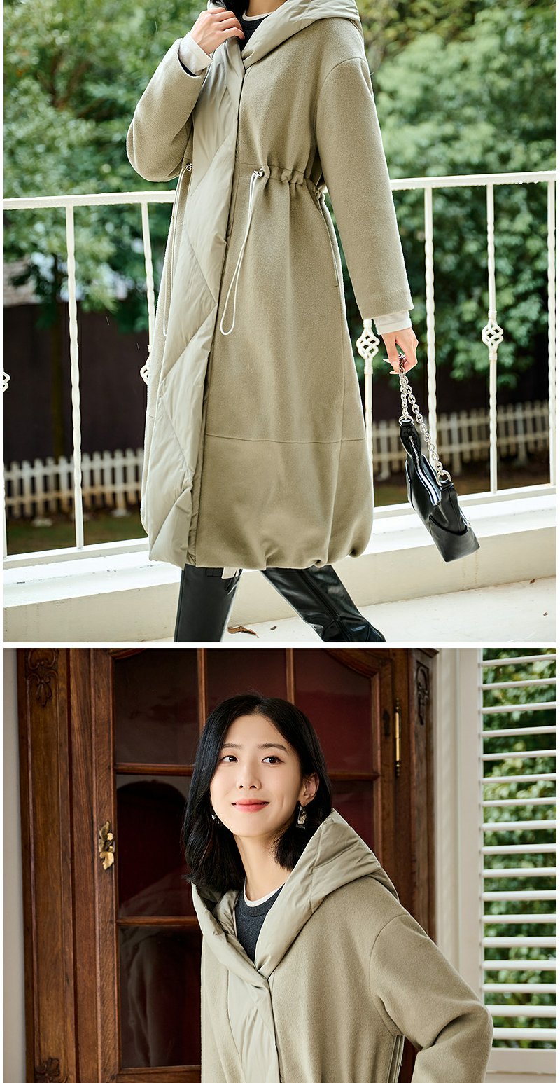 NEELLY纳俪商场同款冬季新款羽绒拼接连帽双面呢大衣女长款外套N24104N07764