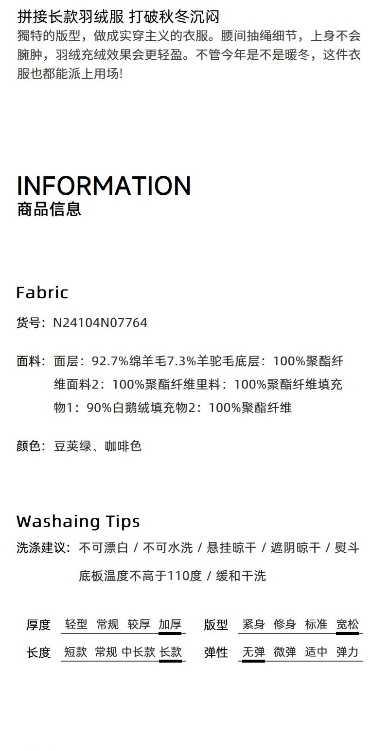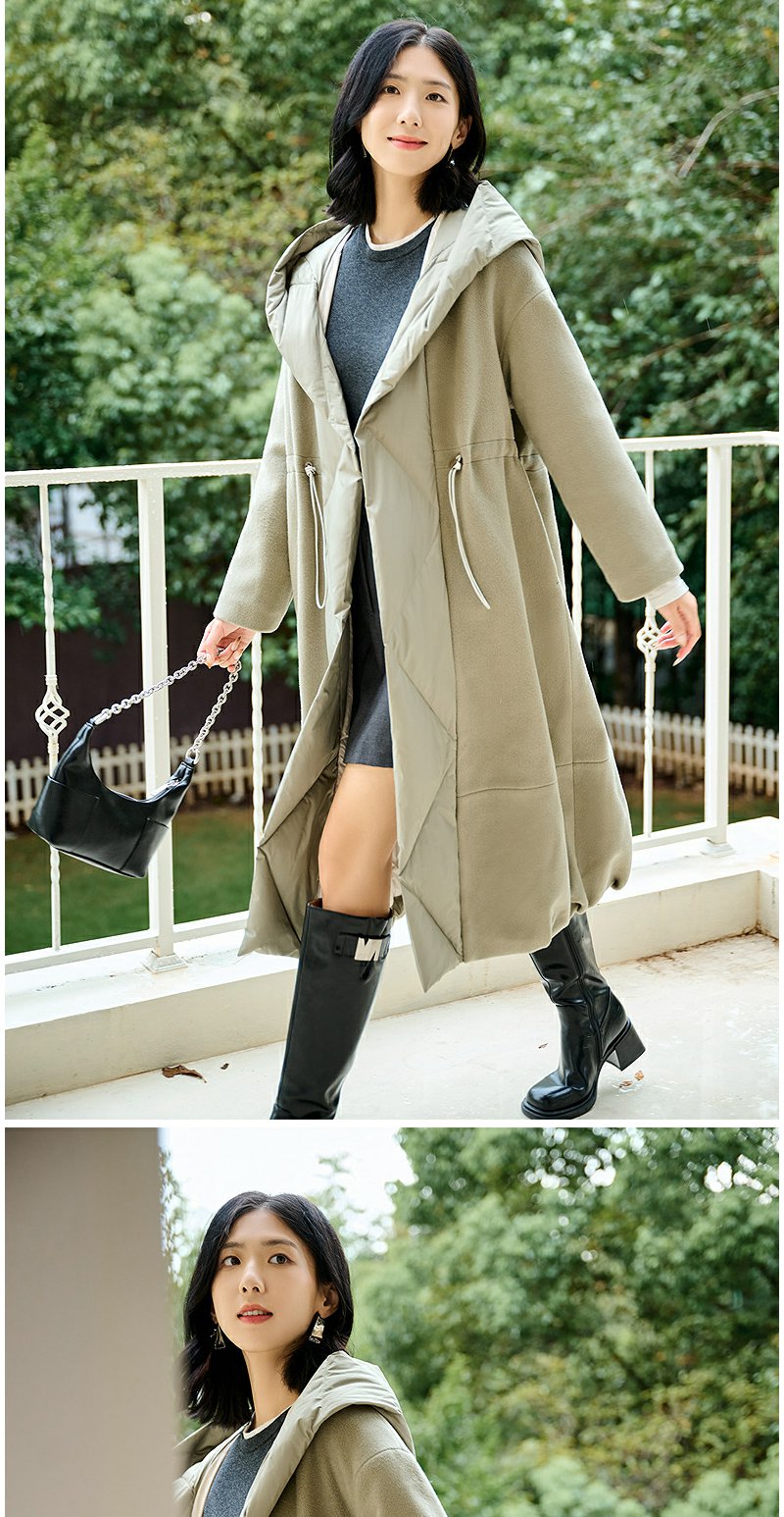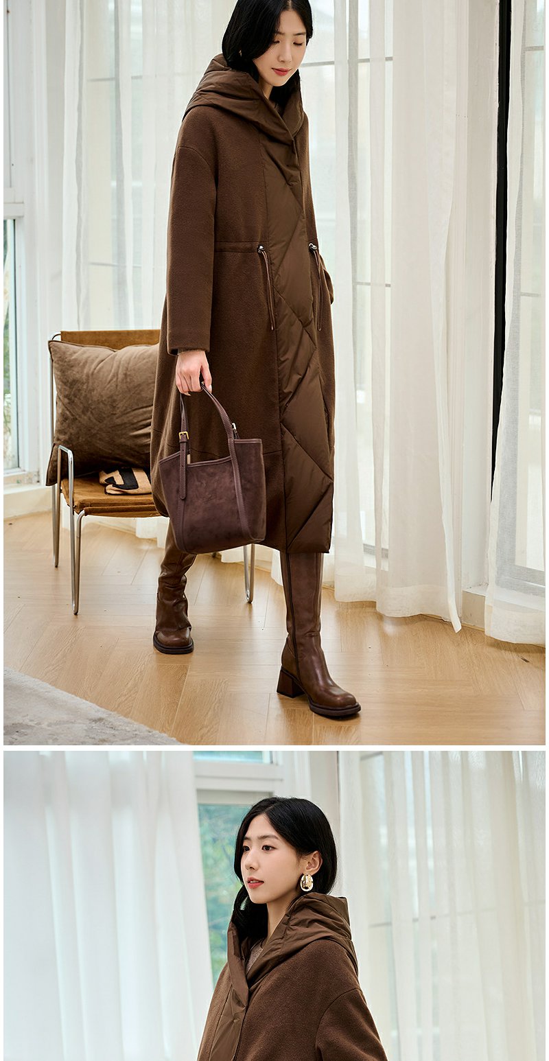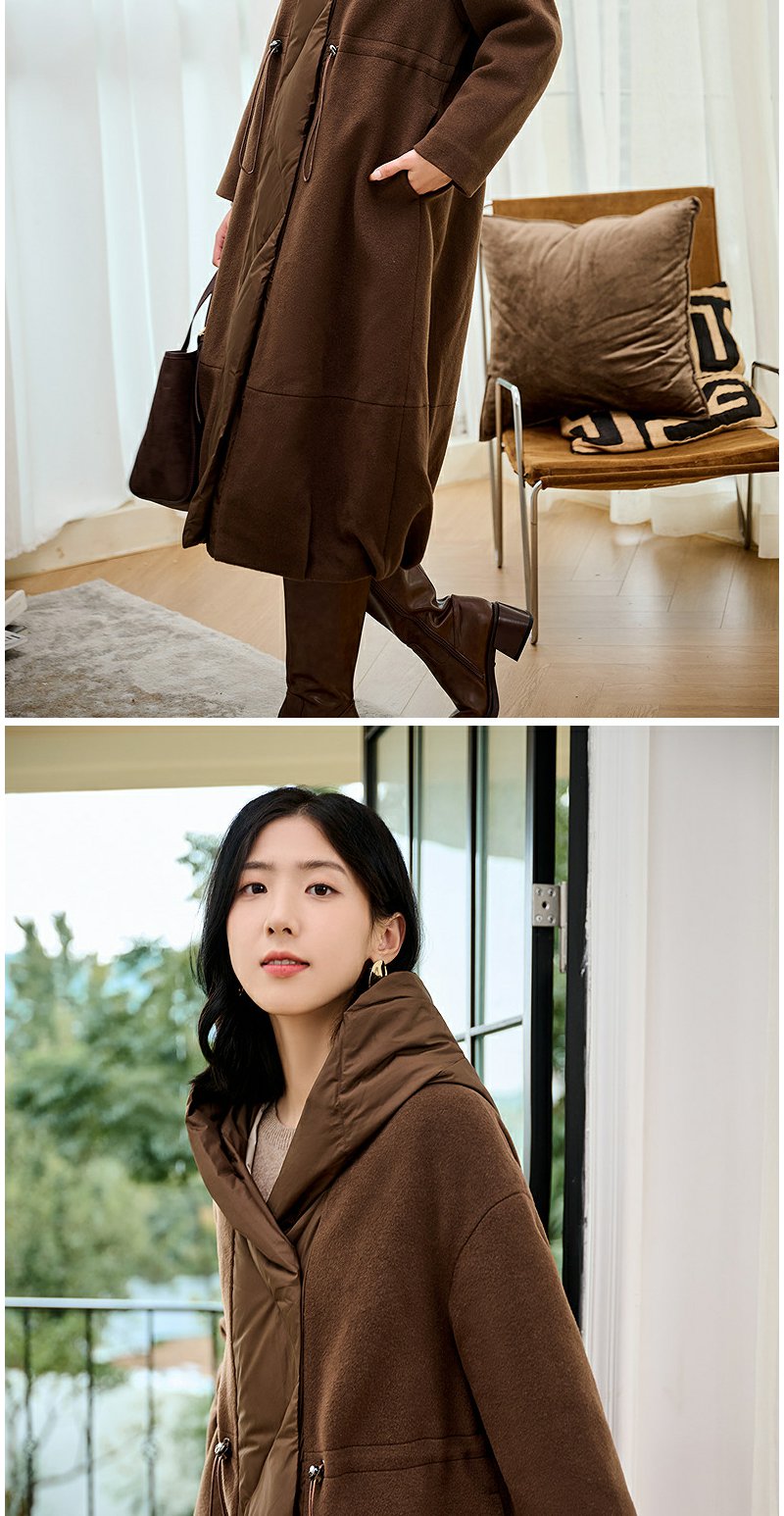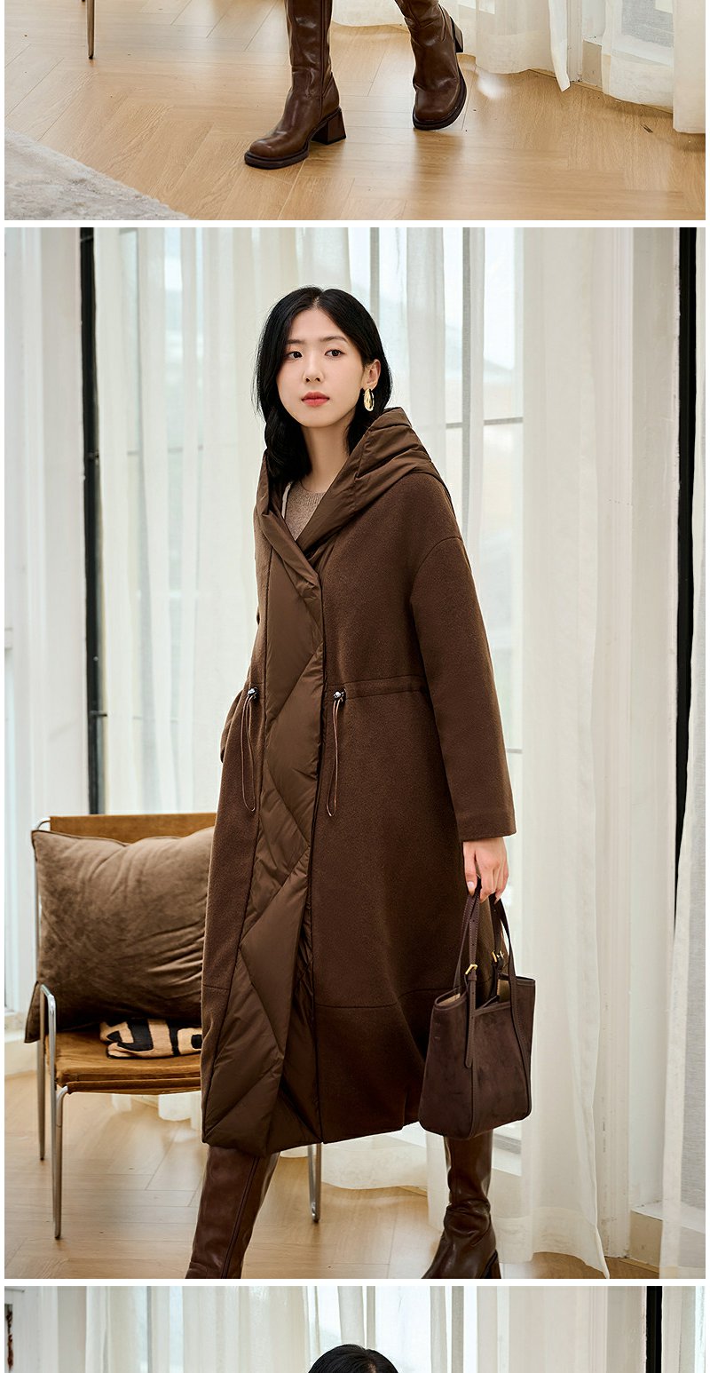 NEELLY纳俪商场同款冬季新款羽绒拼接连帽双面呢大衣女长款外套N24104N07764