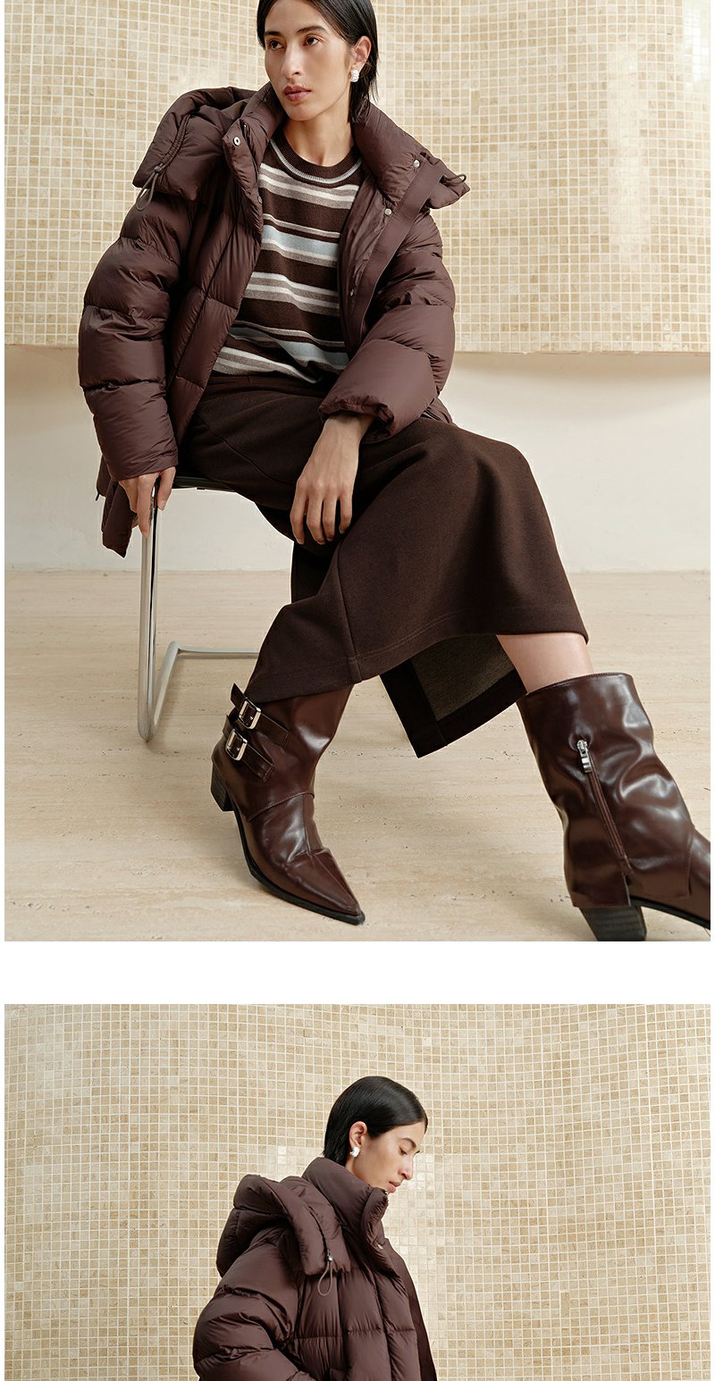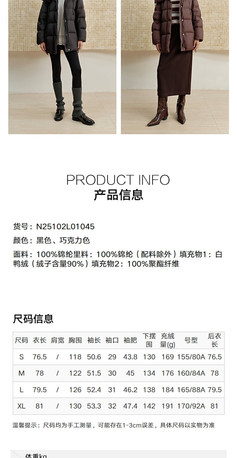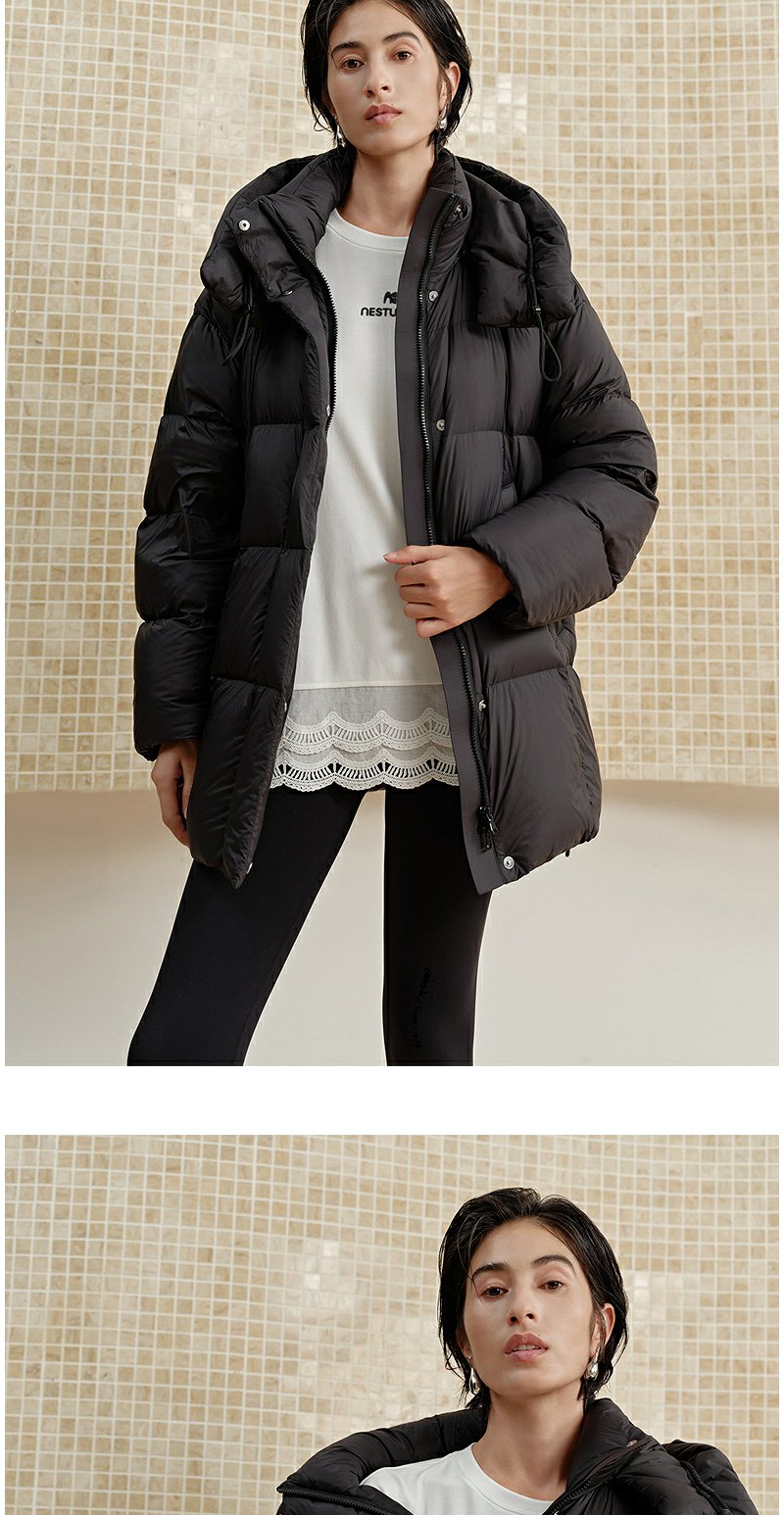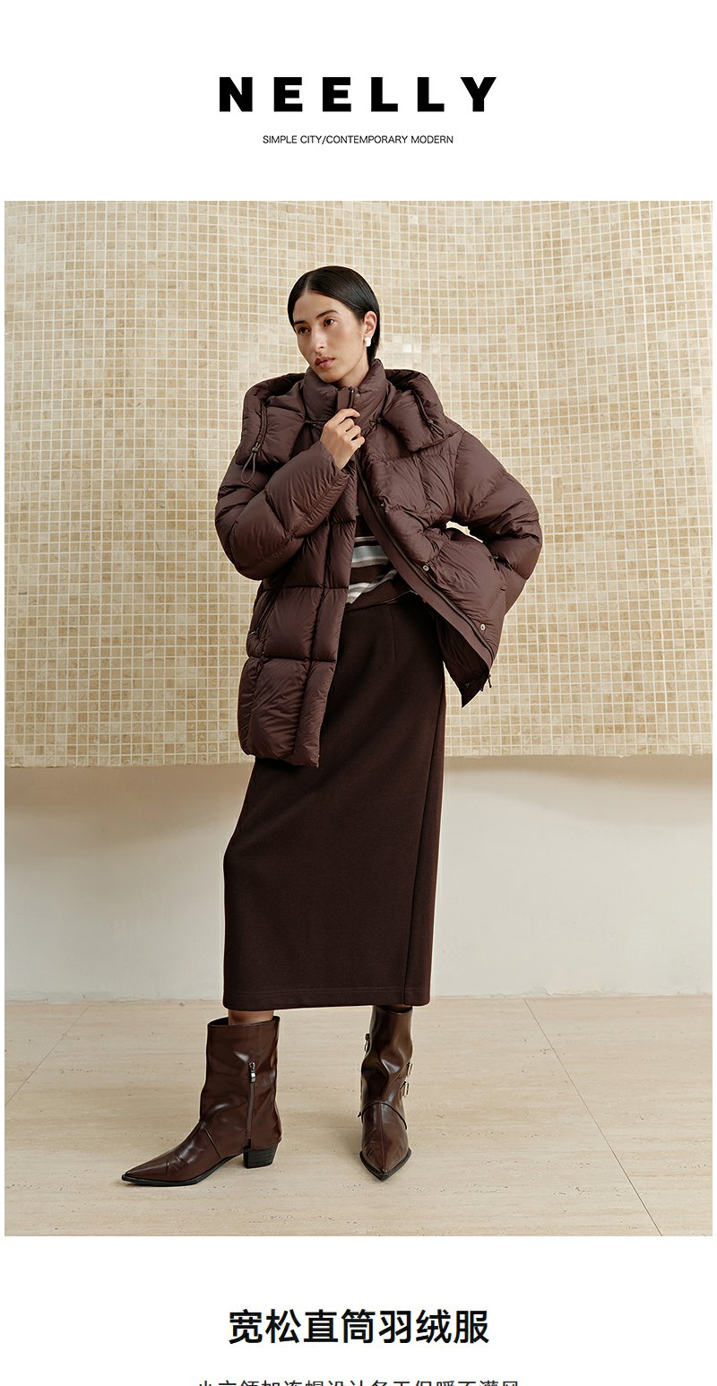NEELLY纳俪商场同款冬季新款宽松直筒羽绒服女白鸭绒法式保暖外套N25102L01045