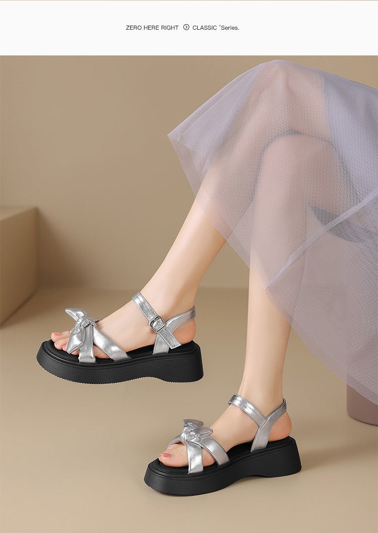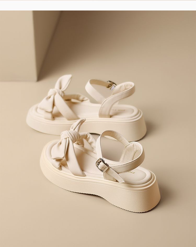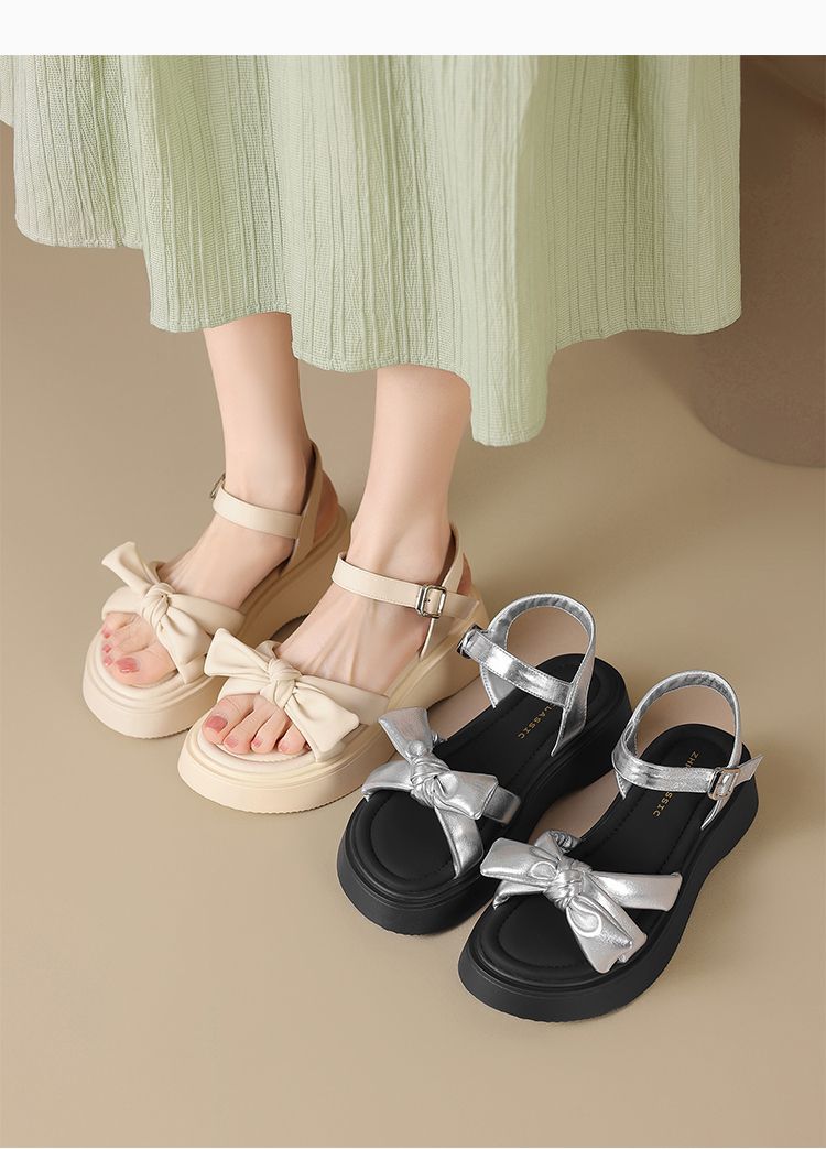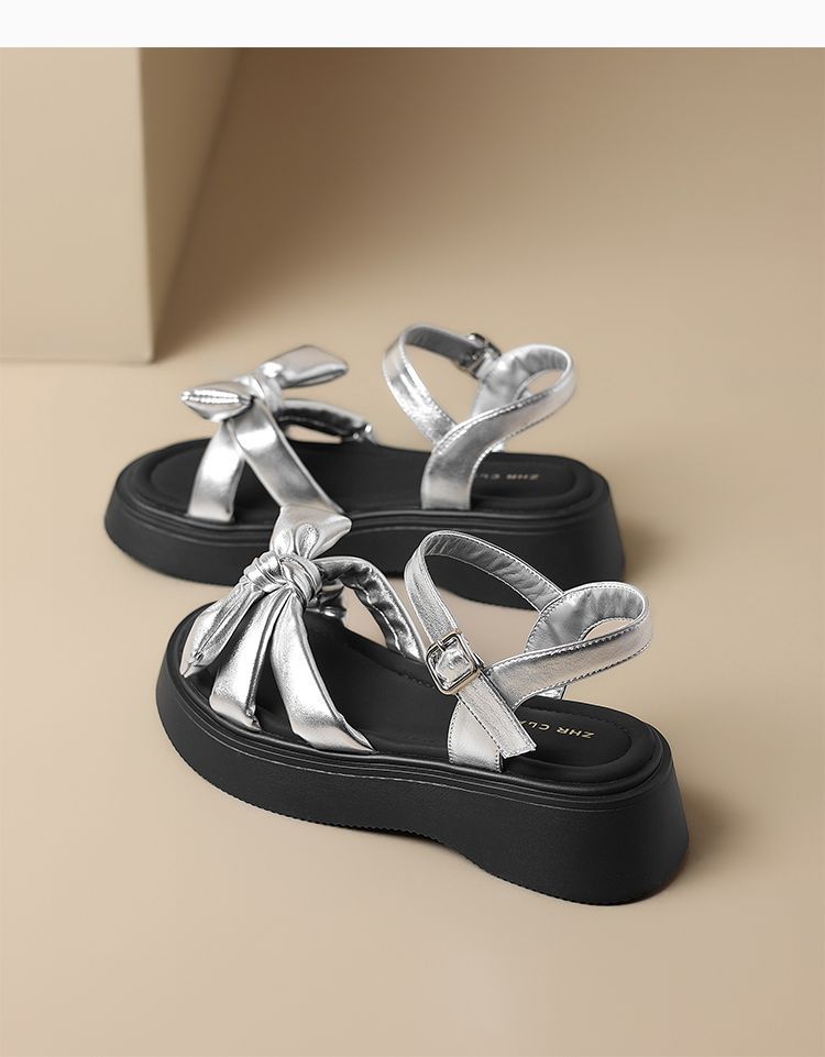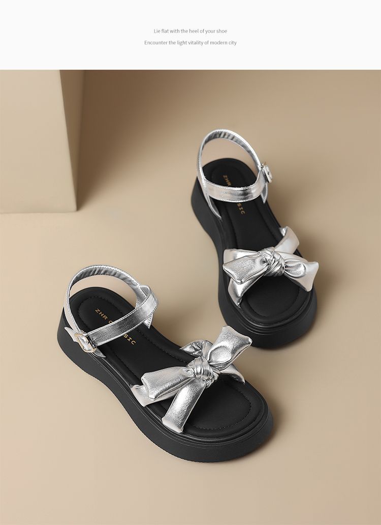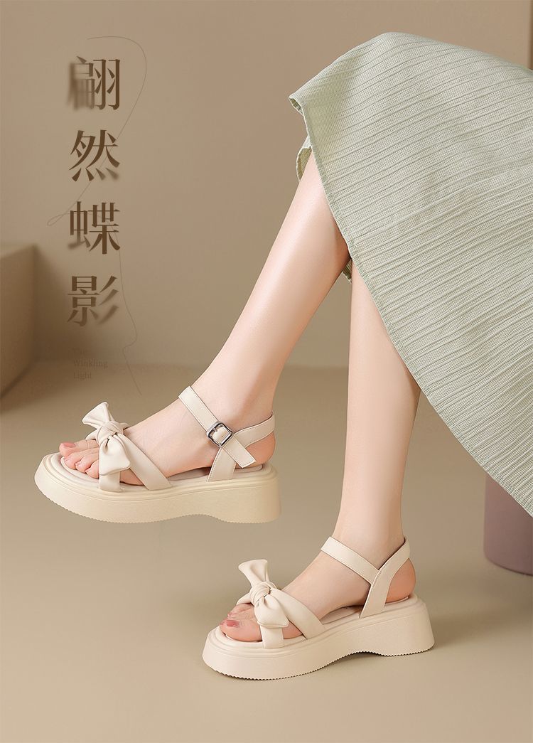 ZHR时尚厚底凉鞋2025夏季新款百搭一字女鞋小众ins蝴蝶结增高凉鞋