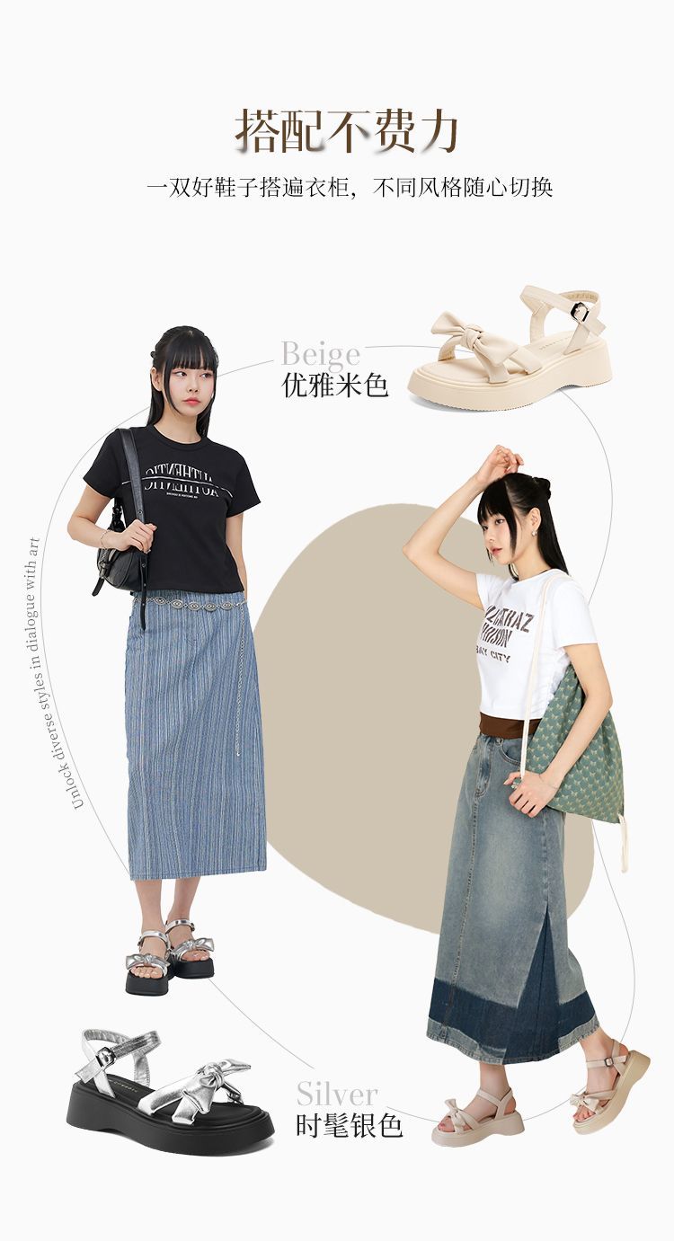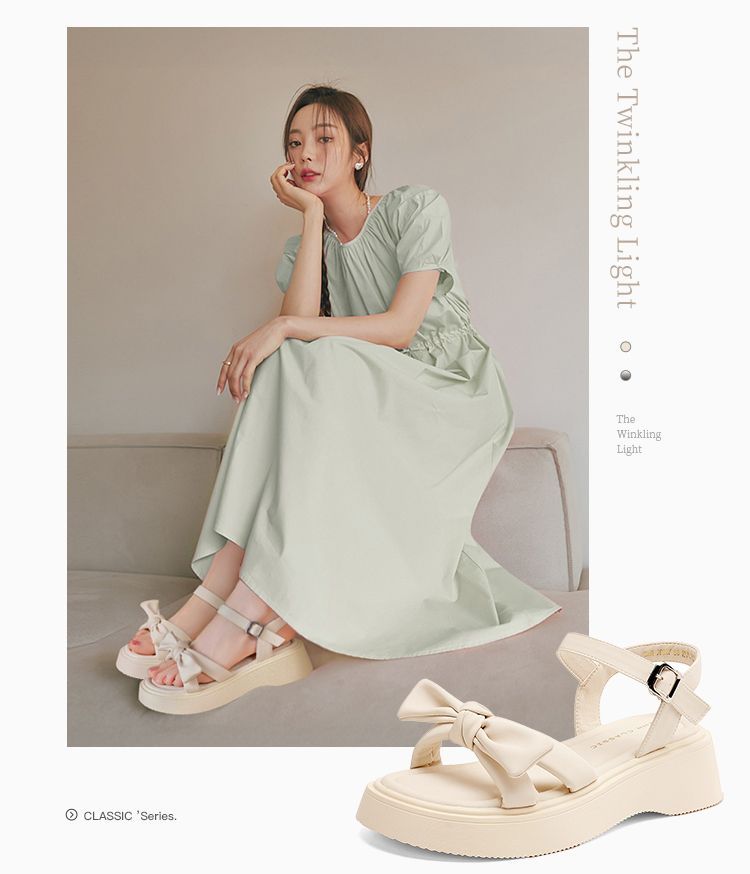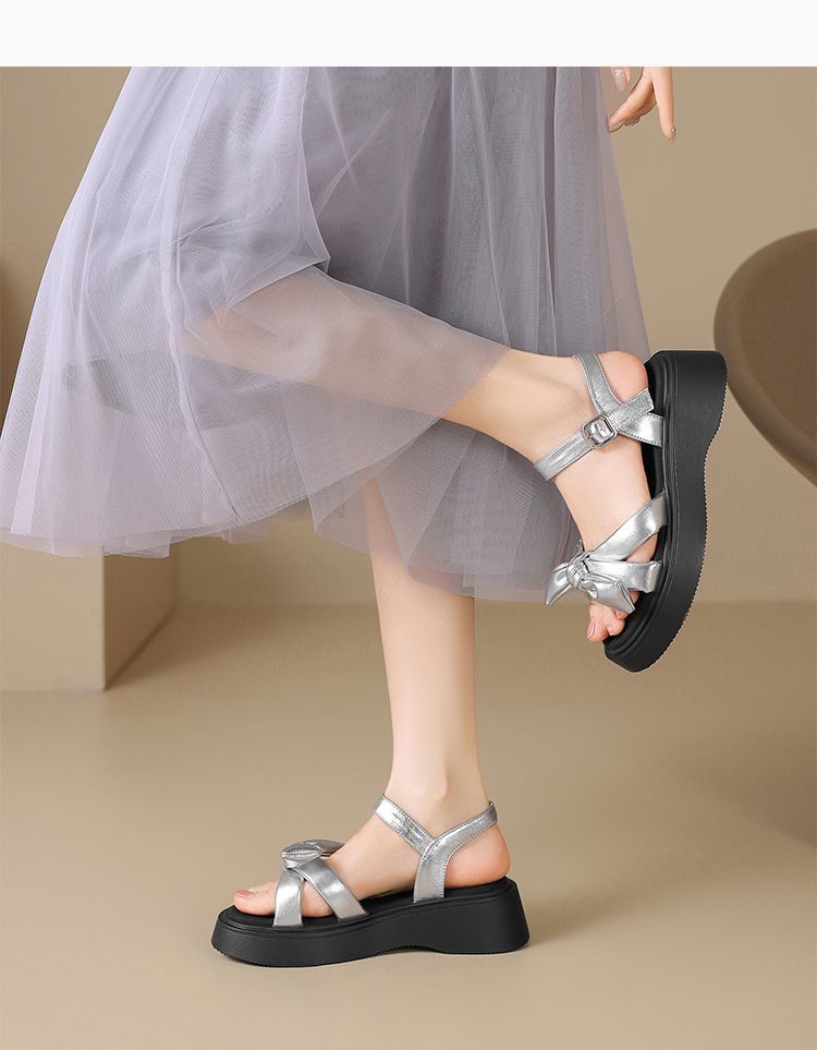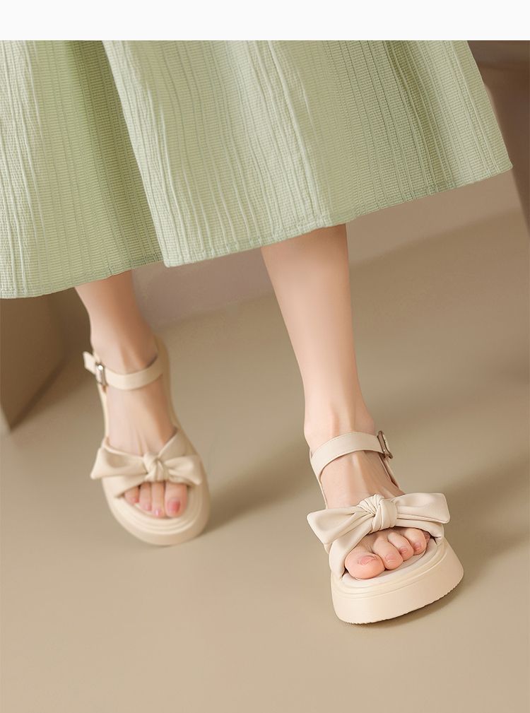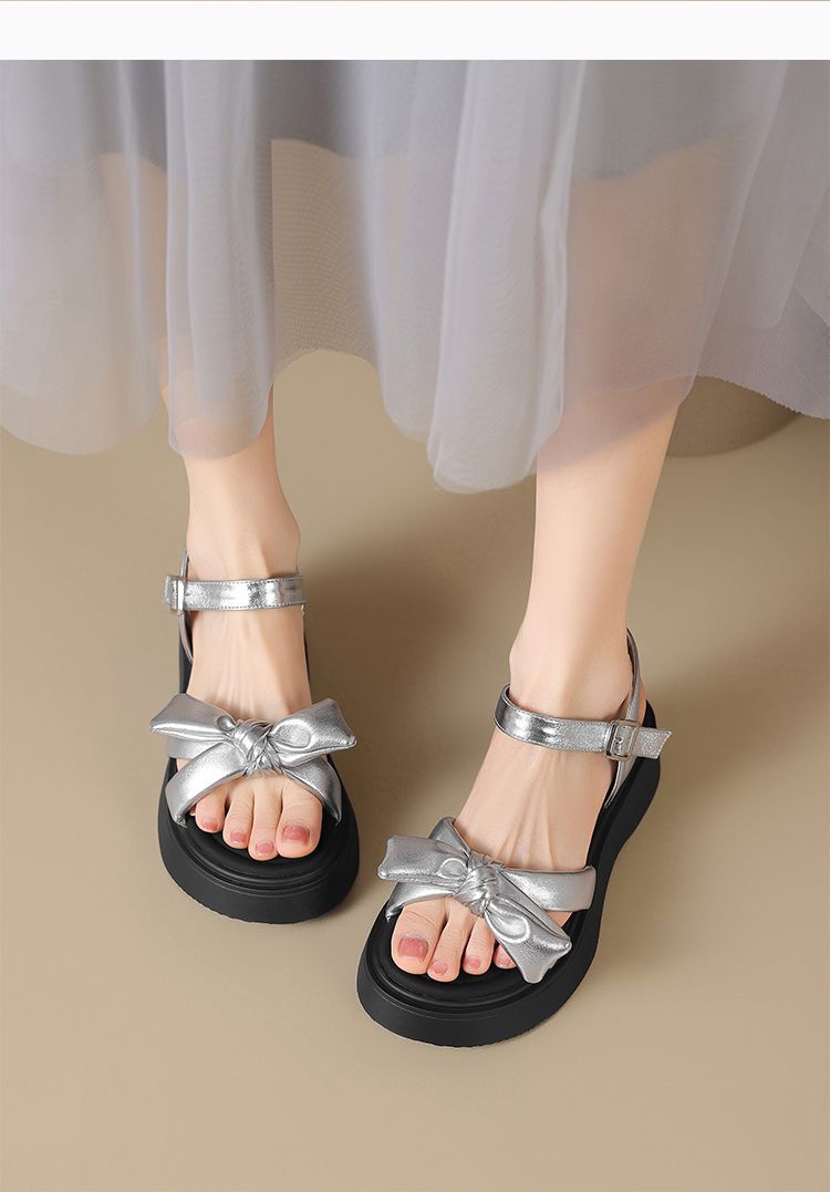 ZHR时尚厚底凉鞋2025夏季新款百搭一字女鞋小众ins蝴蝶结增高凉鞋