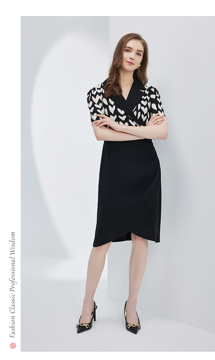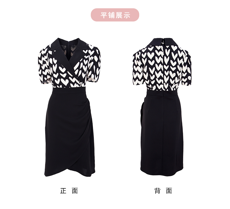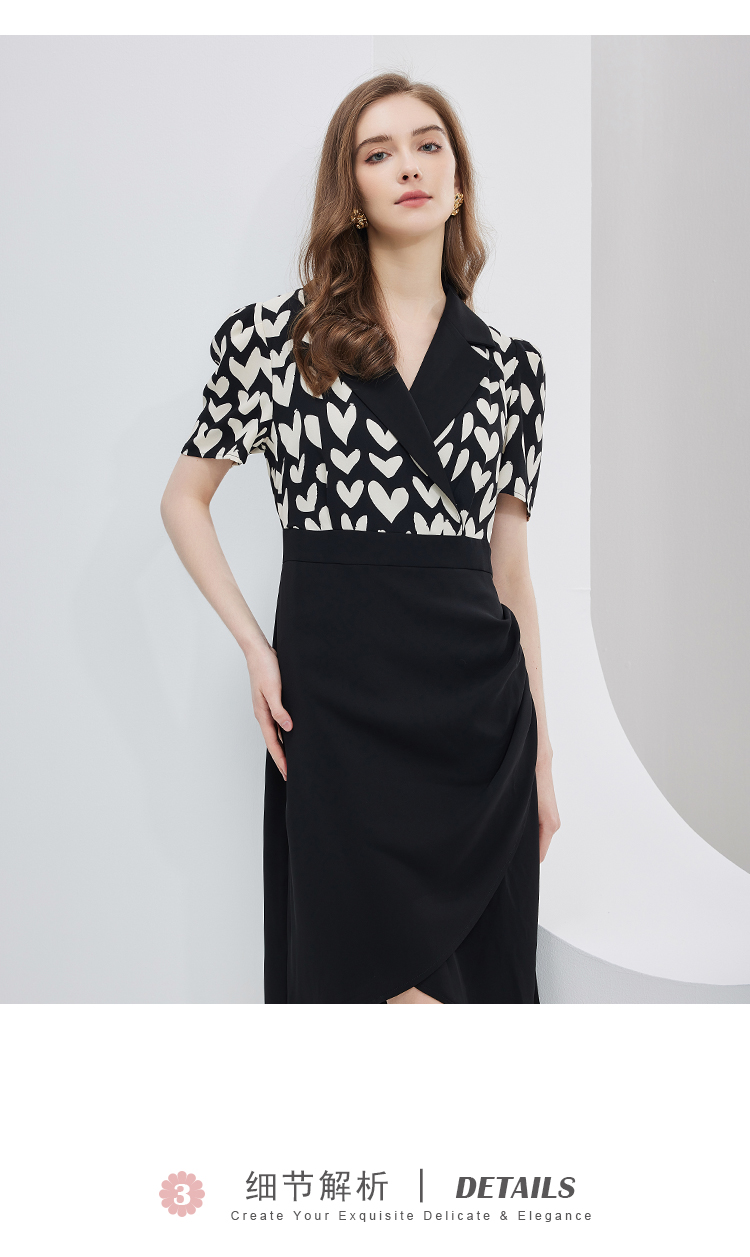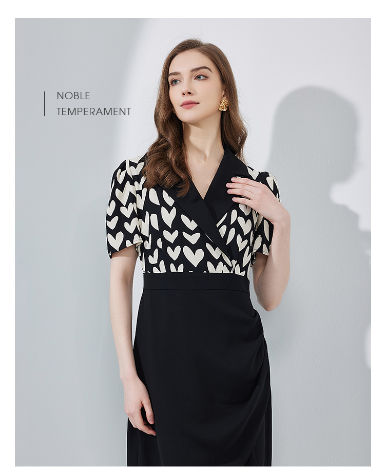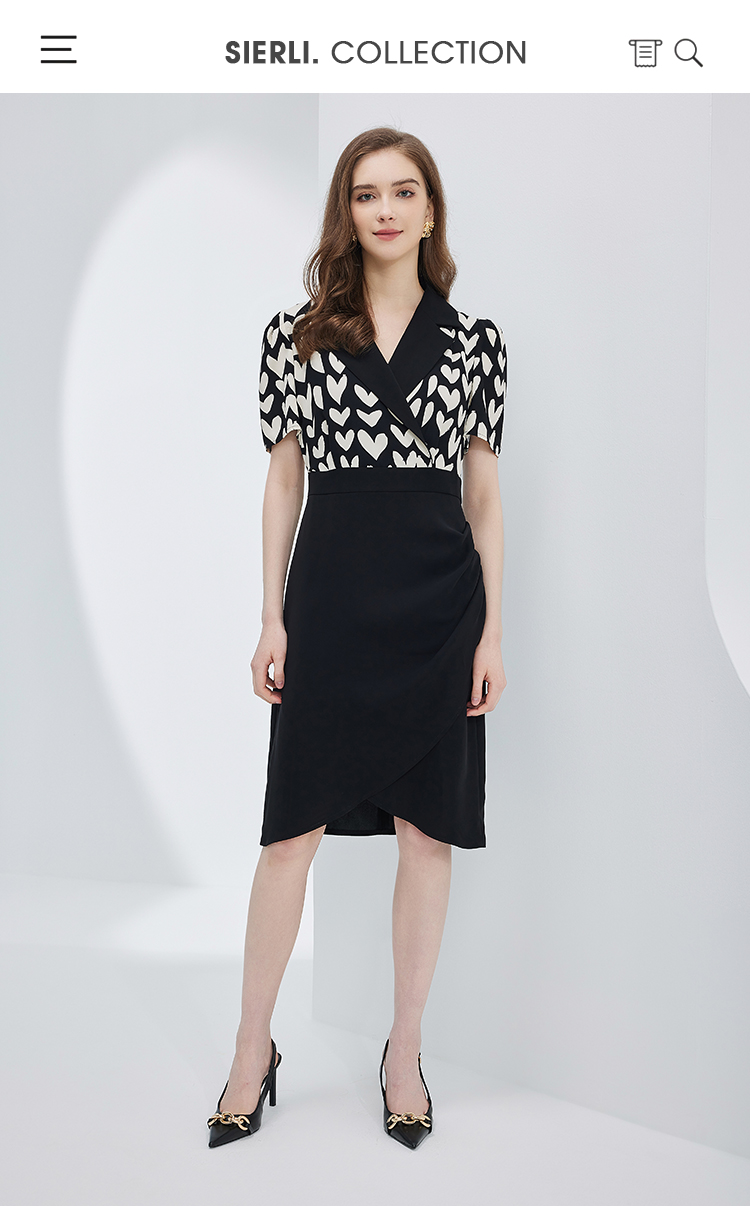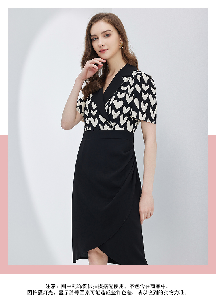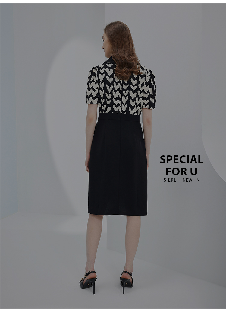 NF8X5斯尔丽瑟俪2023新款收腰褶皱显瘦撞色拼接连衣裙