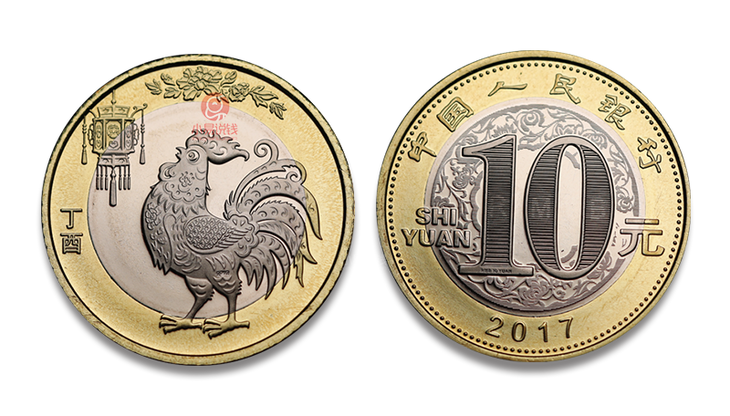 2017年鸡年生肖纪念币,发行量5亿。
