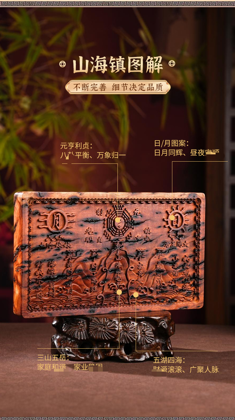 国风雷击木山海镇摆件精雕家居装饰必备中式摆件