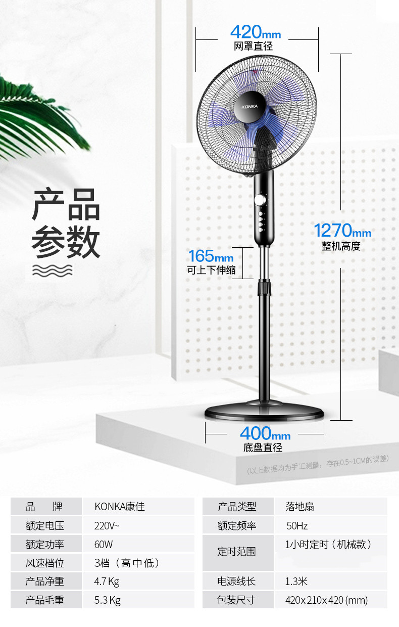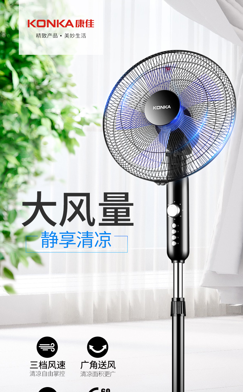 【预售-4月15日配送】NKA康佳落地扇(黑色)/1件