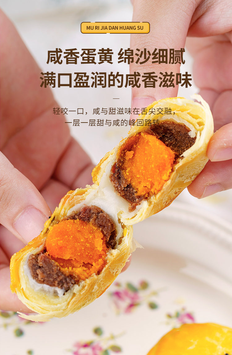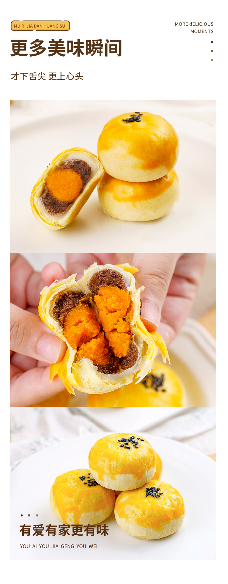 【暮日家蛋黄酥】30天保质期,45克/枚,6枚/件(2份起默认合并为12枚/箱或18枚/箱发货)。百万好评,硬核品质,好吃爆了!新鲜做新鲜发,硬核品质,香甜软糯,酥香四溢!