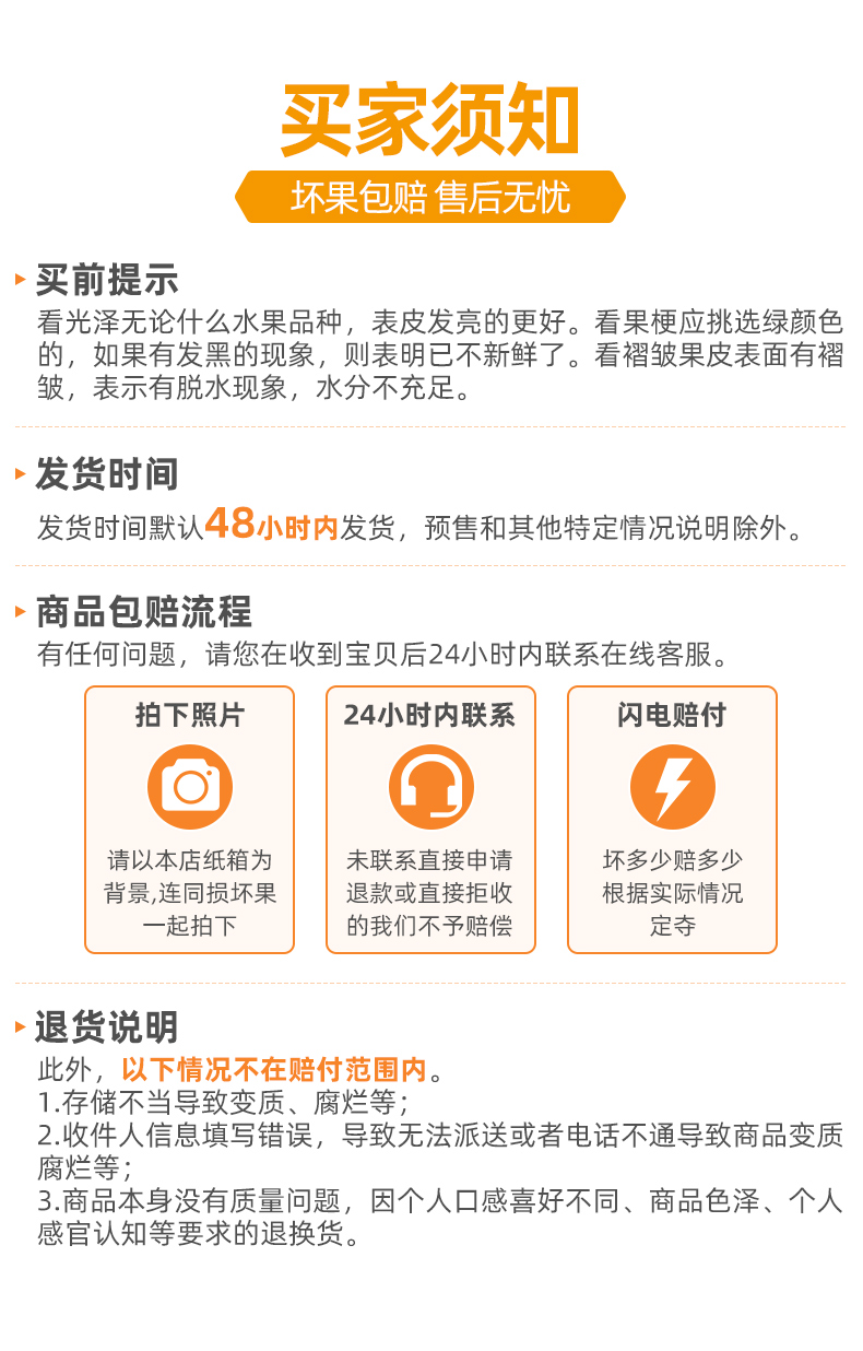 【售后】:生鲜产品不支持退改订单;外包装有破损请拒签;如有售后,请24小时内联系客服处理!