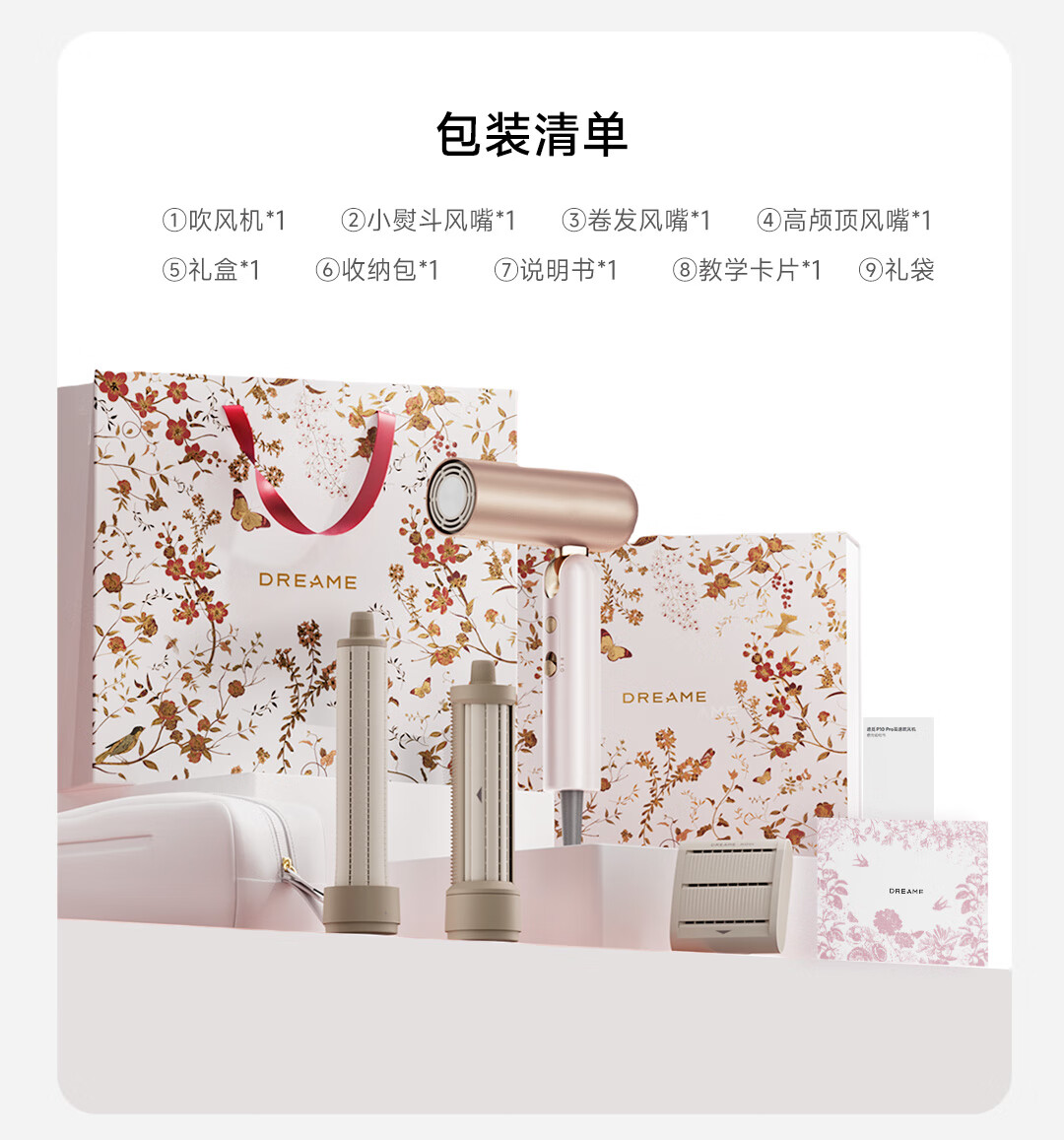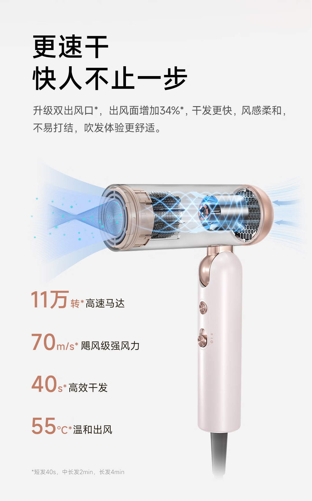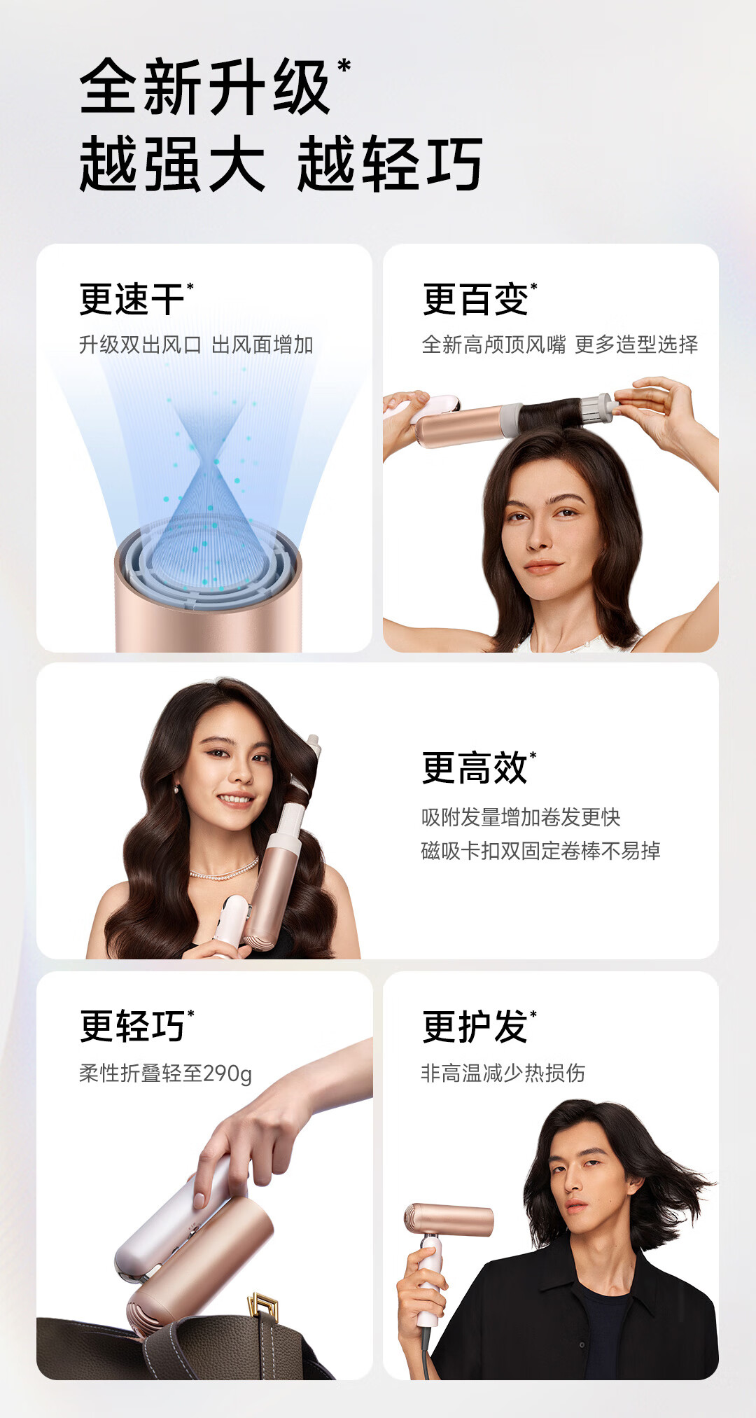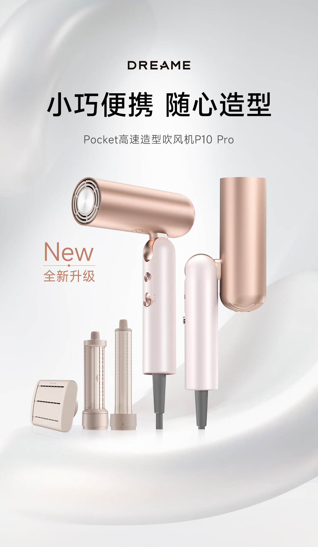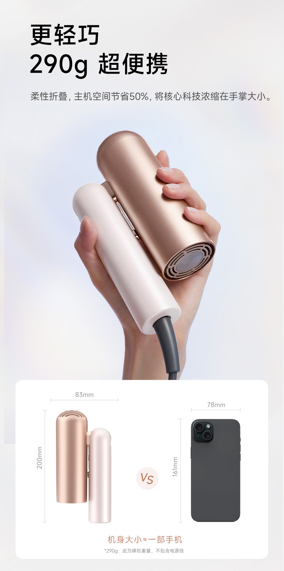 追觅P10_Pro便携折叠迷你高速口袋造型师吹风机负离子护发速干发节日礼物_澳白玫瑰AHD52【新】