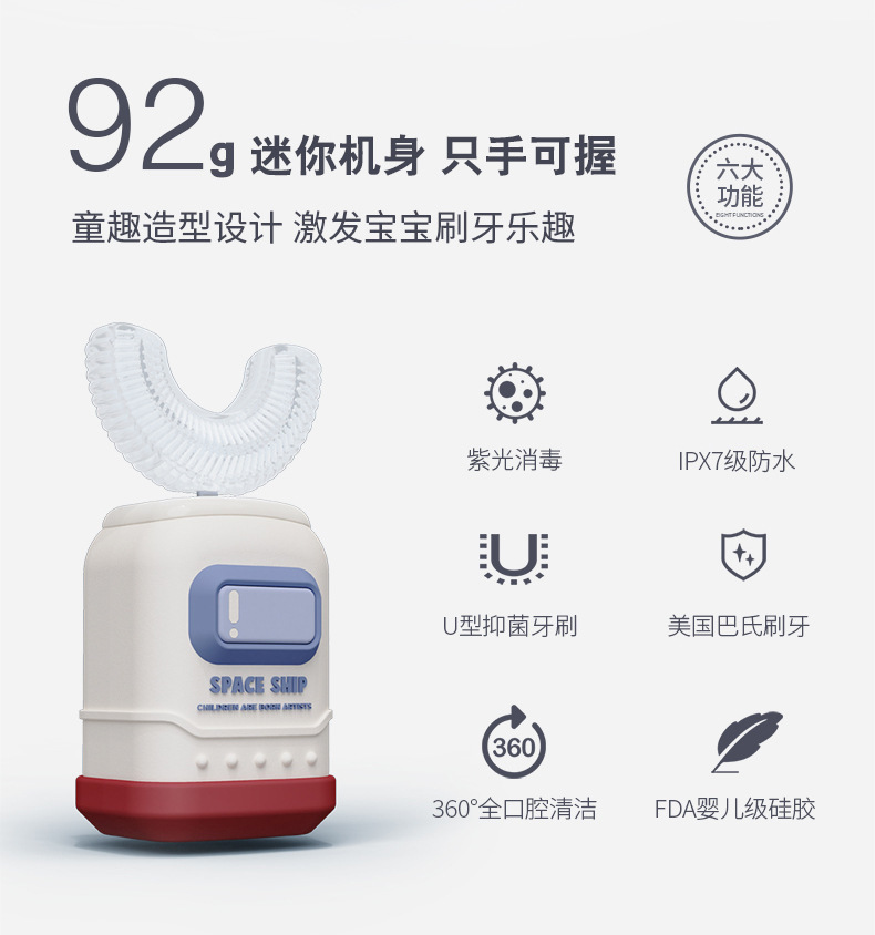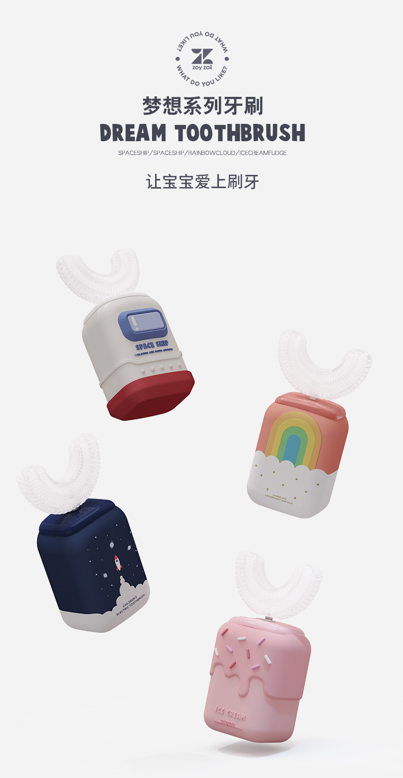zoyzoii儿童电动牙刷U形防水全自动宝宝2-6-12岁小孩u型刷牙神器【zoyzoii】