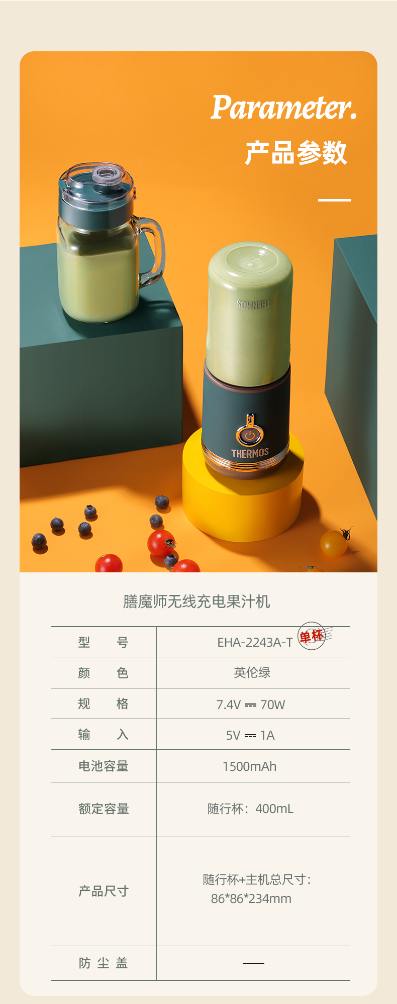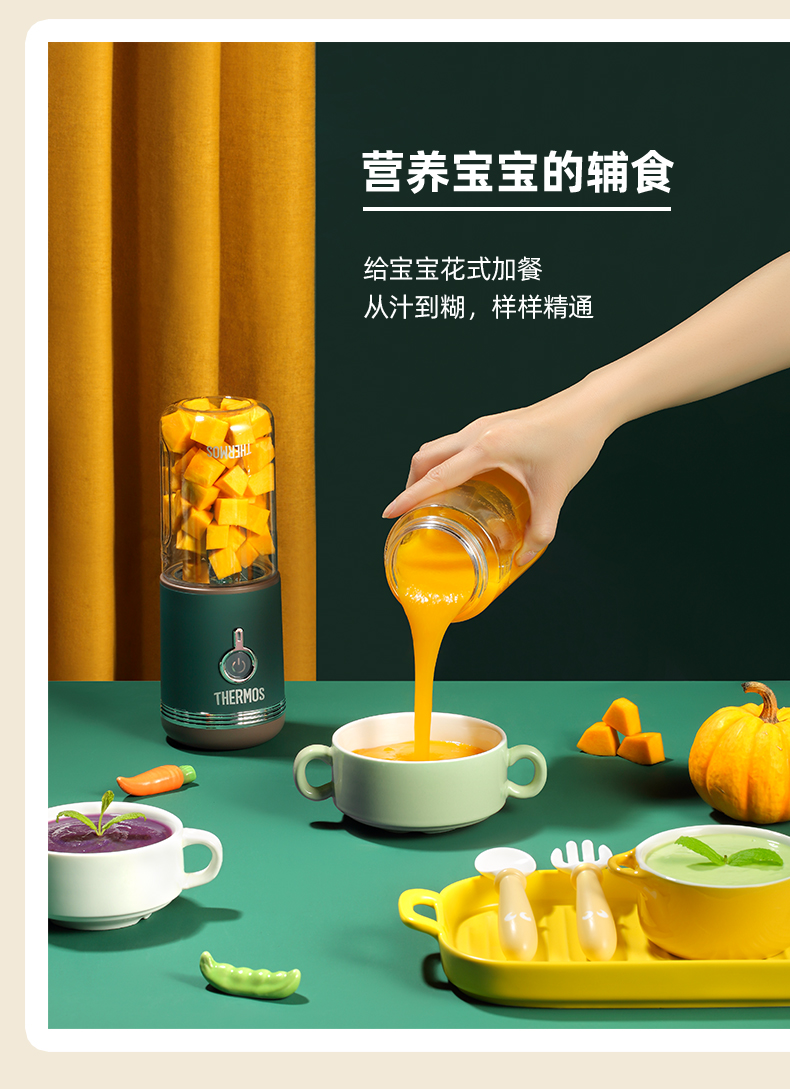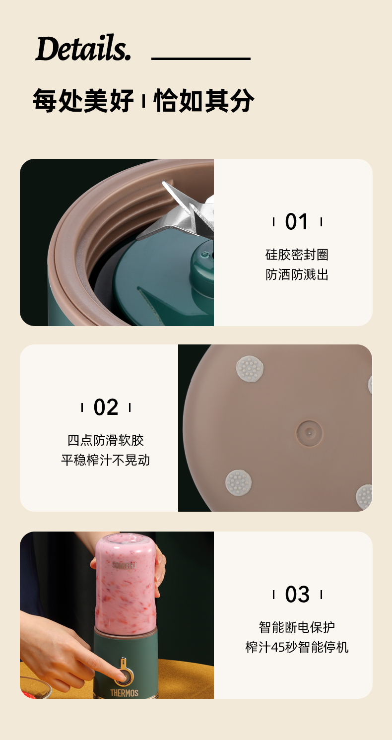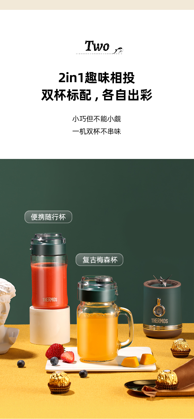 膳魔师榨汁机家用迷你水果果汁机多功能电动无线小型便携式榨汁杯【XPQ】