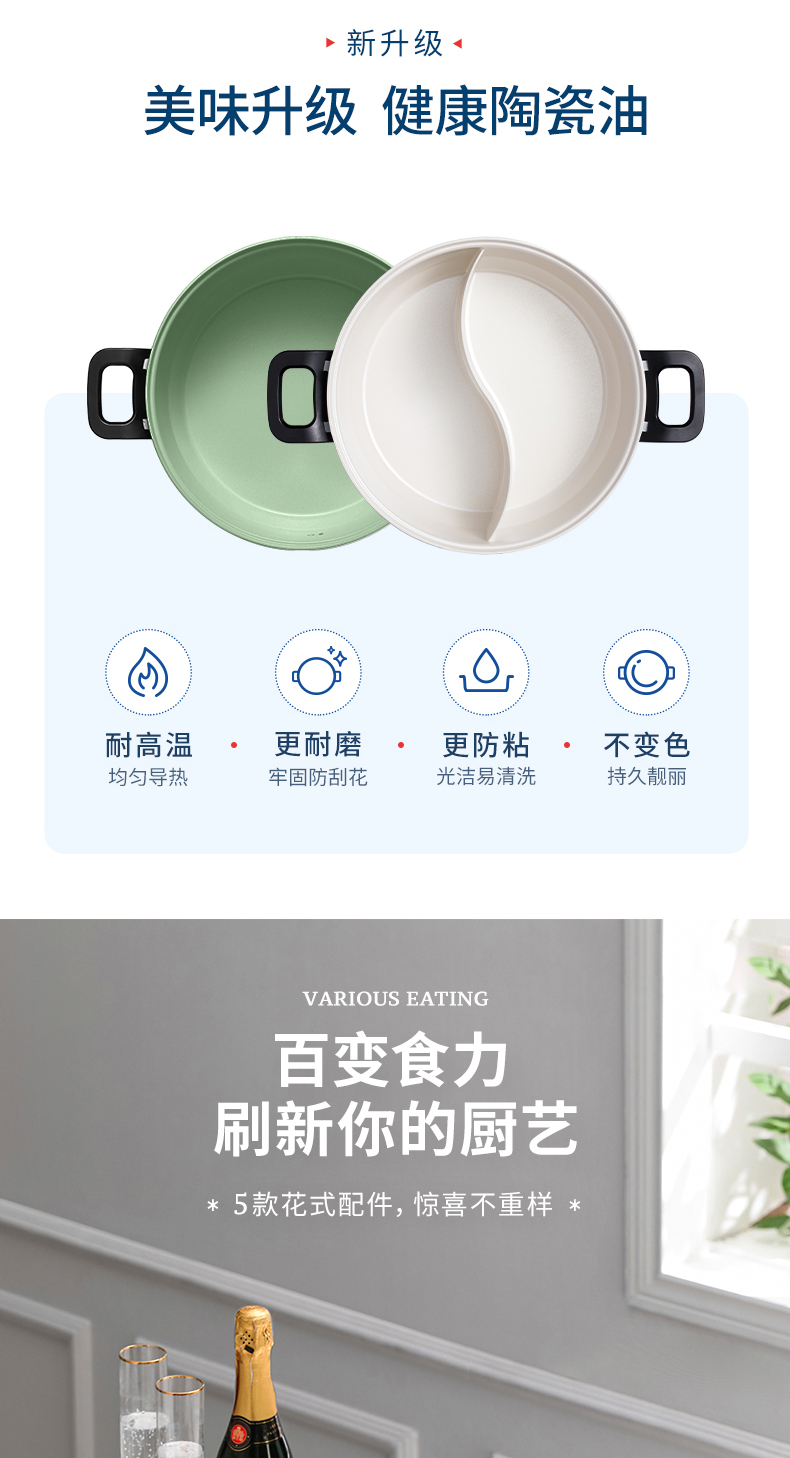 摩飞电热火锅家用分体式鸳鸯火锅MR9087【摩飞系列】