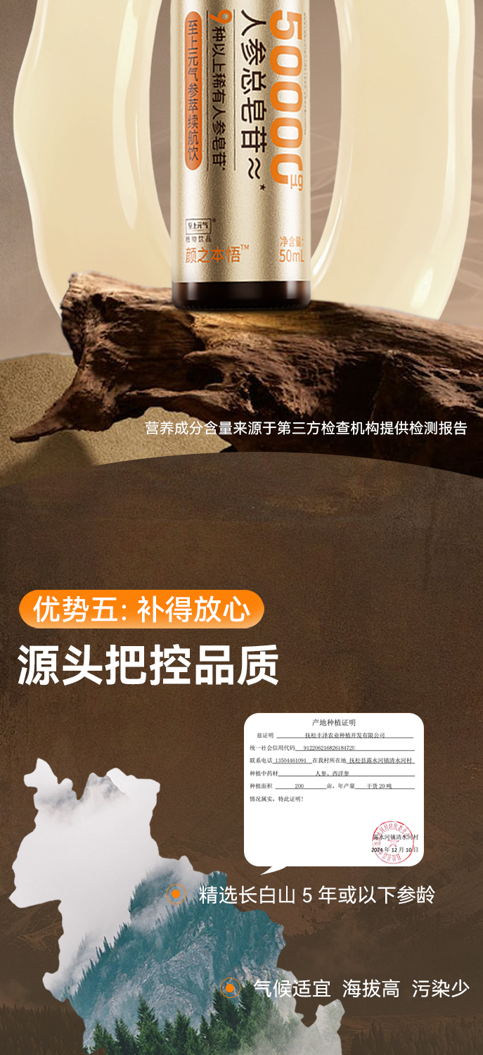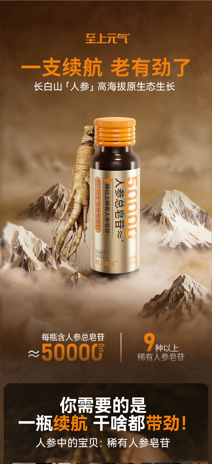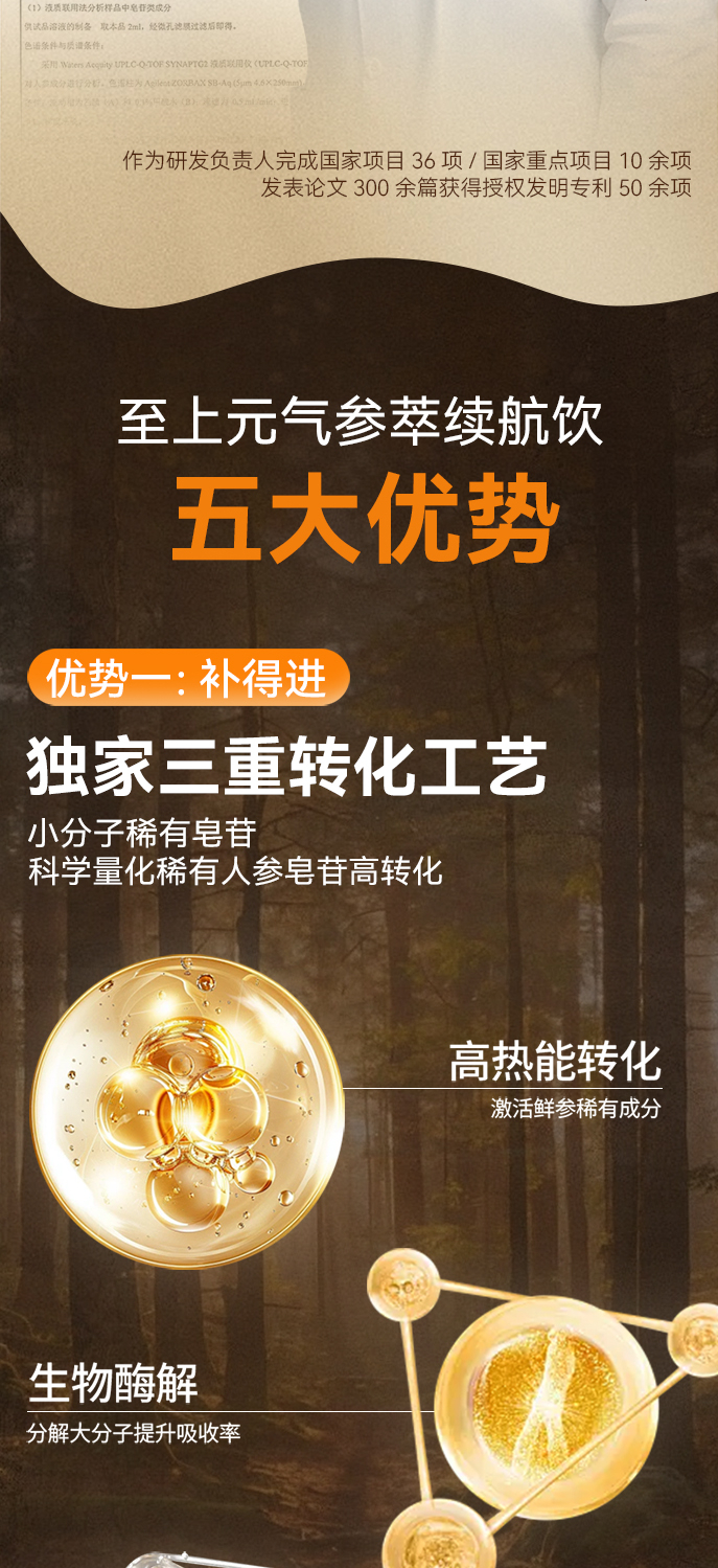 高能量参萃续航饮 源于长白山宋博士研发 温和养颜补元气 适合疲惫劳累上班学生考试 人参饮