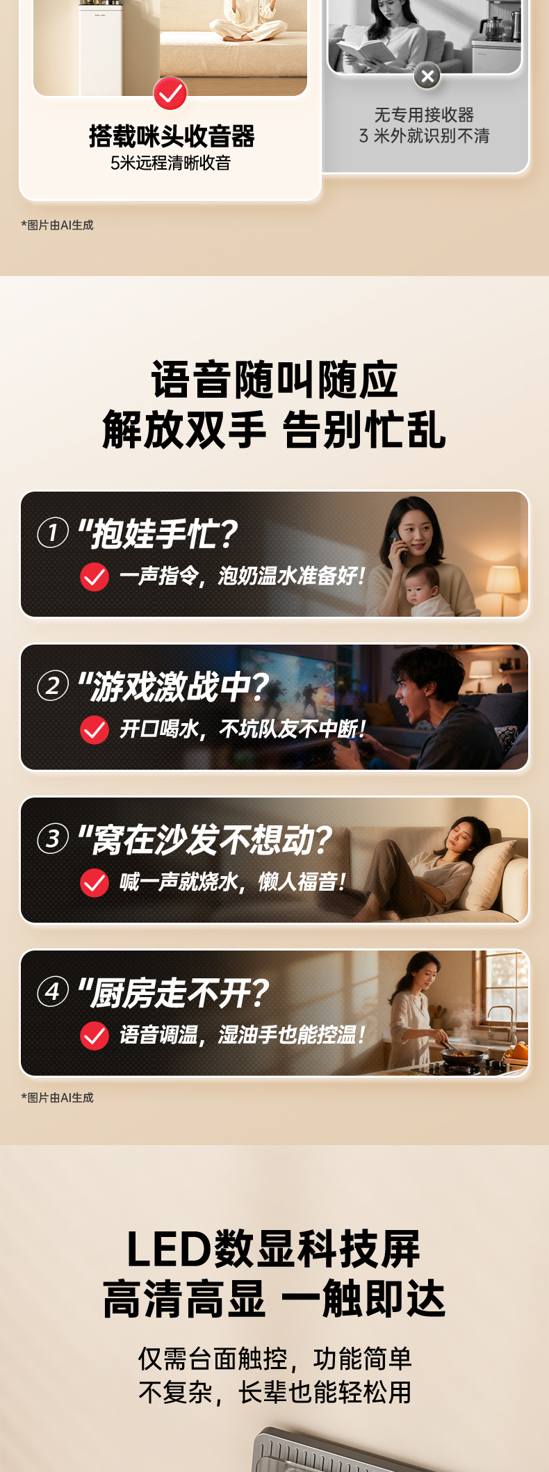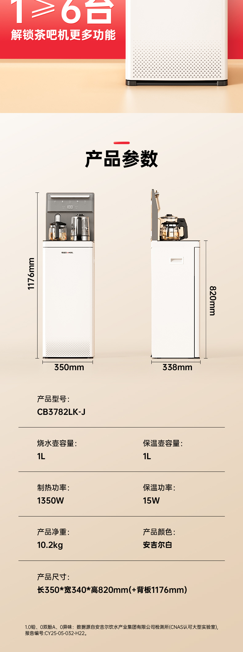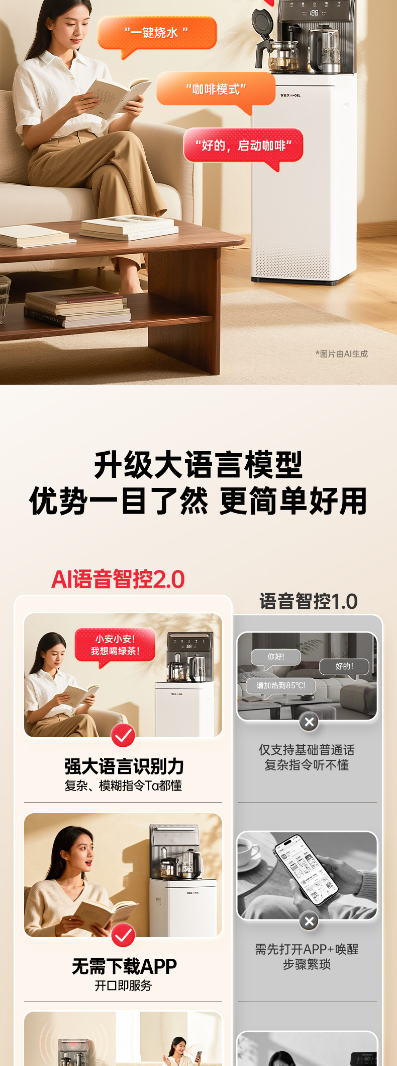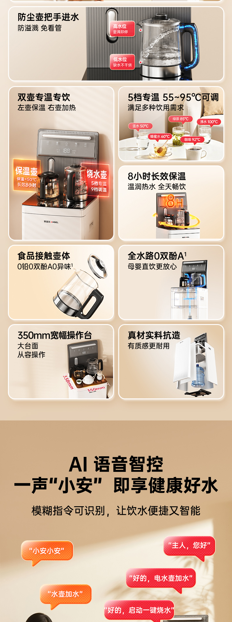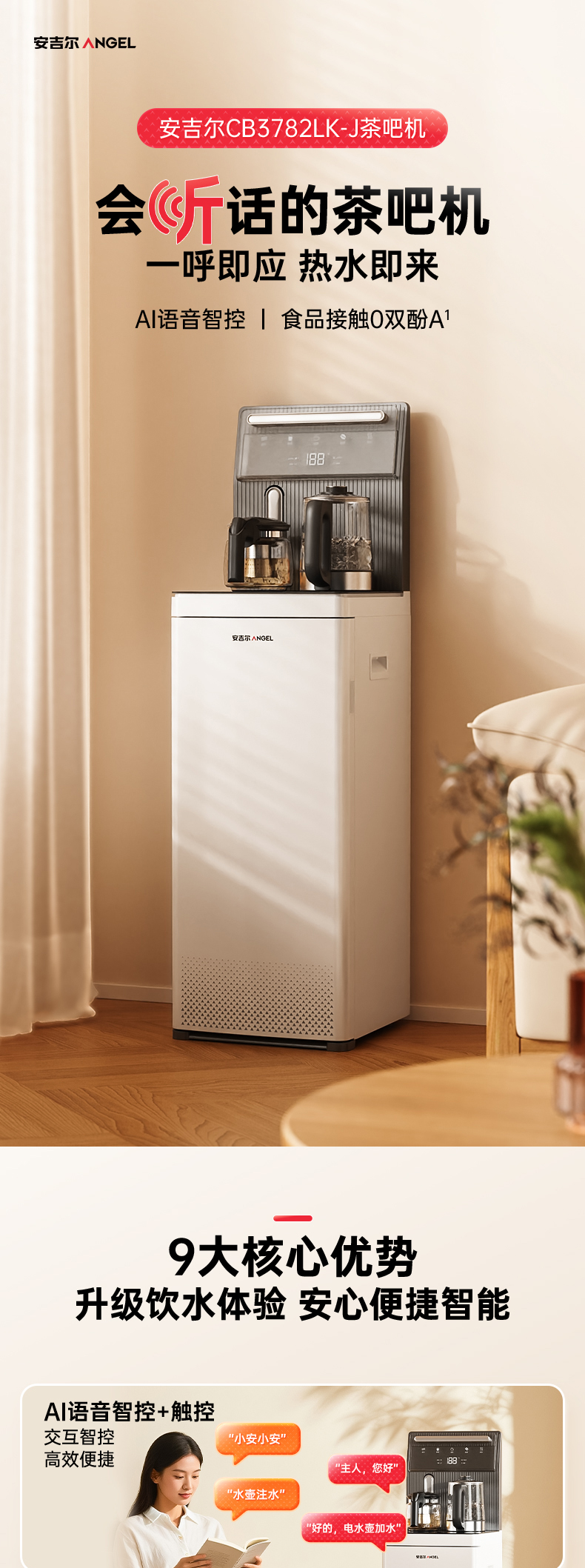 安吉尔7天保鲜茶吧机CB3782LK-J AI语音智控5档专温
