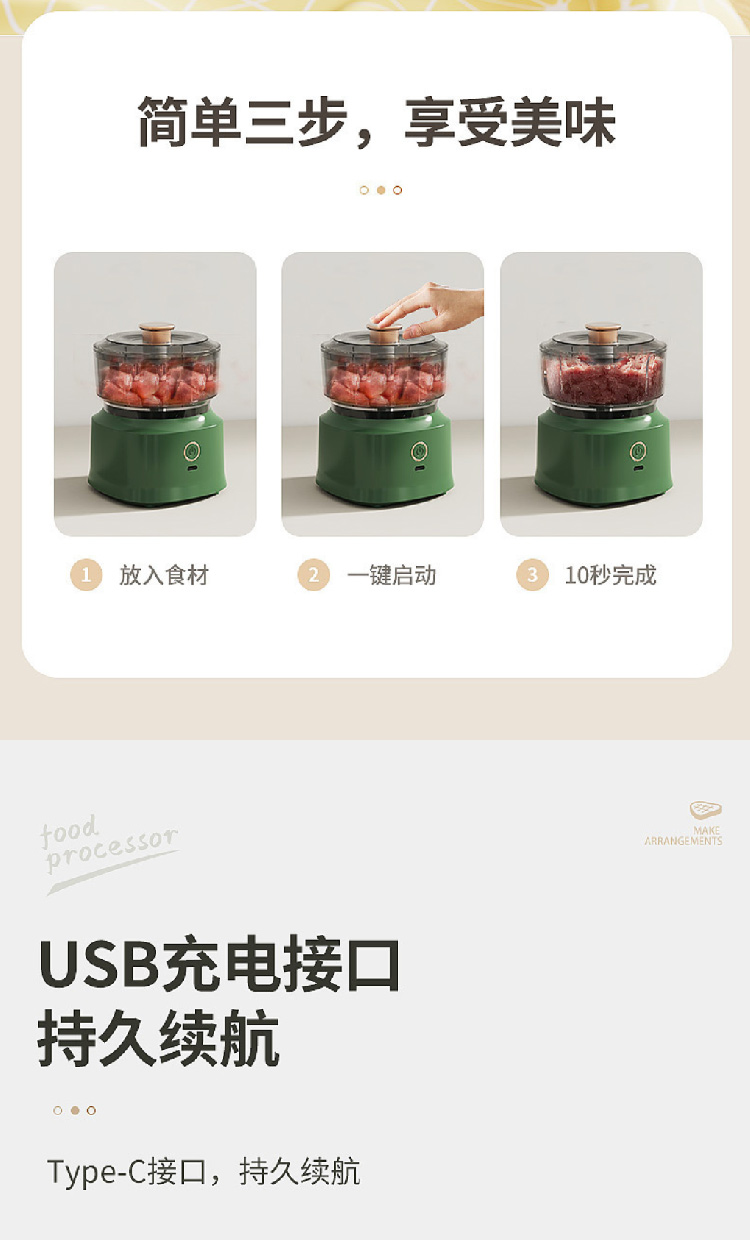 新款厨房多功能料理机无线电动绞肉机家用捣蒜器宝宝辅食机搅蒜器