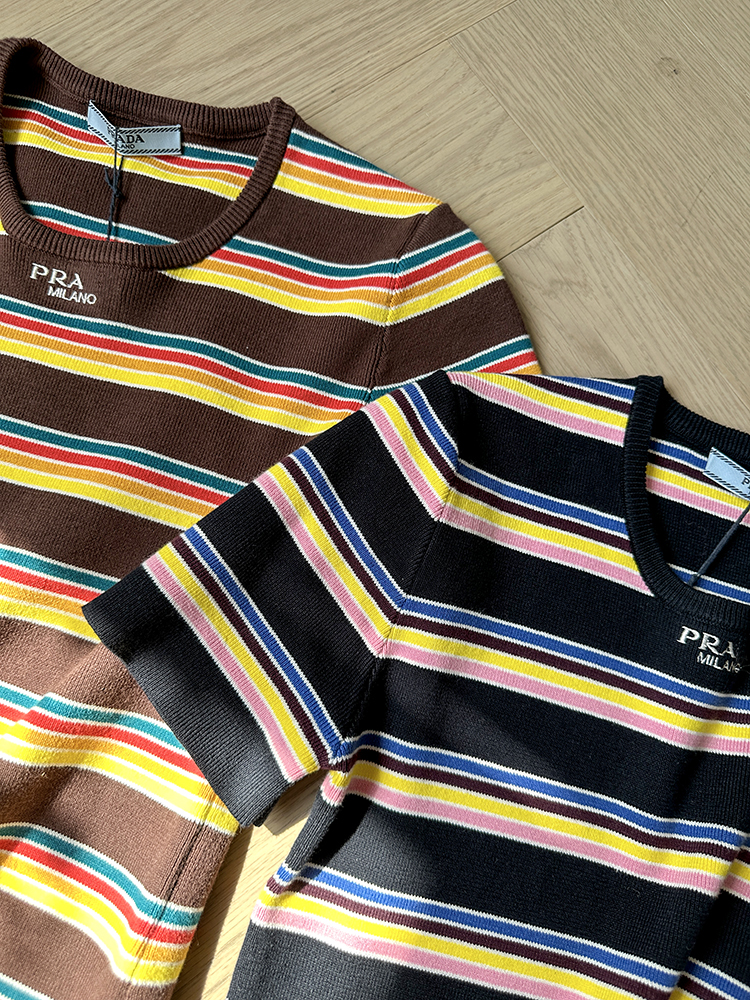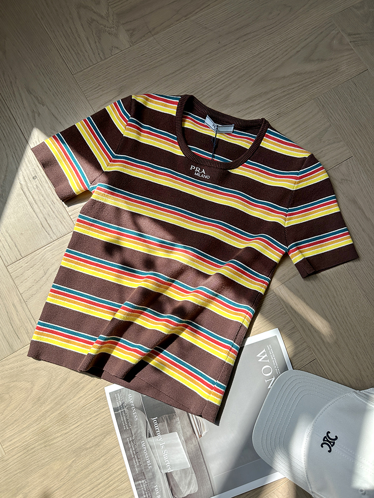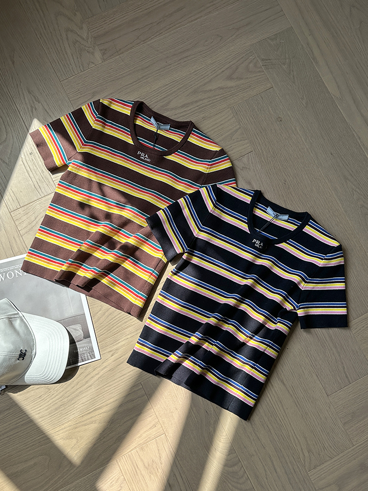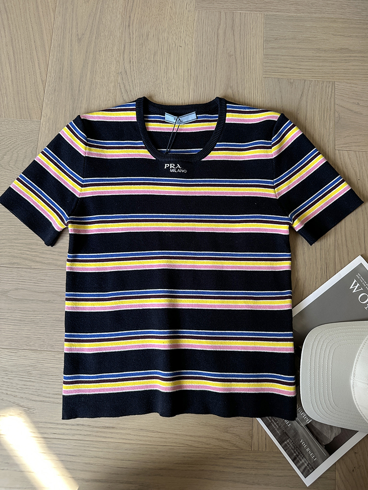 现货 THS-限时 p家 女士棉质针织彩色条纹短袖 圆领针织衫T恤 2色 BH2581 BY603