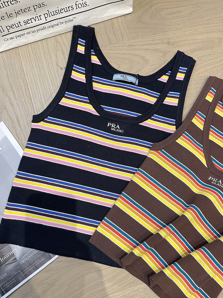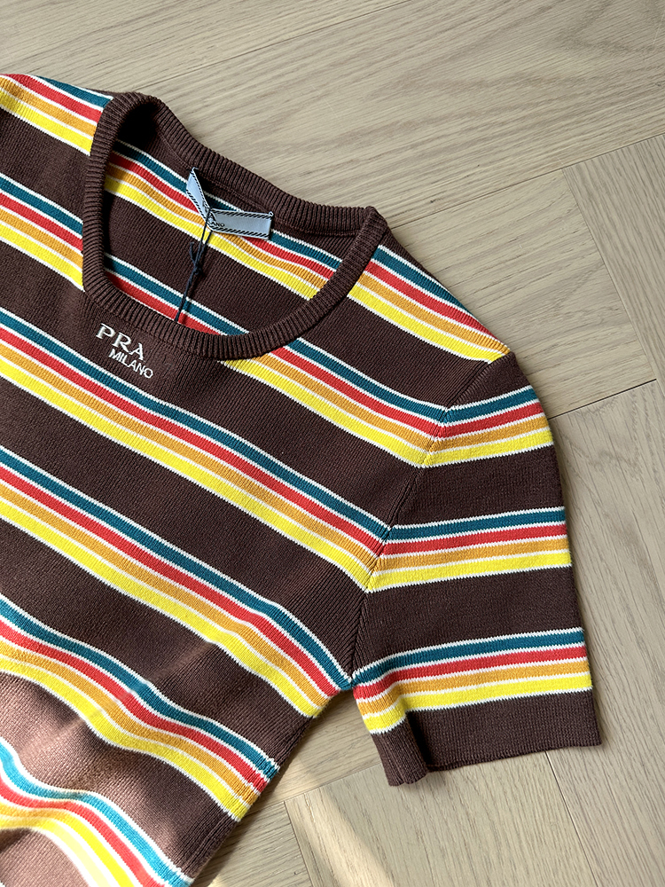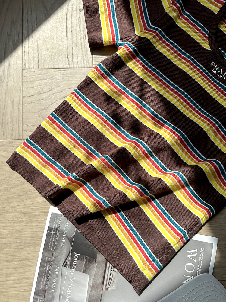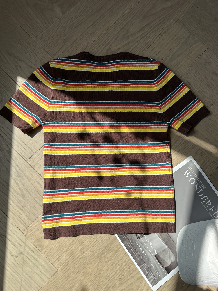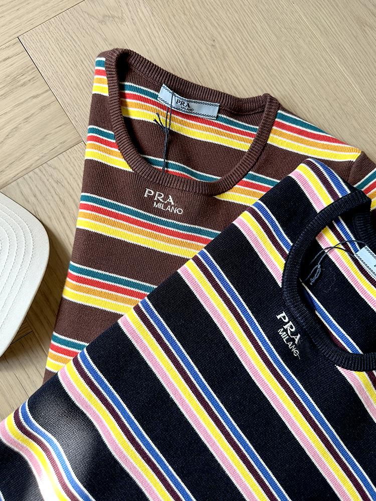 现货 THS-限时 p家 女士棉质针织彩色条纹短袖 圆领针织衫T恤 2色 BH2581 BY603
