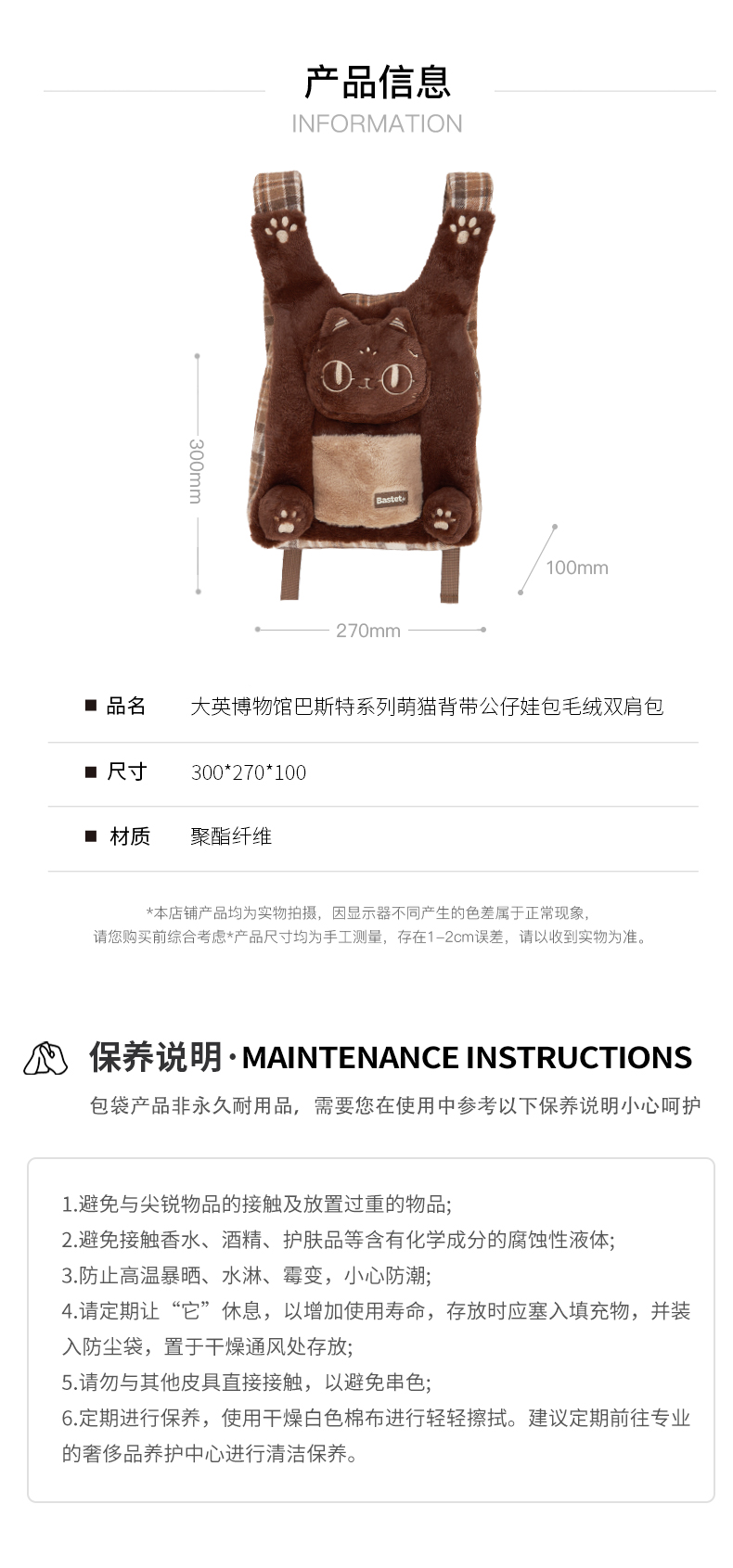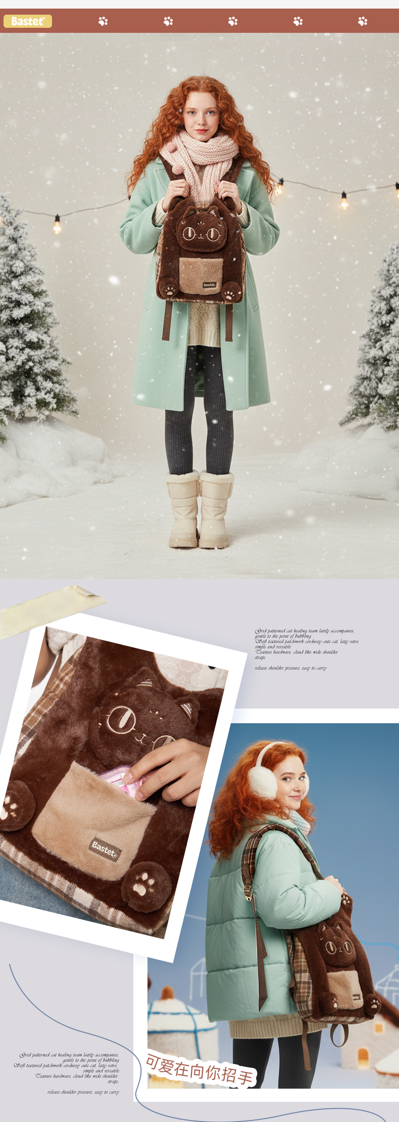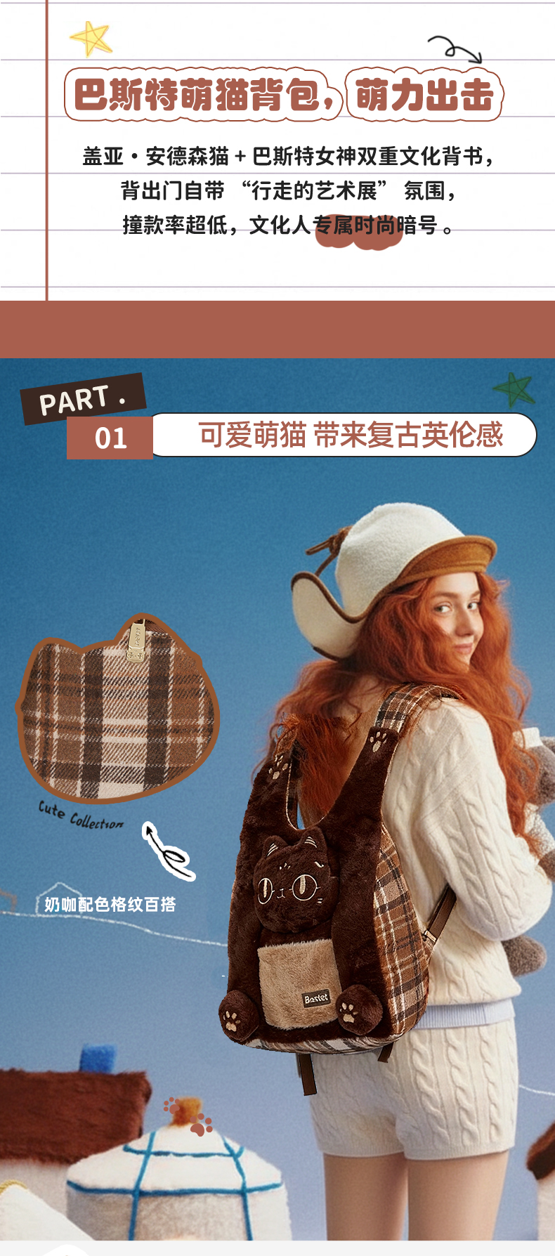 大英博物馆 巴斯特系列 萌猫背带 公仔娃包 毛绒双肩包