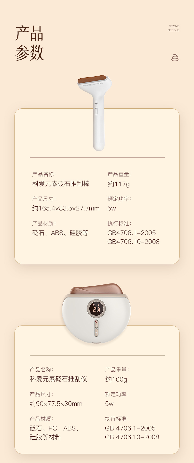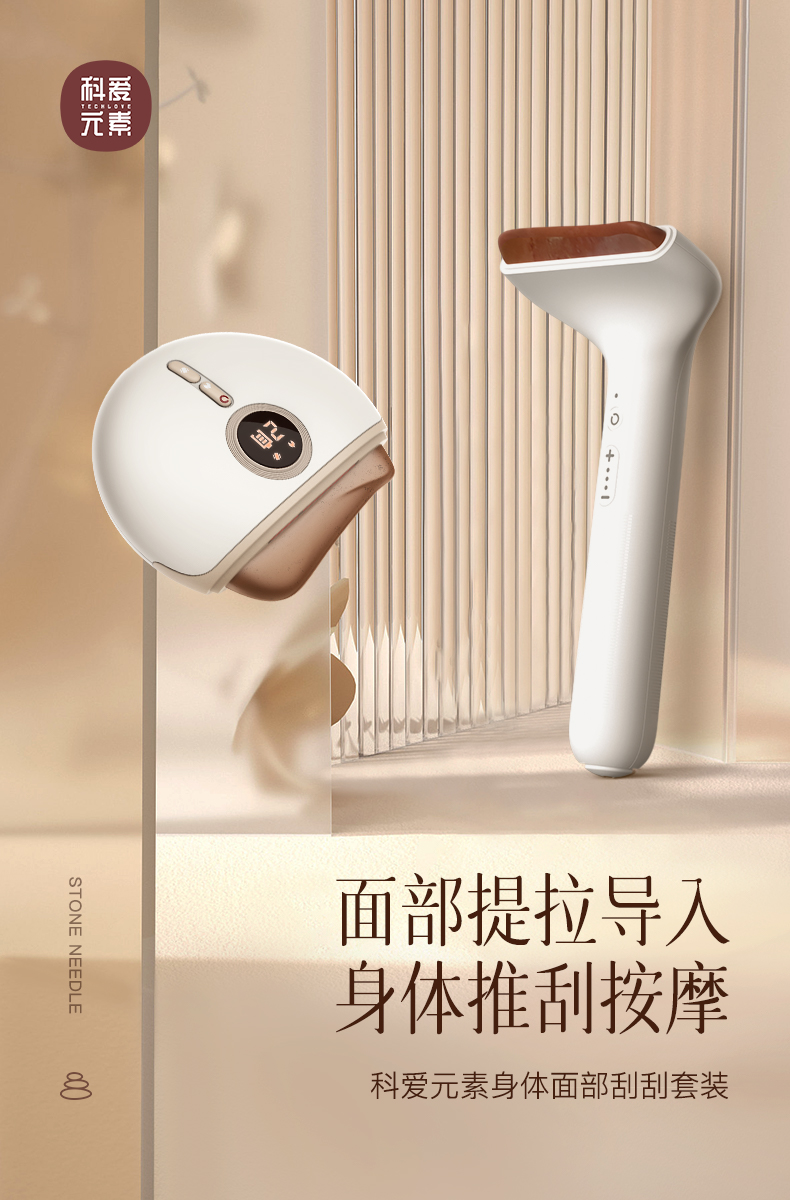 科爱元素轻松刮+小美刮套装 天然红砭石按摩仪套装