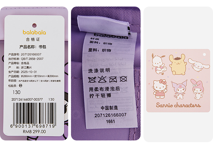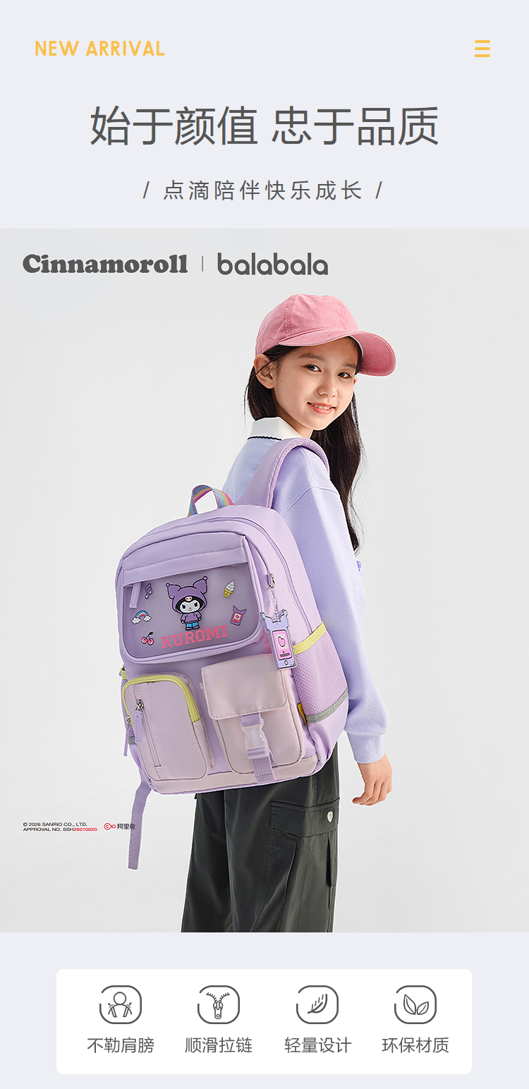 【商场同款三丽鸥IP】巴拉巴拉儿童书包女童2026年新款中大童可爱