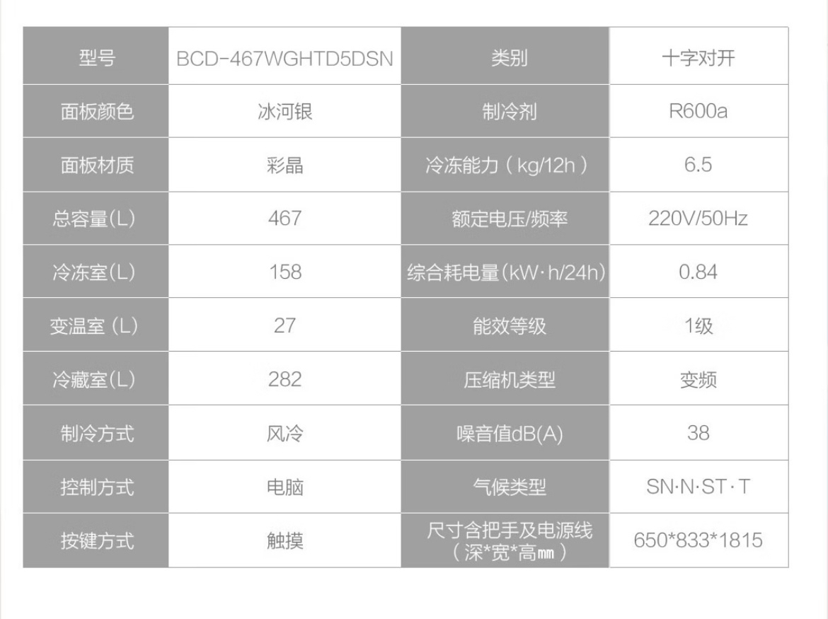 海尔(Haier)冰箱 BCD-467WGHTD5DSN