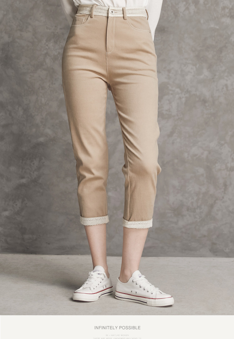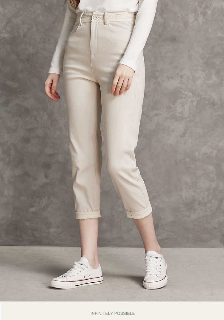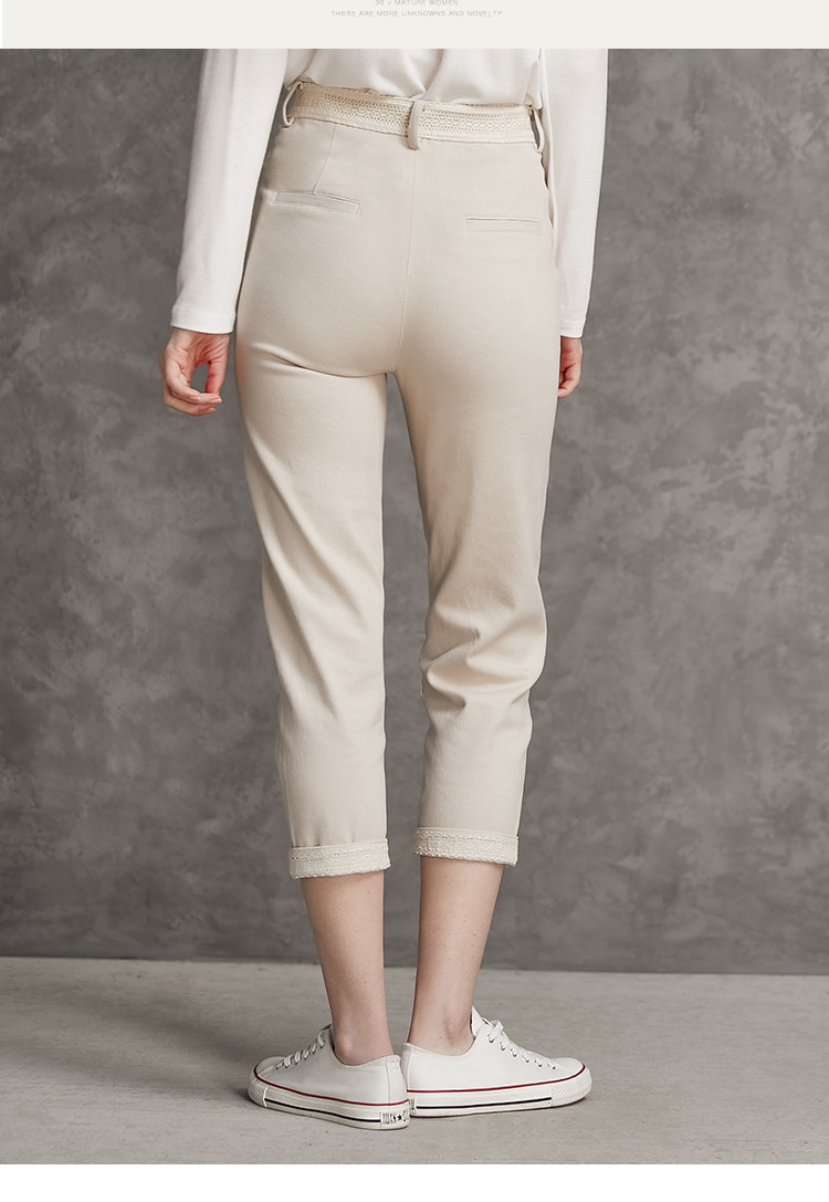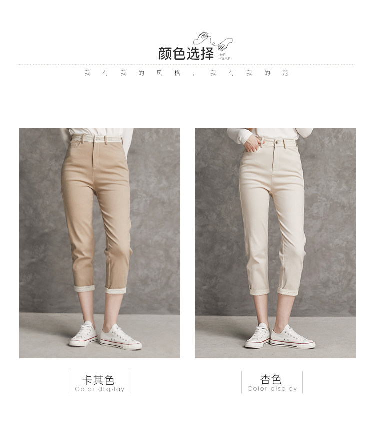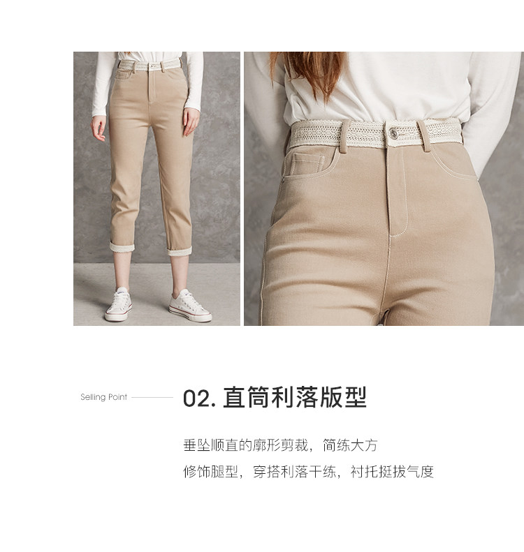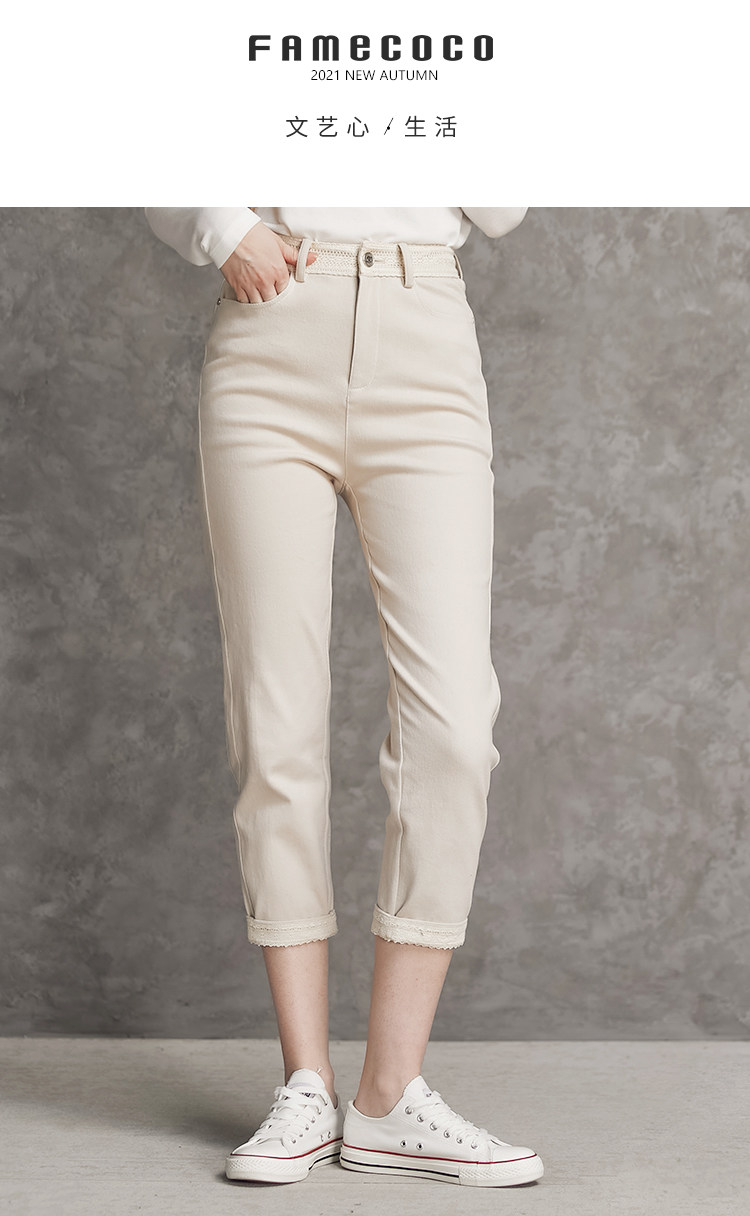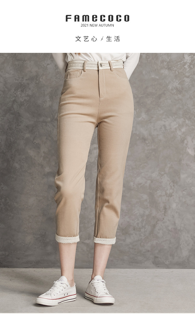 famecoco范可儿纯色高腰休闲裤修身百搭直筒七分裤DAB6GA007