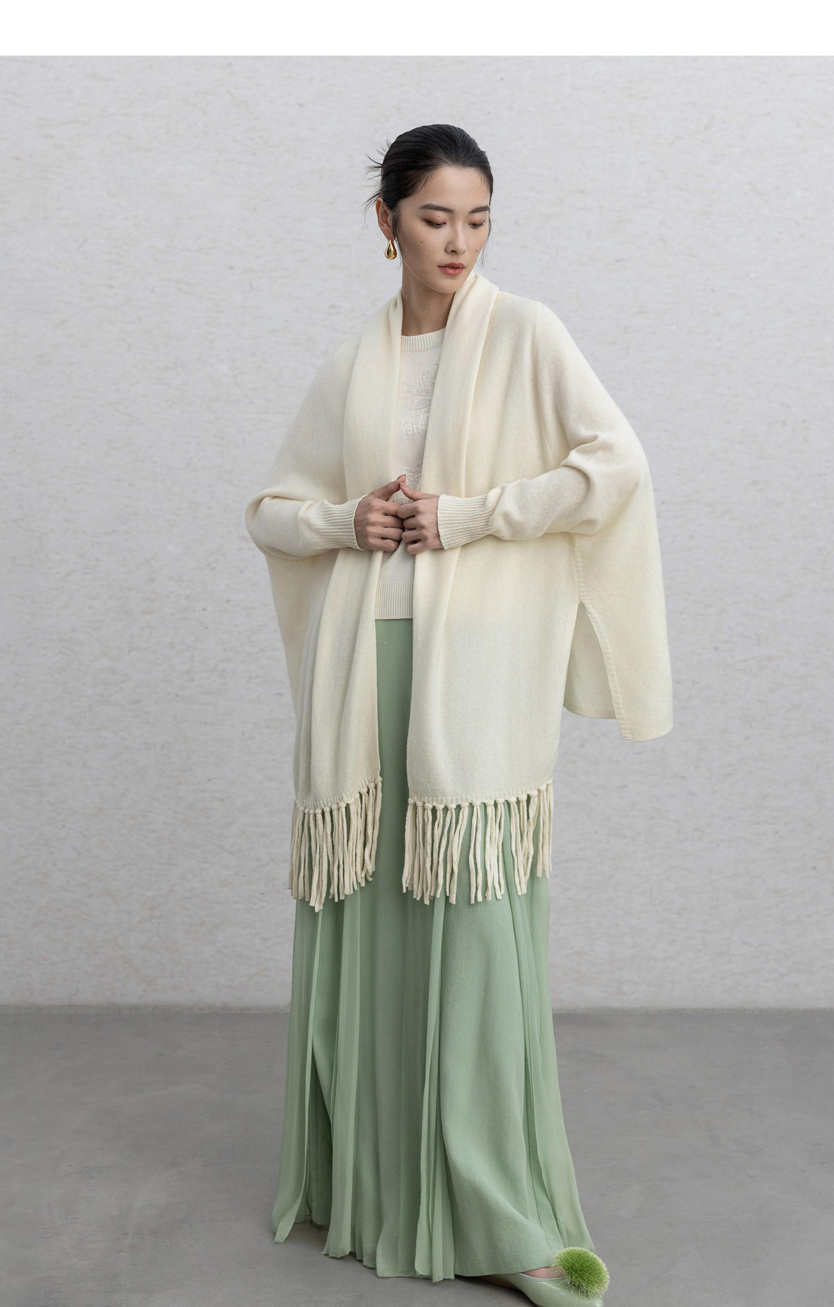 【林栖设计小店】(现货)绵羊毛毛织披肩复古流苏设计2026早春新款多色披肩开衫女G2961317