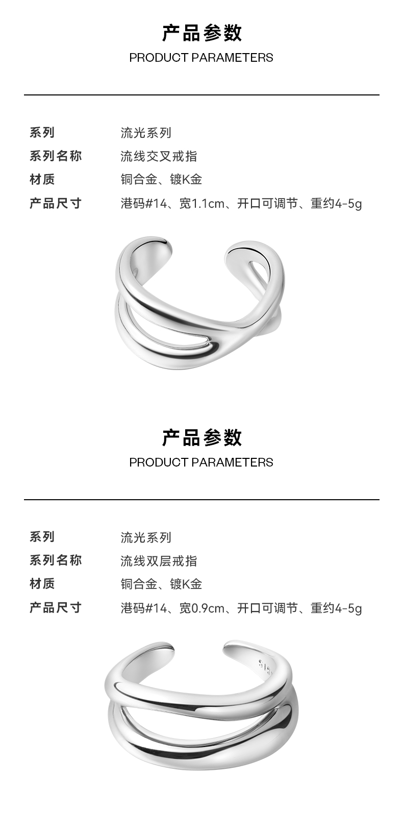 【送礼组合】ARSIS|流光系列 流线双层手镯+戒指