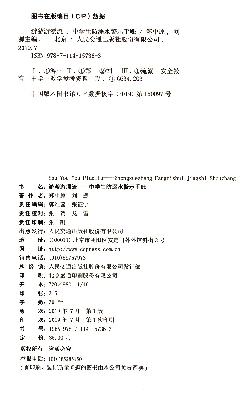 书名:游游游漂流——中学生防溺水警示手账