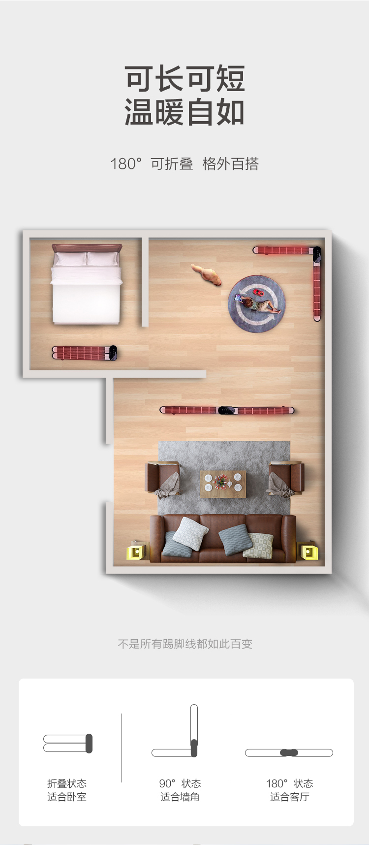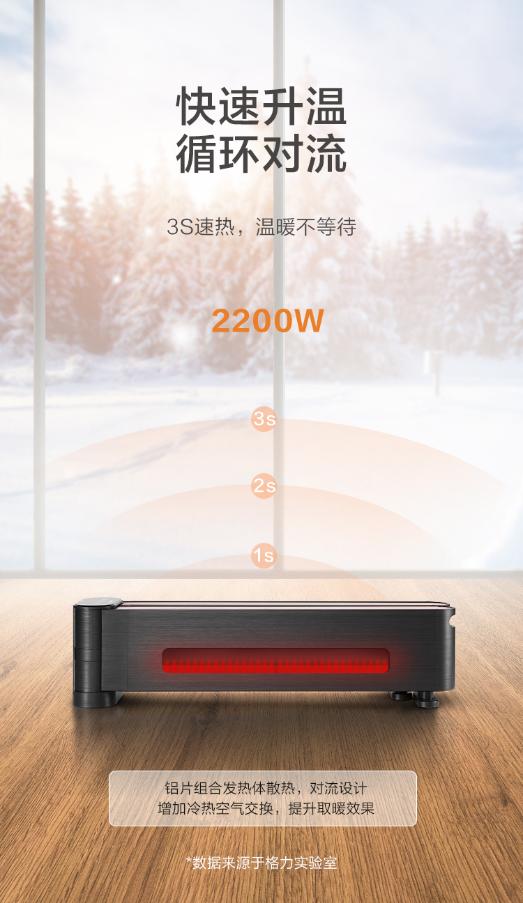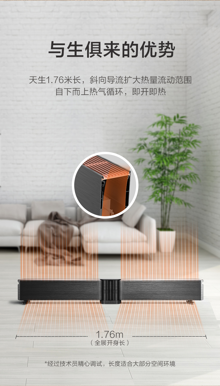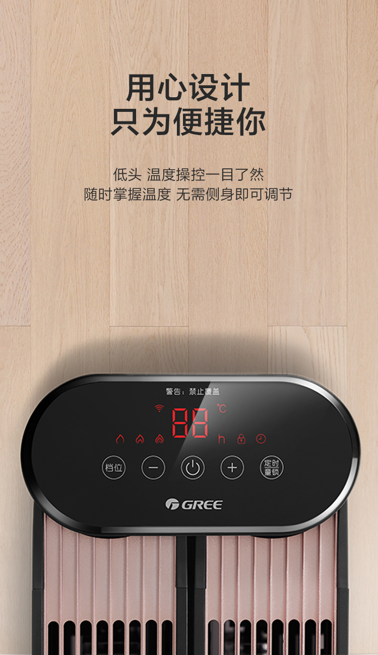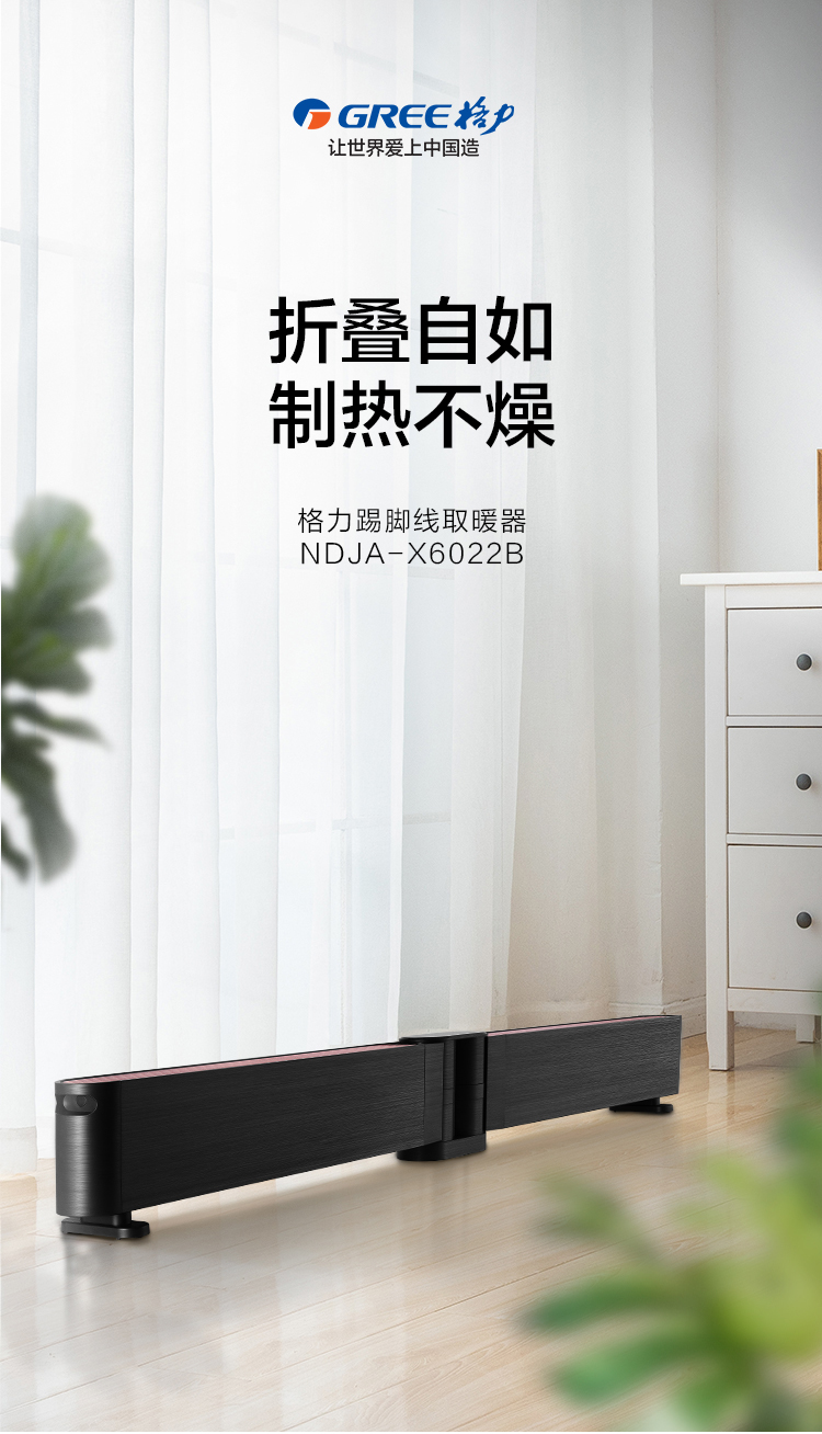 GREE格力 踢脚线 NDJA-X6022B 电暖气 WiFi遥控款 可折叠(黑+玫瑰金)