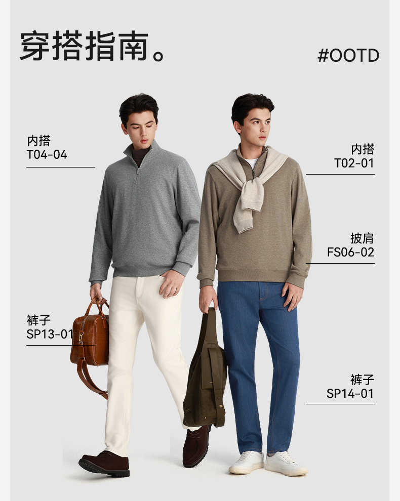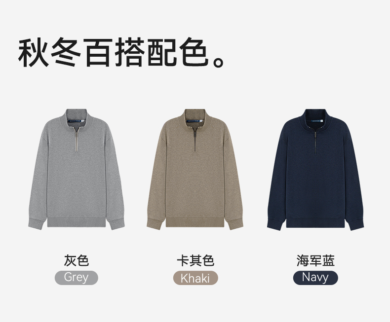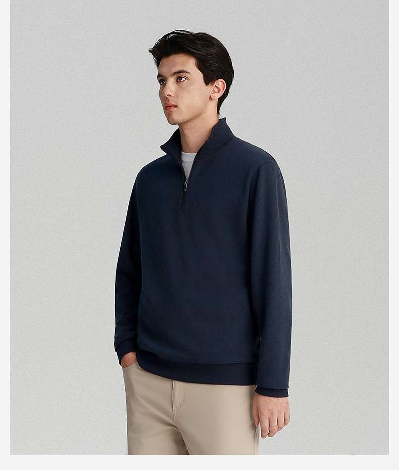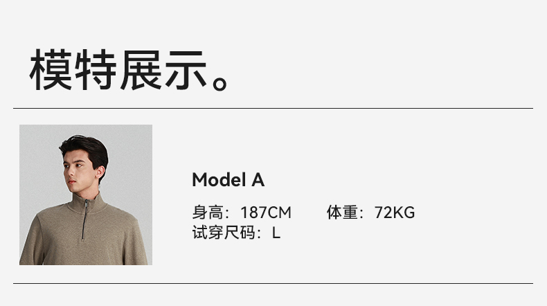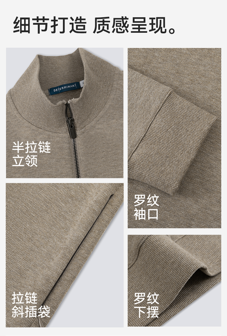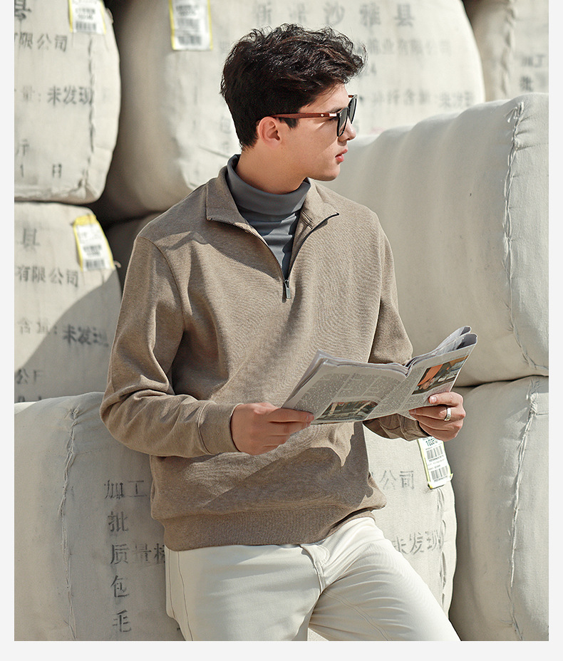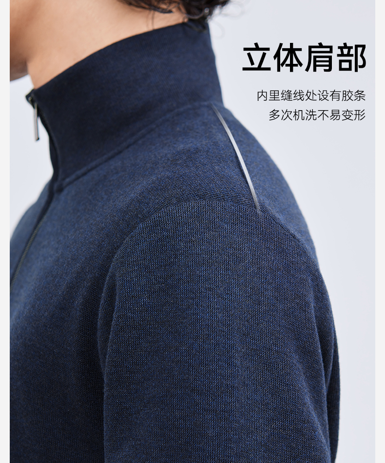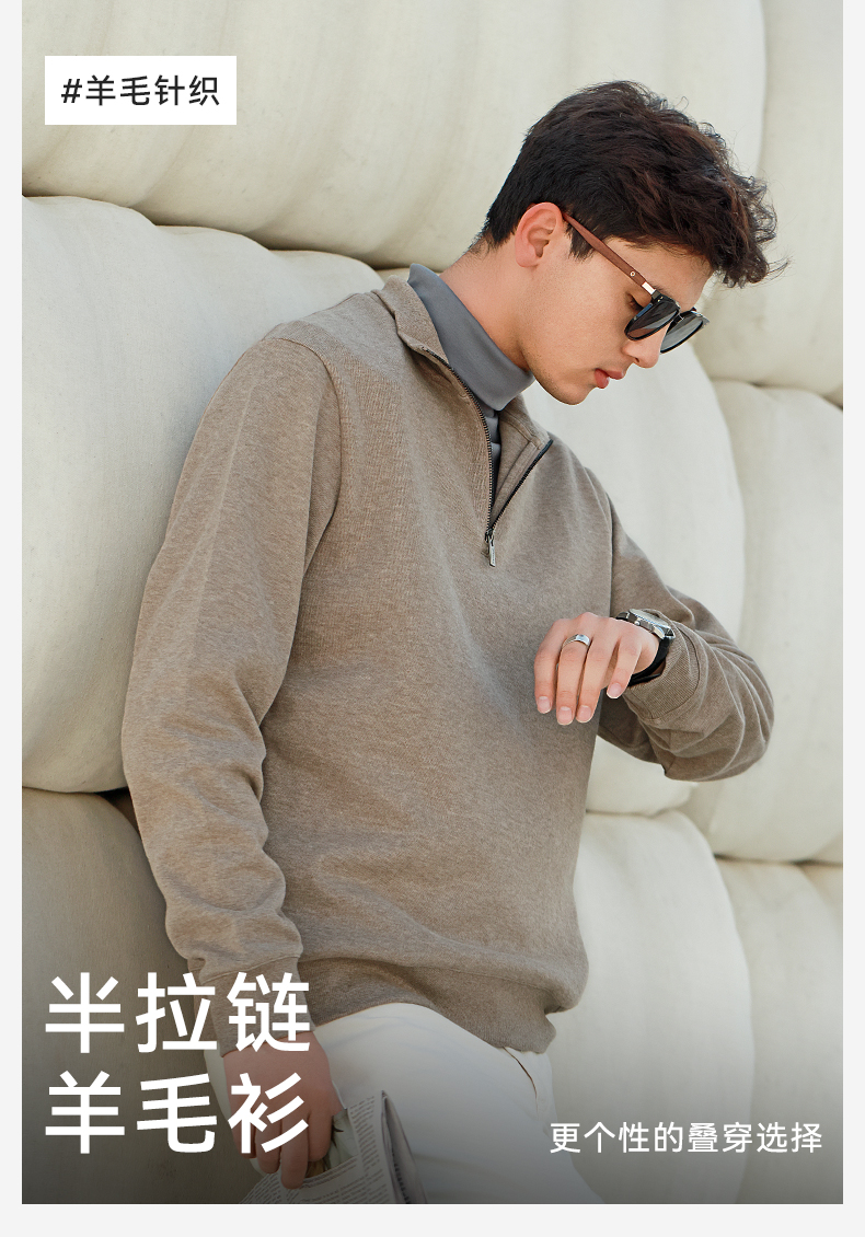 十如仕针织半拉链法式罗纹美利奴羊毛衫FS08