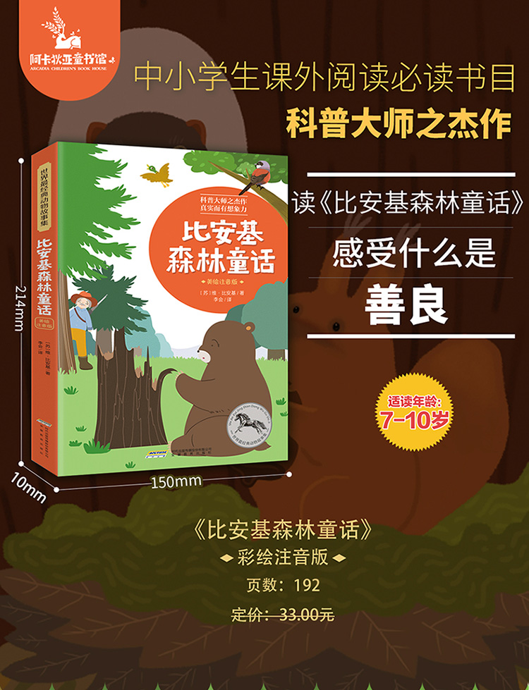 【注音版】比安基森林童话 世界经典动物故事美绘正版书世界名著阅读 7-8-10岁 小学生课外阅读书籍 一二三年级课外书必读经典书目
