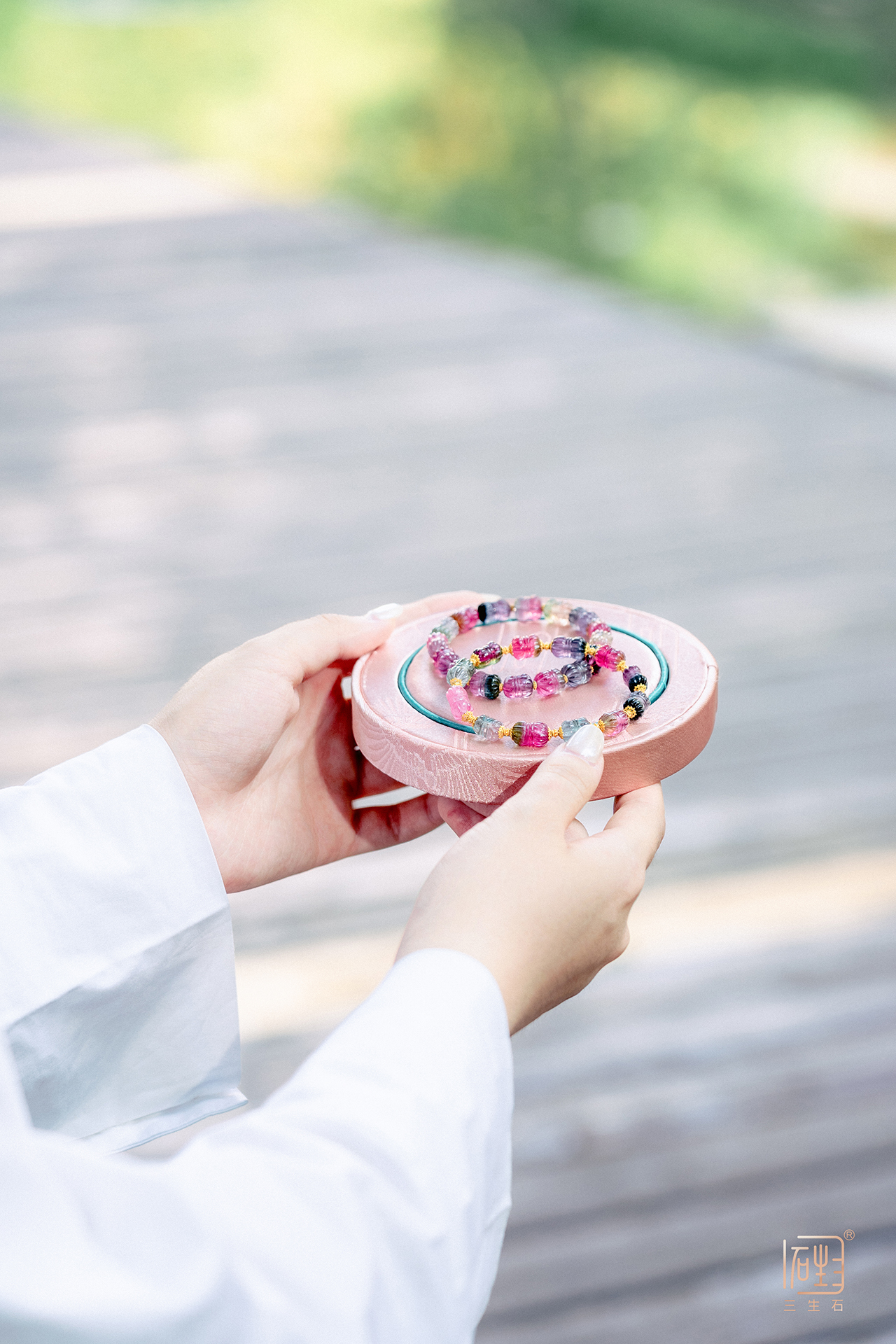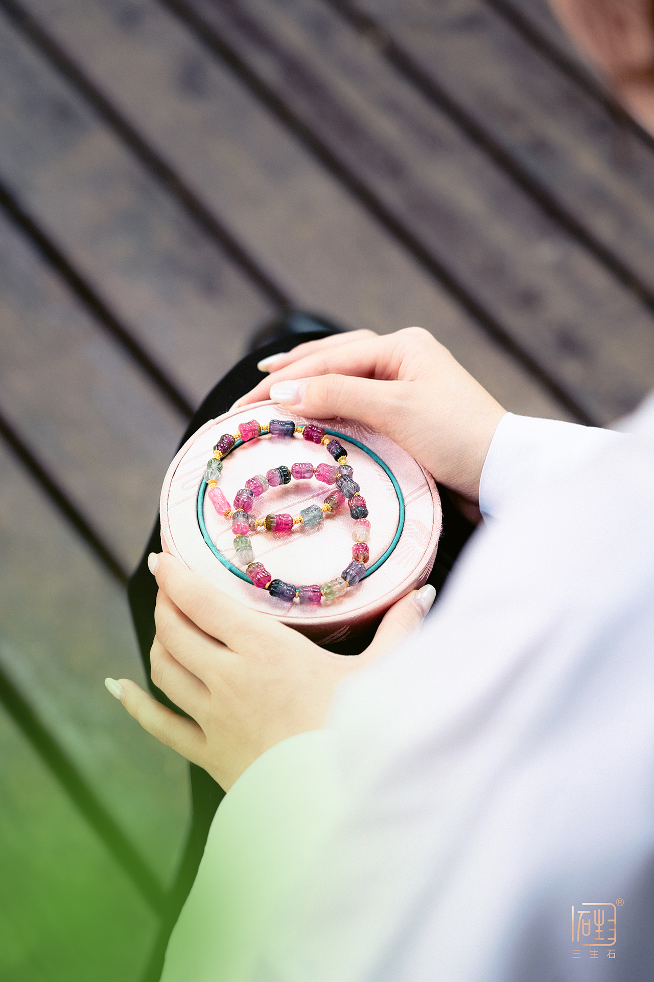 每颗颜色都独一无二的彩色碧玺并蒂莲