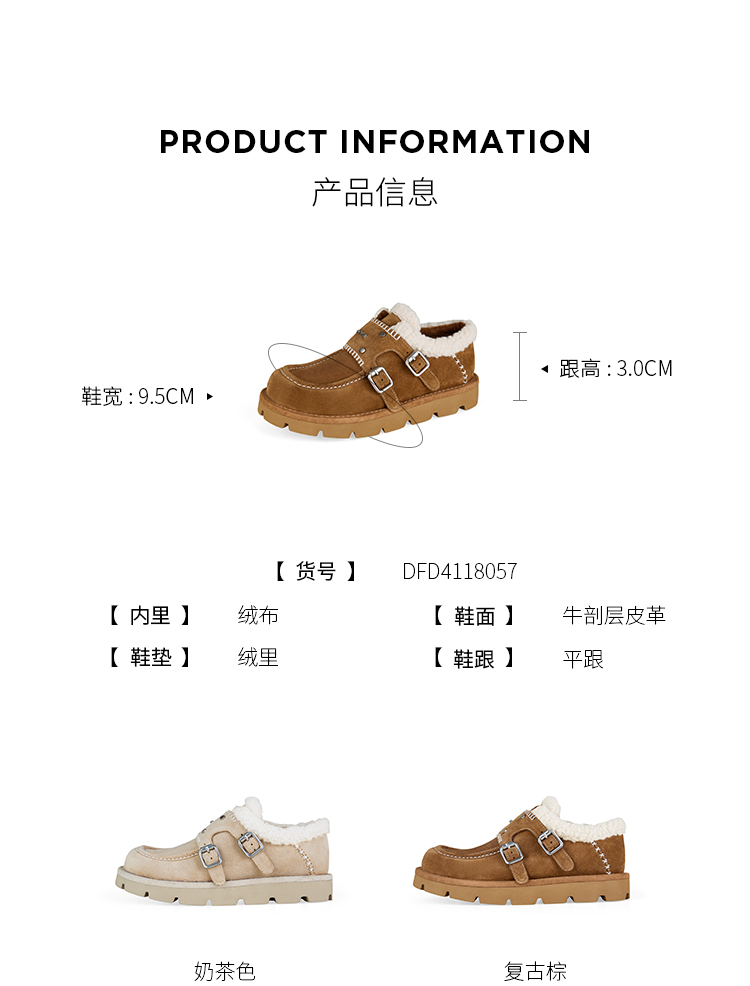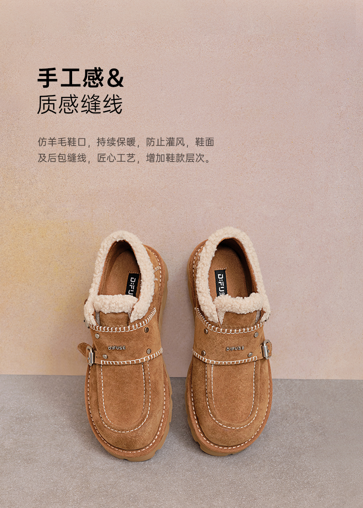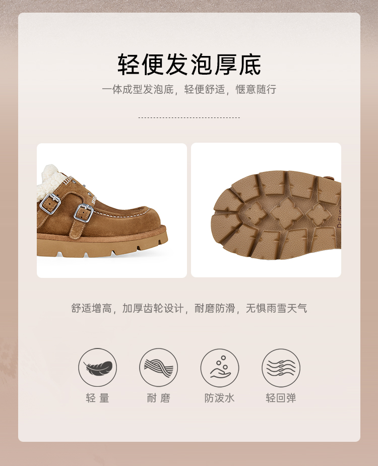 Dfuse迪芙斯2025冬季新款皮带扣雪地靴加绒松糕厚底袋鼠鞋轻便孟克鞋女DFD4118057