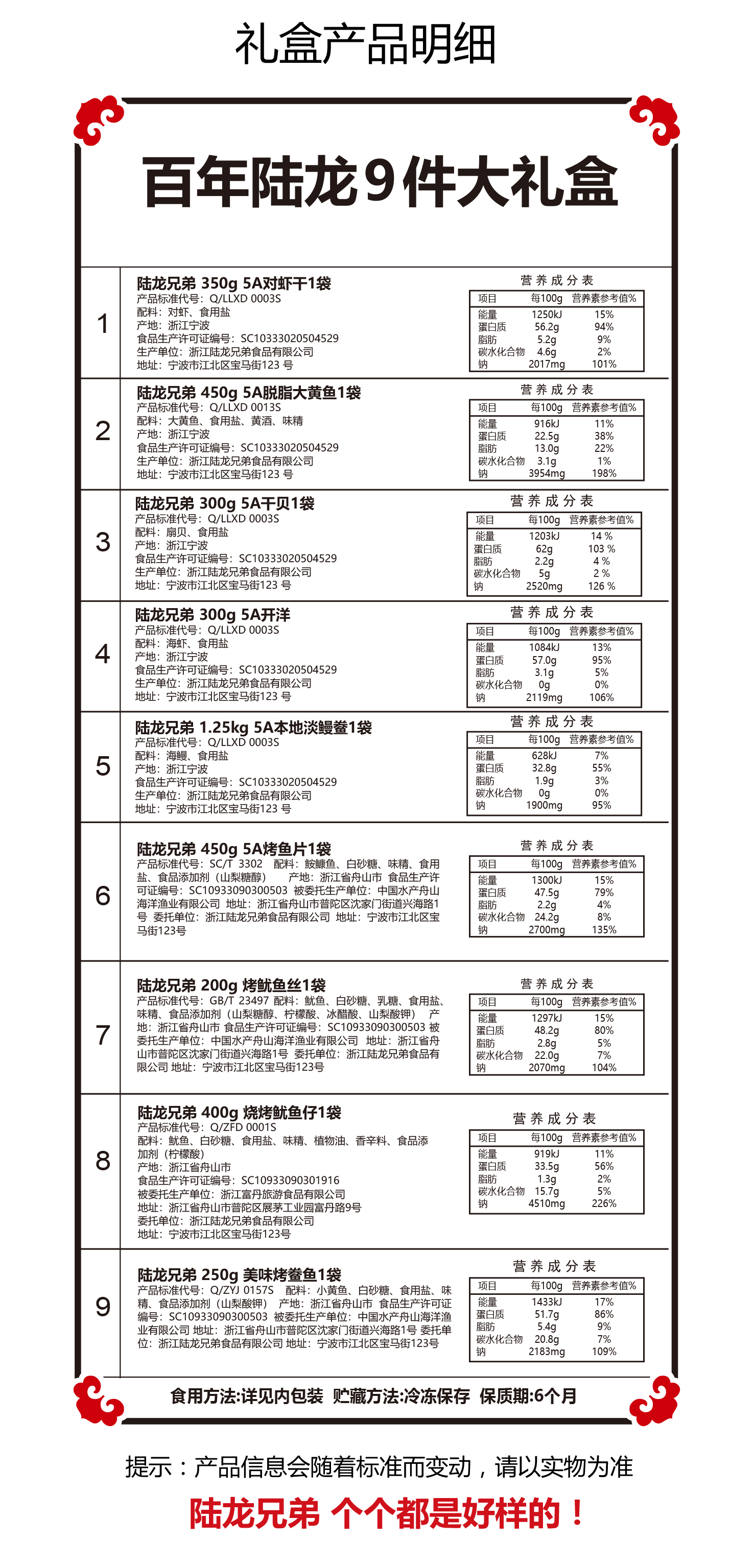 9309陆龙兄弟 9件海味礼盒