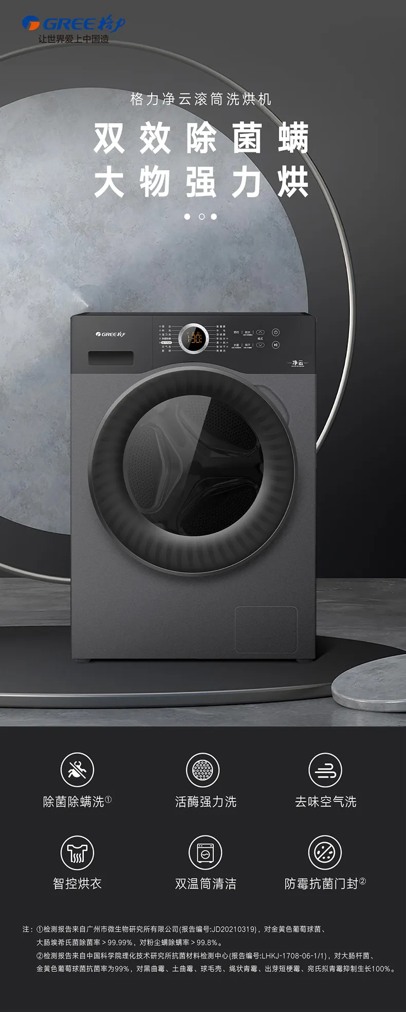 格力·净云滚筒洗衣机 洗烘一体机 10kg XQG100-DWB1201Bh1(墨云灰)