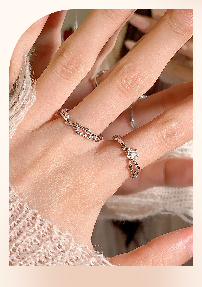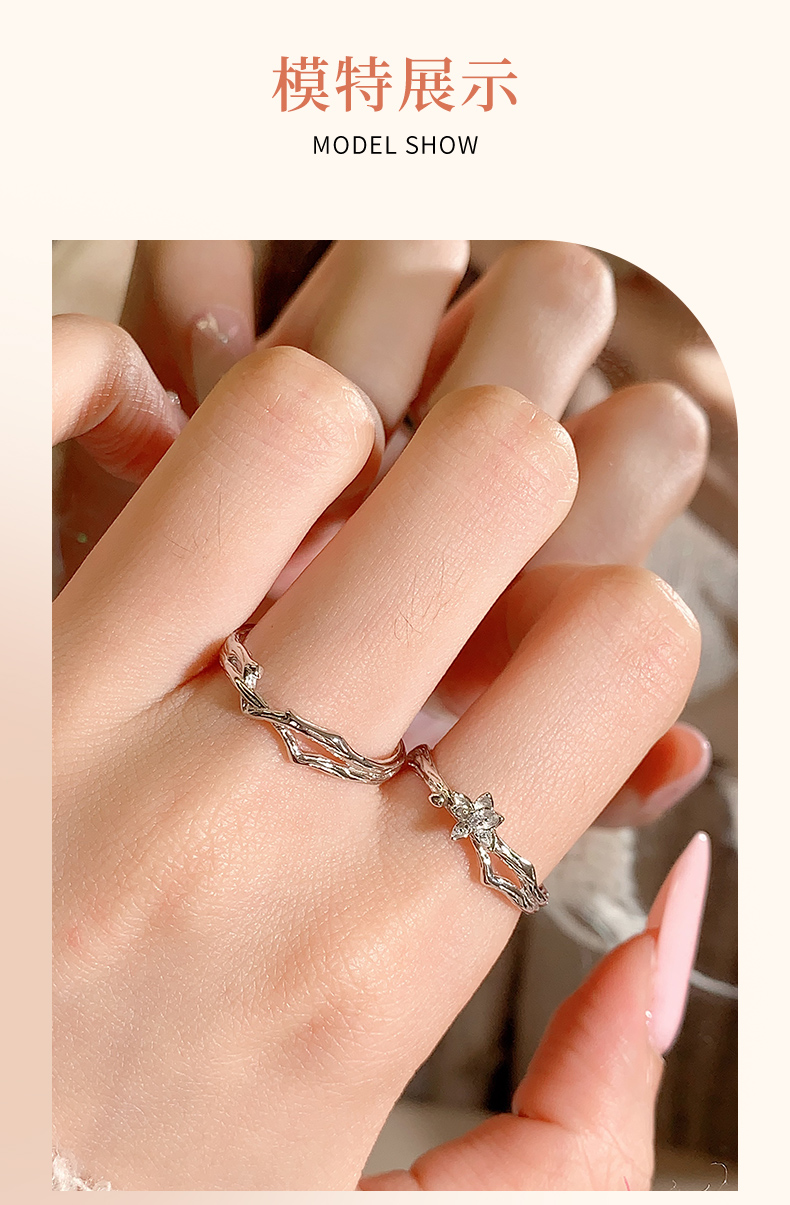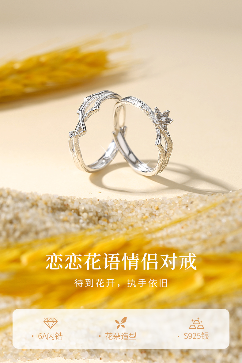 卡蒂罗KADER 恋恋花语情侣对戒 925银温柔简约浪漫连理枝甜蜜轻奢小众不规则素圈开口可调节一对 百搭时尚钟爱久久