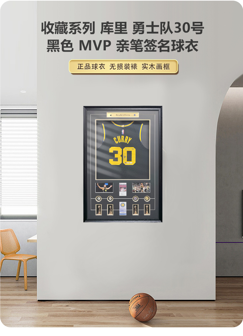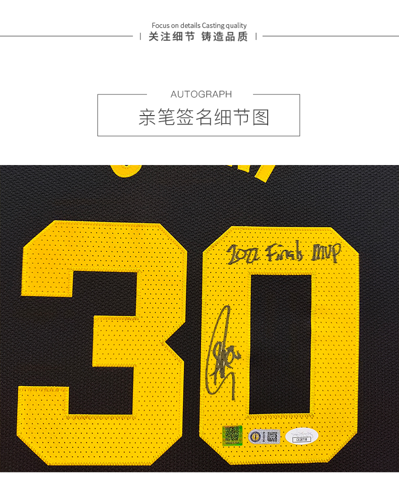 收藏系列 库里 勇士队30号黑色 MVP 亲笔签名球衣