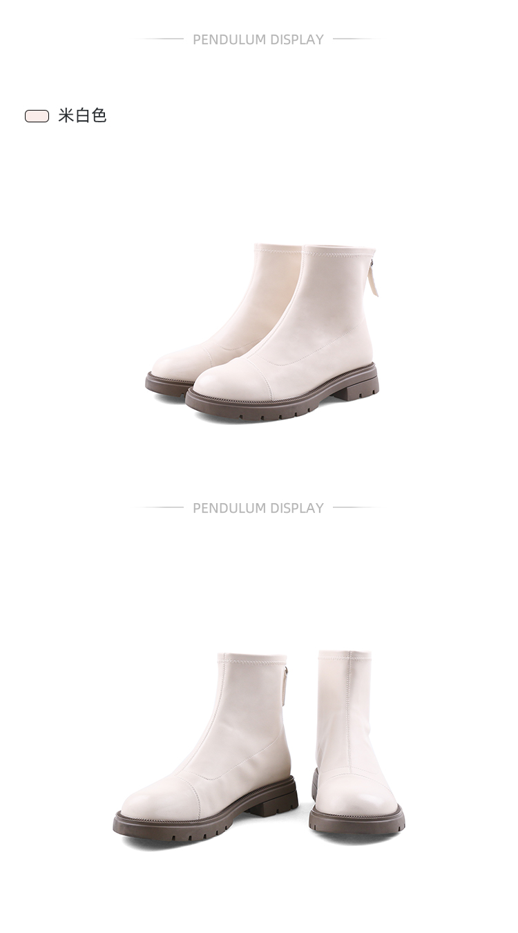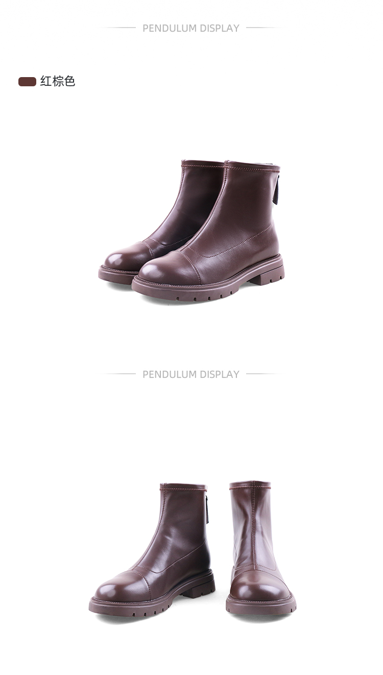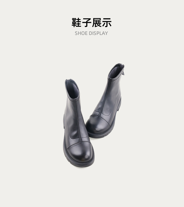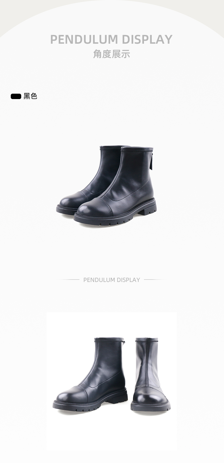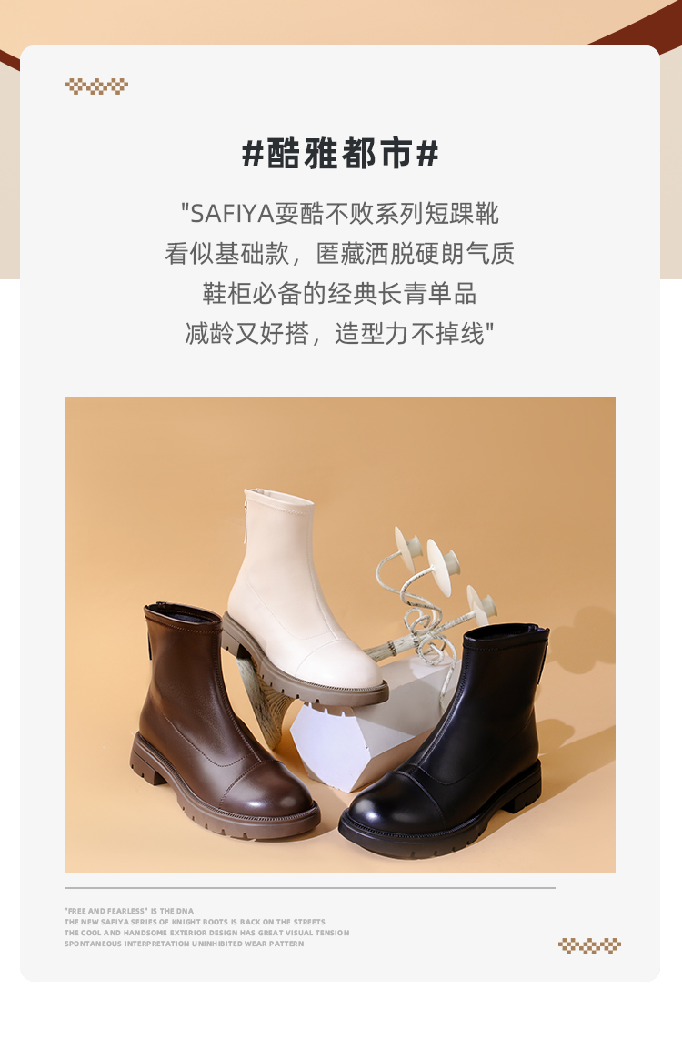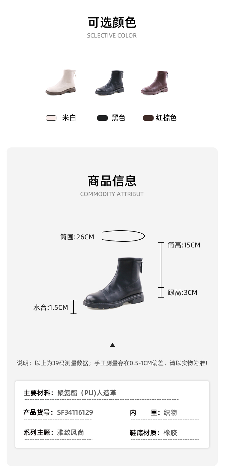 Safiya/索菲娅2023秋冬新品 复古弹力瘦瘦圆头后拉链粗跟英伦短靴 SF34116129