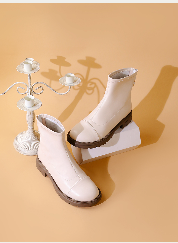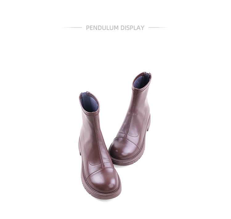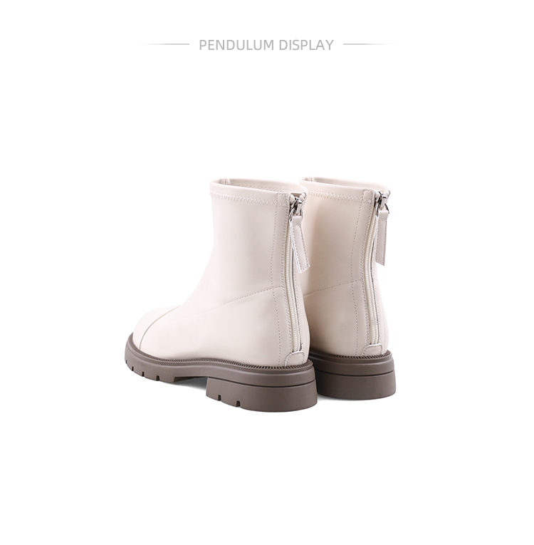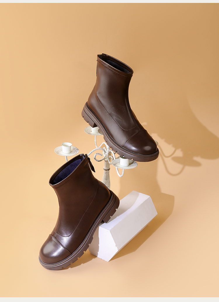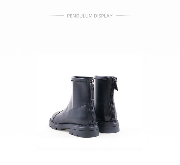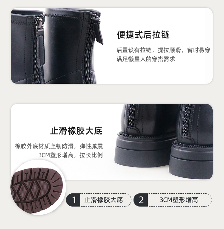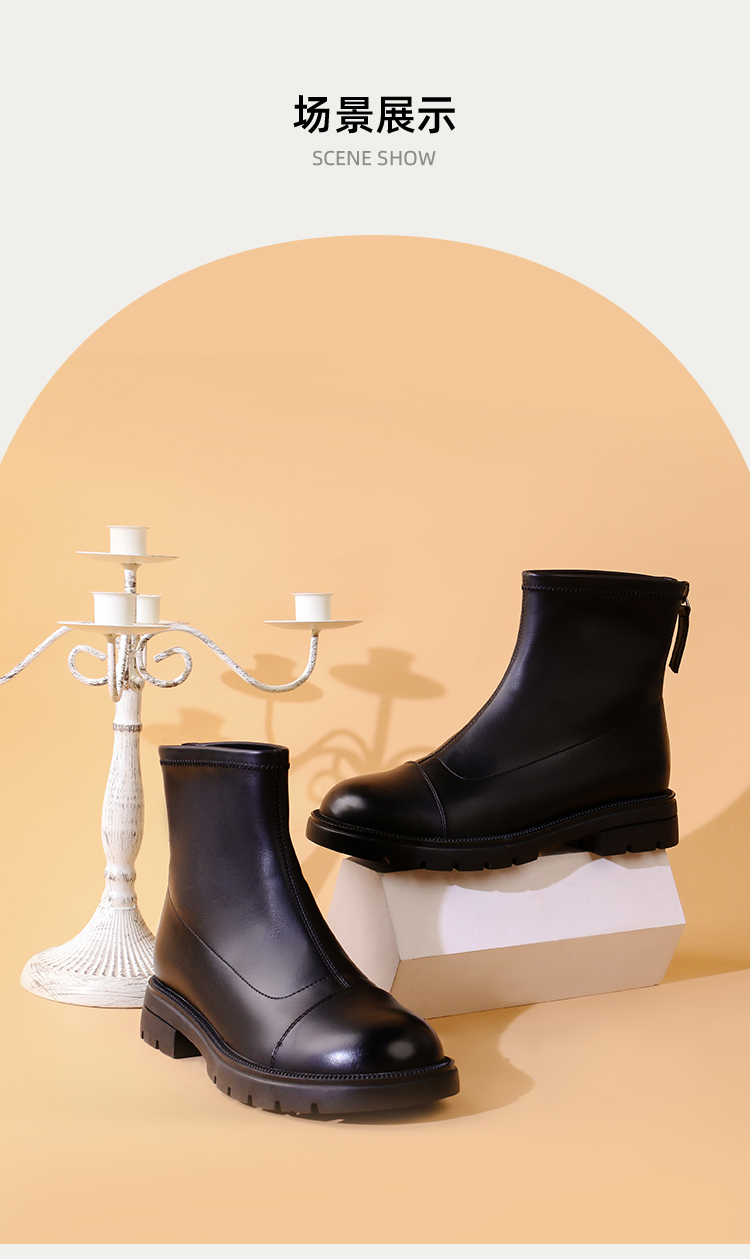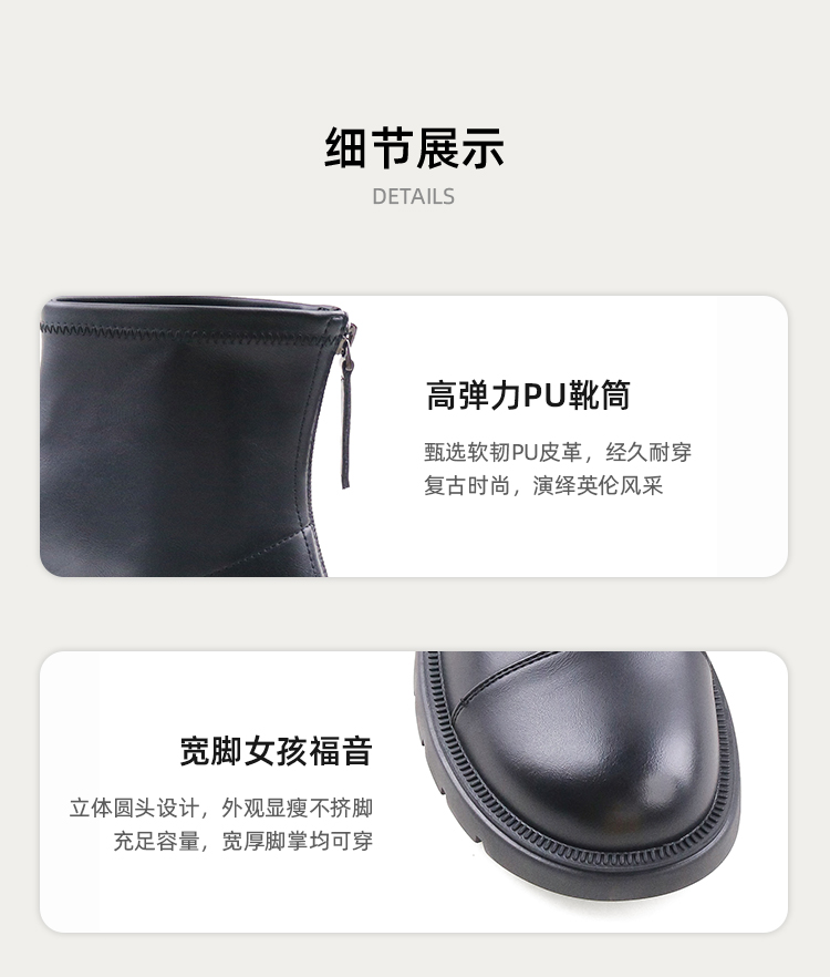 Safiya/索菲娅2023秋冬新品 复古弹力瘦瘦圆头后拉链粗跟英伦短靴 SF34116129
