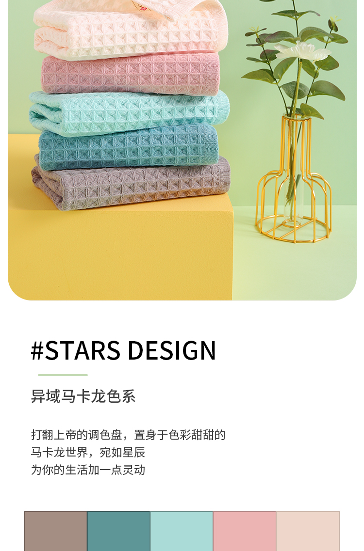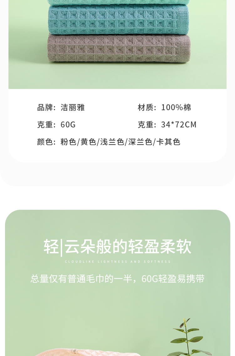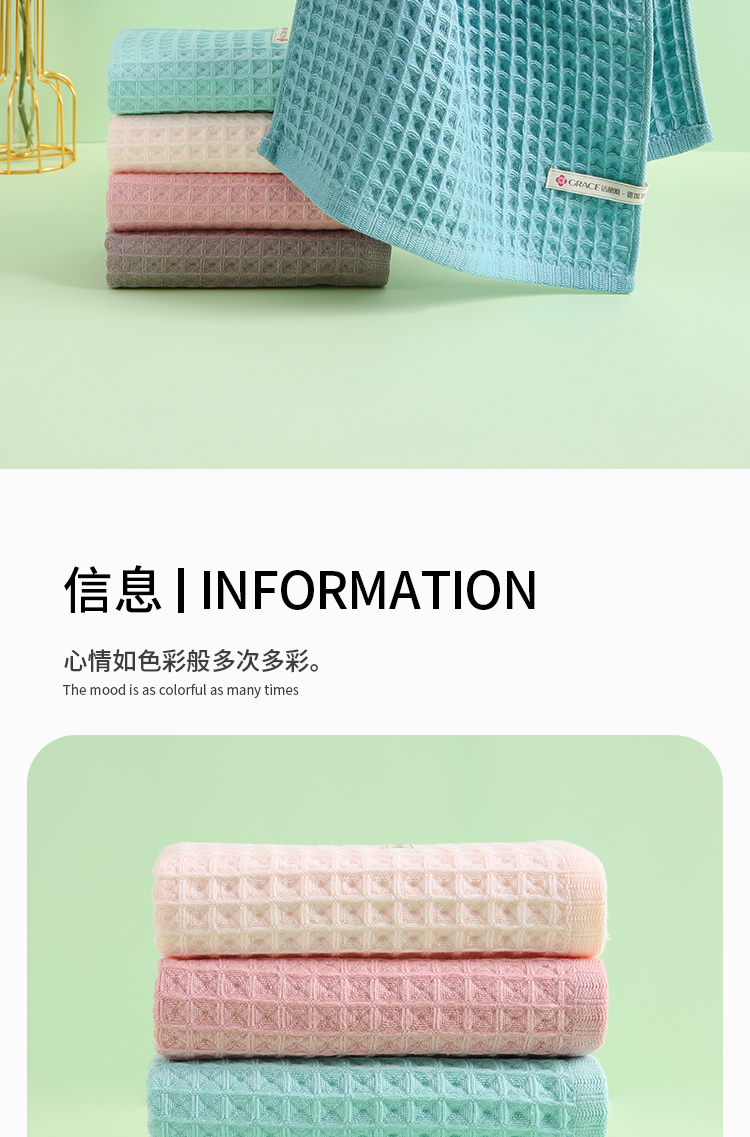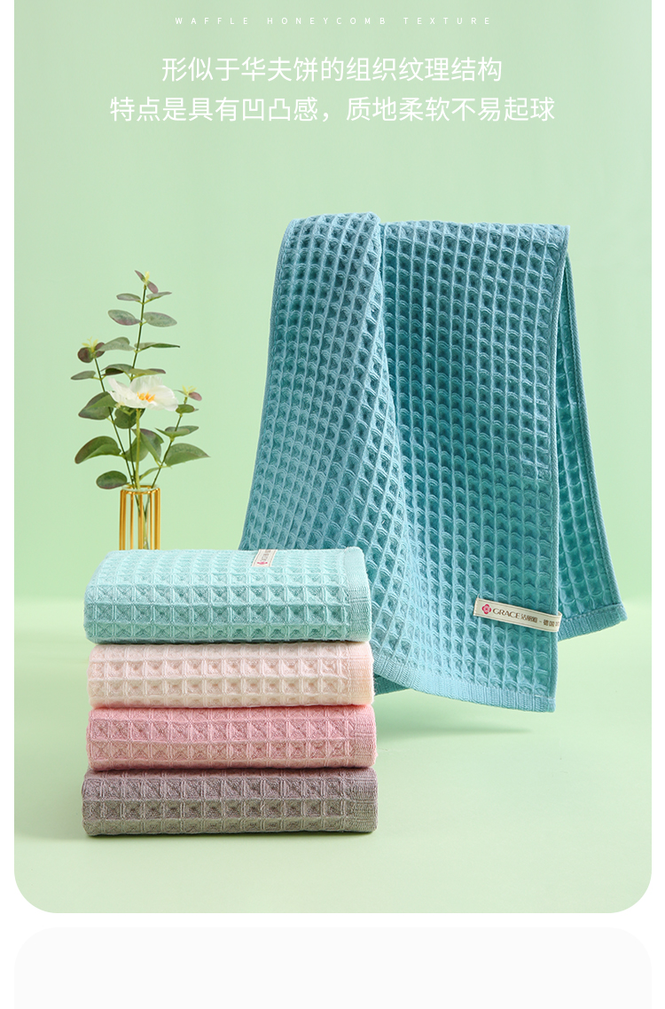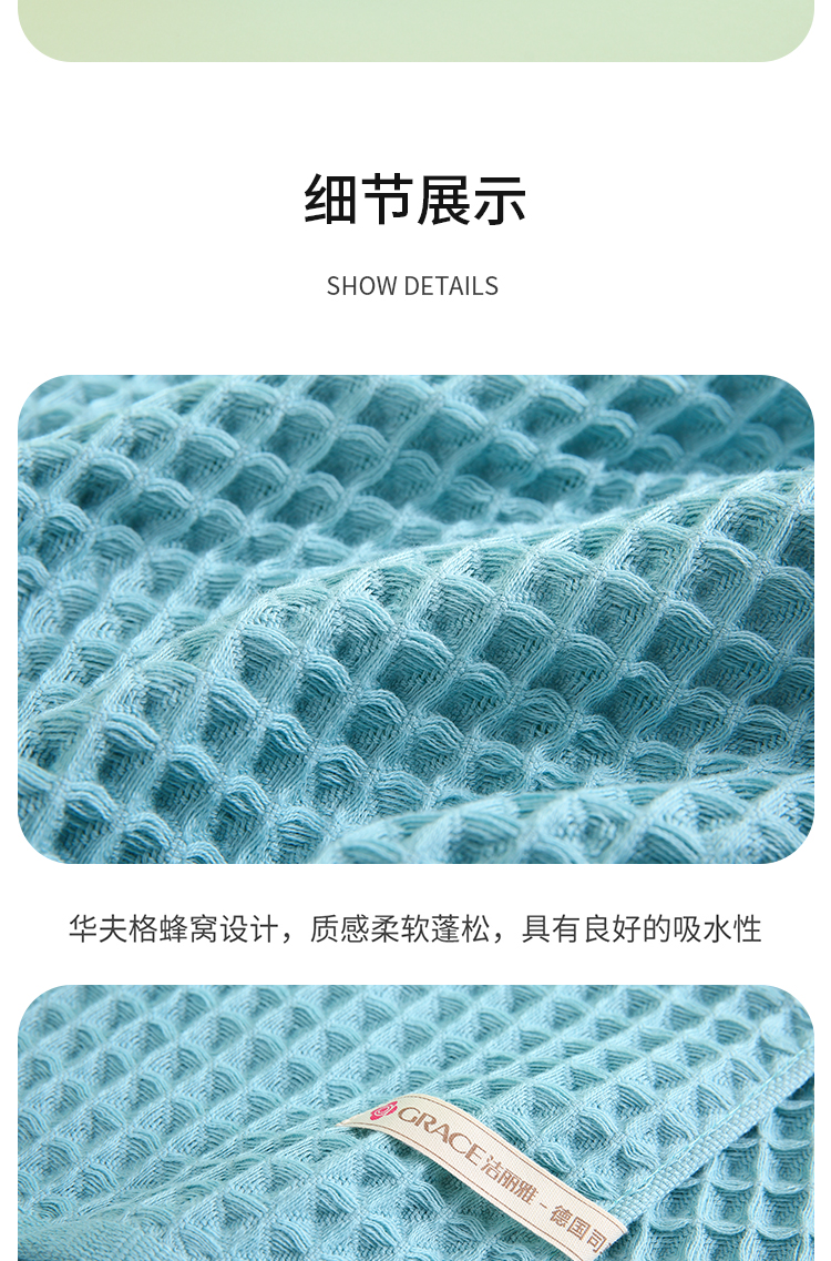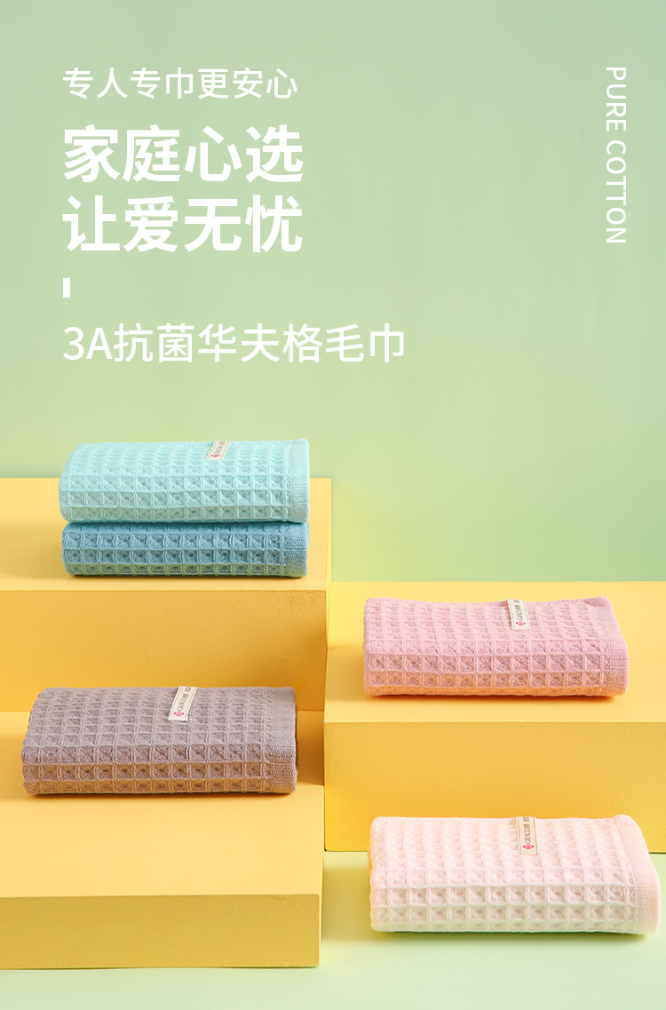 洁丽雅3A抗菌华夫格毛巾两条装礼盒
