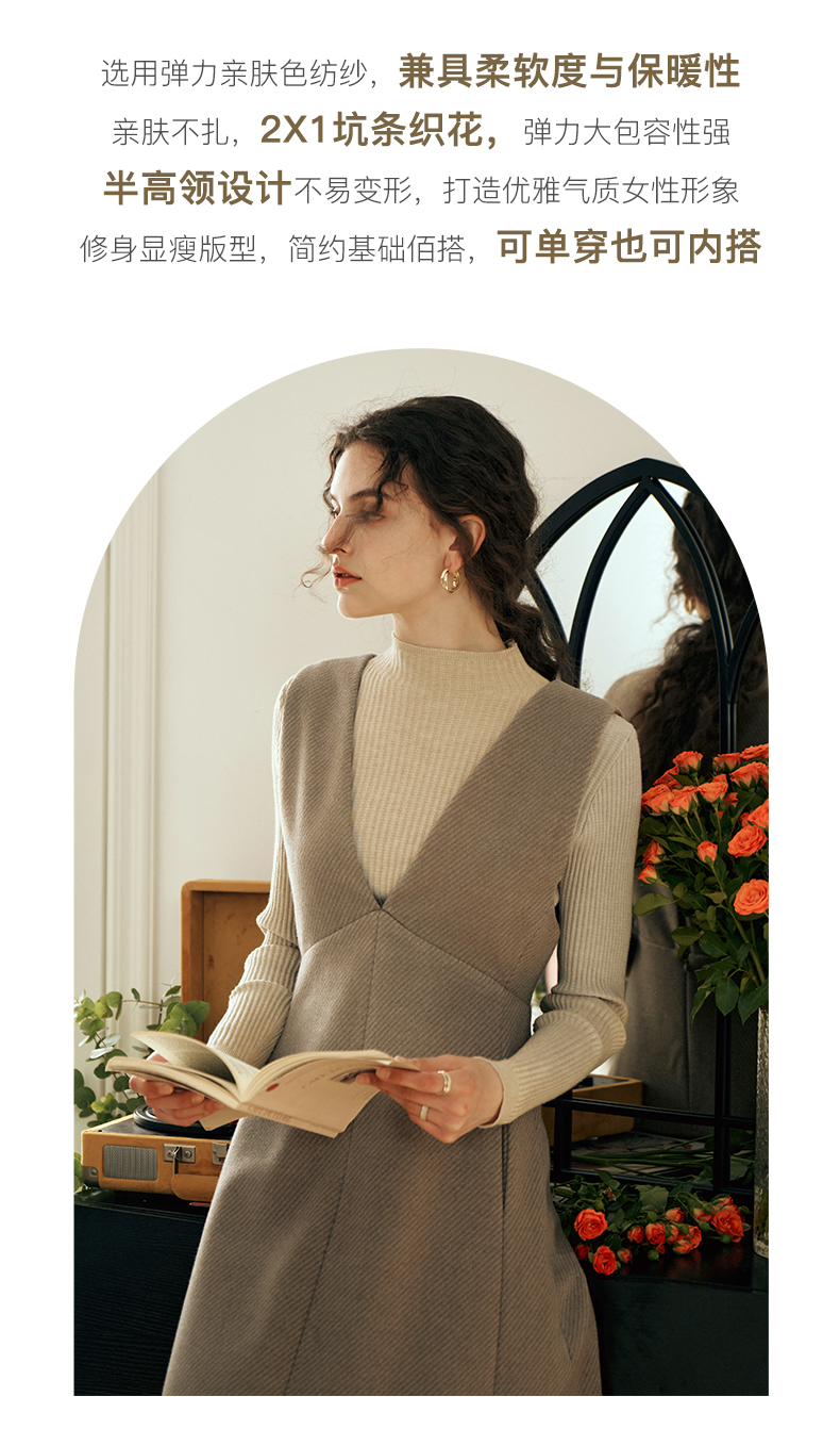 OLrain欧芮儿法式奶茶色针织衫女春季2025新款套头修身百搭打底衫